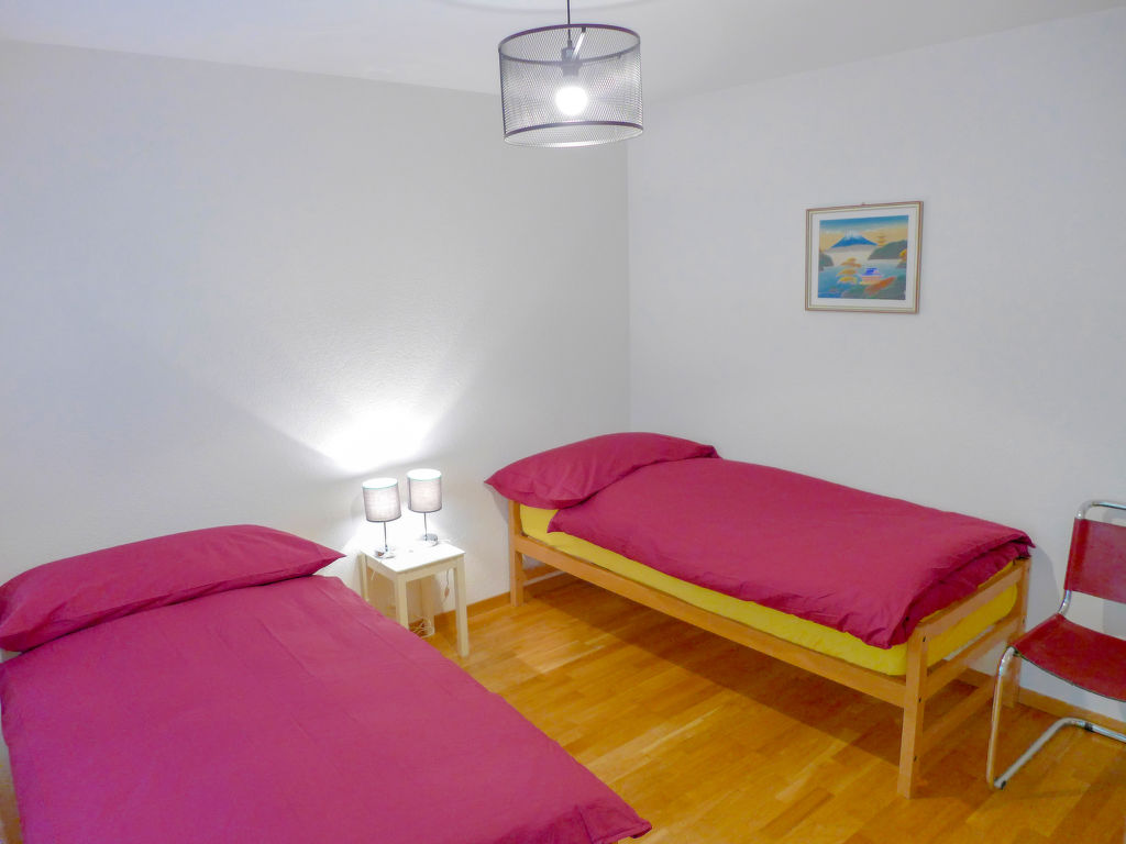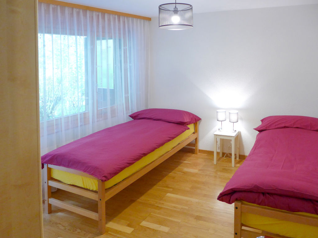 3-Zimmer-Wohnung 80 m2 im 1. Stock. Hell, modern eingerichtet: Wohn-/Esszimmer mit offenem Kamin, Kabel-TV und Flachbildschirm. Ausgang zum Balkon, Richtung Süden. 1 Zimmer, Richtung Norden mit 1 franz. Bett (160 cm, Länge 200 cm), Bad/WC. 1 Zimmer, Richtung Norden mit 2 Betten (80 cm, Länge 190 cm). Offene Küche (Backofen, Geschirrspüler, 4 Glaskeramikherd Platten, Toaster, Wasserkocher, Mikrowelle, elektrische Kaffeemaschine, Kapseln für die Kaffeemaschine (NESPRESSO) extra, Racletteofen, Fondue Set (Käse)). Dusche/WC. Balkon 7 m2, Südlage. Balkonmöbel. Schöne Sicht auf die Berge und die Landschaft. Zur Verfügung: Bügeleisen, Haartrockner. Internet (Wireless LAN, gratis). Bitte beachten: Nichtraucher-Unterkunft.