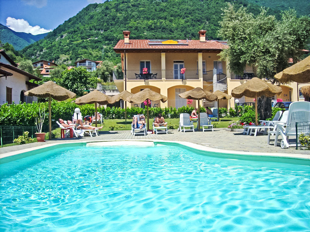 Residenz "Letizia", auf 3 Stockwerken, Baujahr 2007. 5 km vom Zentrum von Tremezzo, ruhige, erhöhte Lage am Hang, 500 m vom See. Zur Mitbenutzung: kleiner Garten mit Rasen, Schwimmbad nierenförmig (saisonale Verfügbarkeit: 01.Mai.-30.Sep.). Aussendusche, Gartenmöbel. Im Hause: Empfang, Wäscherei (extra). Wohnungsreinigung möglich (extra). Parkplatz auf dem Grundstück. Supermarkt 600 m, Restaurant, Bar 200 m, Grasstrand 500 m. Nahe gelegene Sehenswürdigkeiten: Menaggio 10 km. Bitte beachten: Fahrzeug empfohlen. Das Foto ist nur ein Hausbeispiel. In diesem Haus sind weitere Ferienwohnungen mietbar. Die Residenz befindet sich an herrlicher Panoramalage, gegenüber der Insel "Isola Comacina". Mit hervorragender Sicht auf den Comersee, von Bellagio bis Argegno.