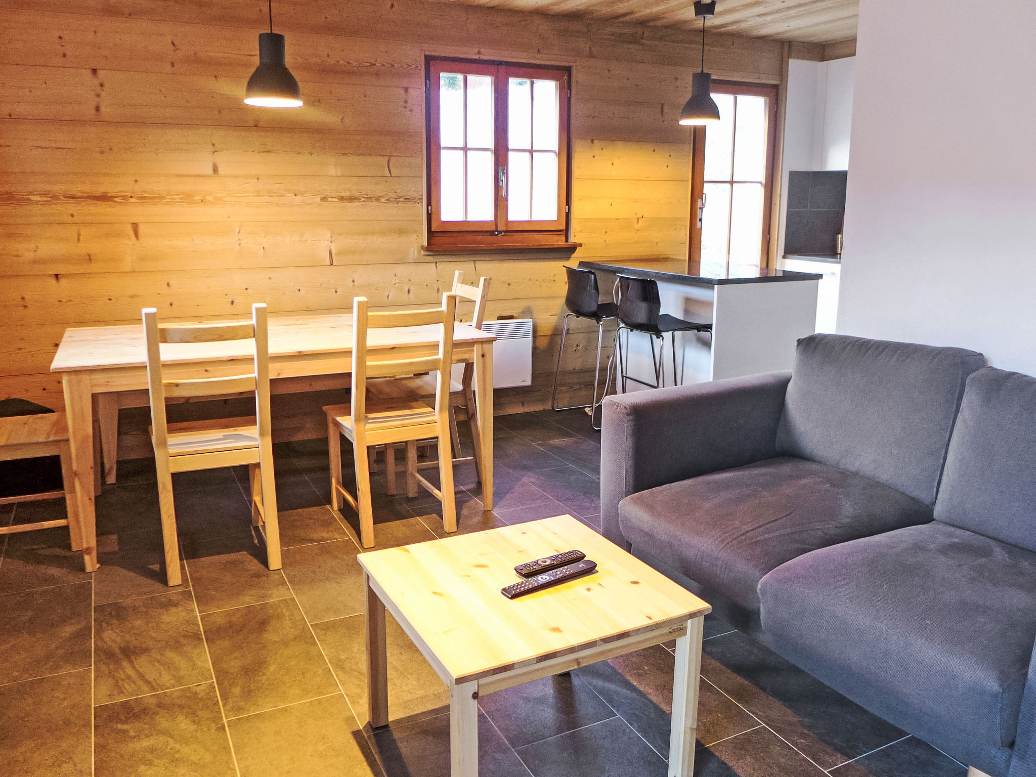 "Chalet Castor", 4-Zimmer-Chalet 80 m2 auf 2 Stockwerken. Geschmackvoll und mit viel Holz eingerichtet: Wohn-/Esszimmer mit Schwedenofen, Esstisch und TV. Ausgang zum Gartensitzplatz. Offene Küche (Backofen, Geschirrspüler, 4 Glaskeramikherd Platten, Fondue Set (Käse)) mit Bar. Obergeschoss: 1 Zimmer mit 1 Doppelbett. Ausgang zum Balkon. 2 Zimmer, jedes Zimmer mit 1 x 2 Etagenbetten. Bad/WC. Balkon, grosser Gartensitzplatz. Gartengrill. Sehr schöne Sicht auf die Berge und die Landschaft. Zur Verfügung: Babybett bis 3 Jahre (extra). Internet (Wireless LAN, gratis). Bitte beachten: Nichtraucher-Unterkunft. Maximal 2 Haustiere/Hunde erlaubt.