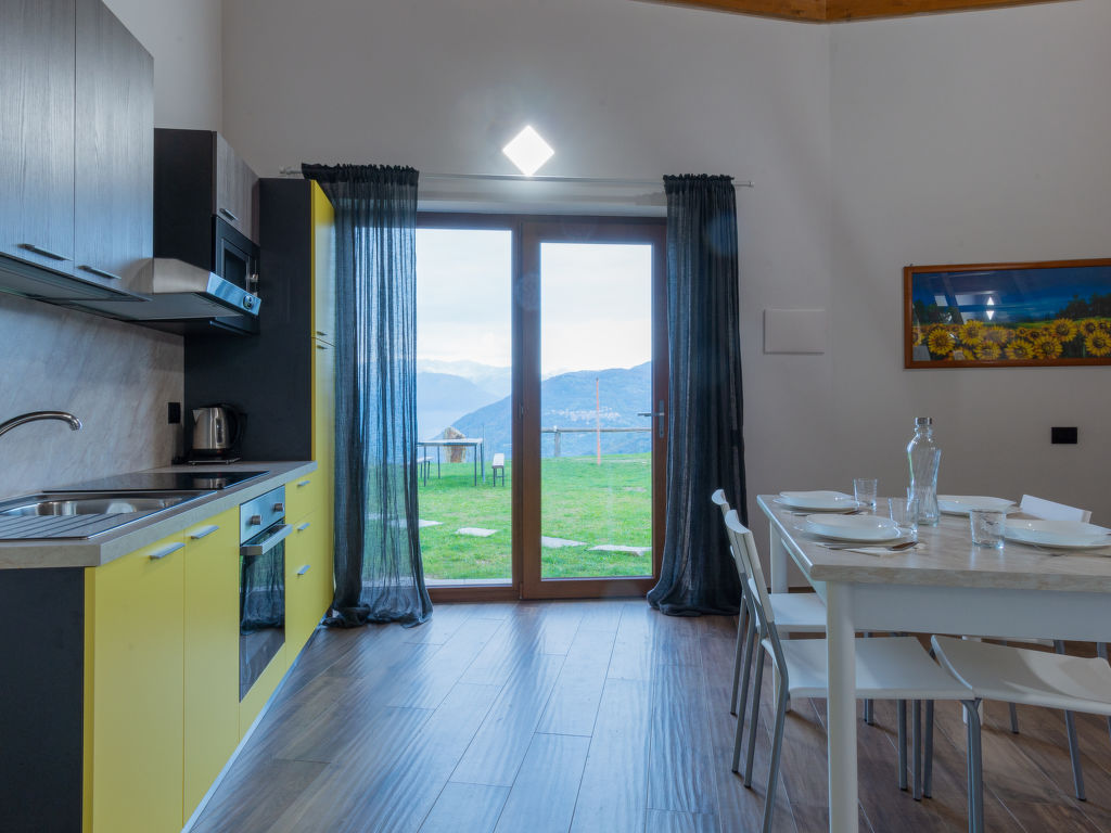 "Baita Bavé (VIV373)", 2-Zimmer-Wohnung 60 m2 auf 2 Stockwerken. Hell, modern eingerichtet: Wohn-/Esszimmer mit Esstisch. Ausgang zur Terrasse. 1 Zimmer mit 1 Doppelbett. Offene Küche (Backofen, 4 Induktionskochplatten, Toaster, Mikrowelle, Tiefkühler). Dusche/Bidet/WC. Heizung. Obergeschoss: (steile Treppe) offene Galerie mit 3 Betten. Holzböden. Terrasse. Terrassenmöbel. Panoramasicht auf den See. Zur Verfügung: Internet (Wireless LAN, gratis). Bitte beachten: Nichtraucher-Unterkunft. Maximal 1 Haustier/Hund erlaubt. Eigener Eingang. CIR: 013063-CNI-00001