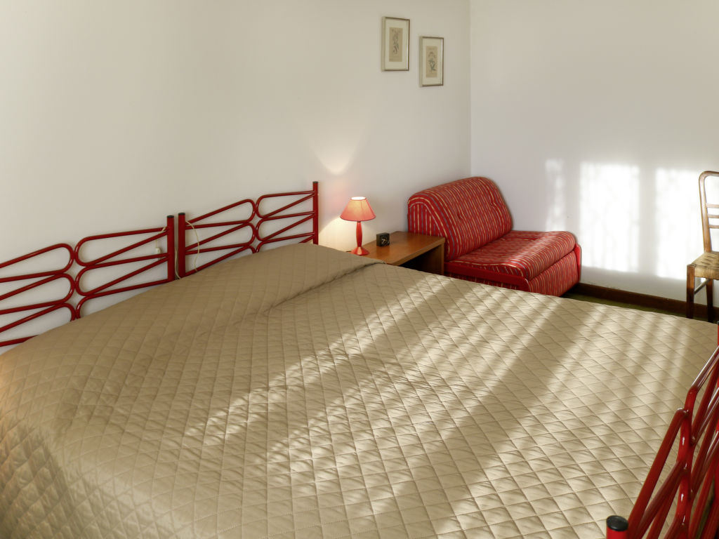 3-Zimmer-Wohnung, Erdgeschoss, ca. 60 m². Wohnraum mit Sitzcouch, Essplatz, abgeteilte kleine Küche (3 Flammen, Backofen, Mikrowelle, Geschirrspüler, Kühlschrank) und Terrassenausgang. Doppelzimmer. Schlafzimmer mit Doppelbettcouch. Dusche/WC. CIR: M0230060534