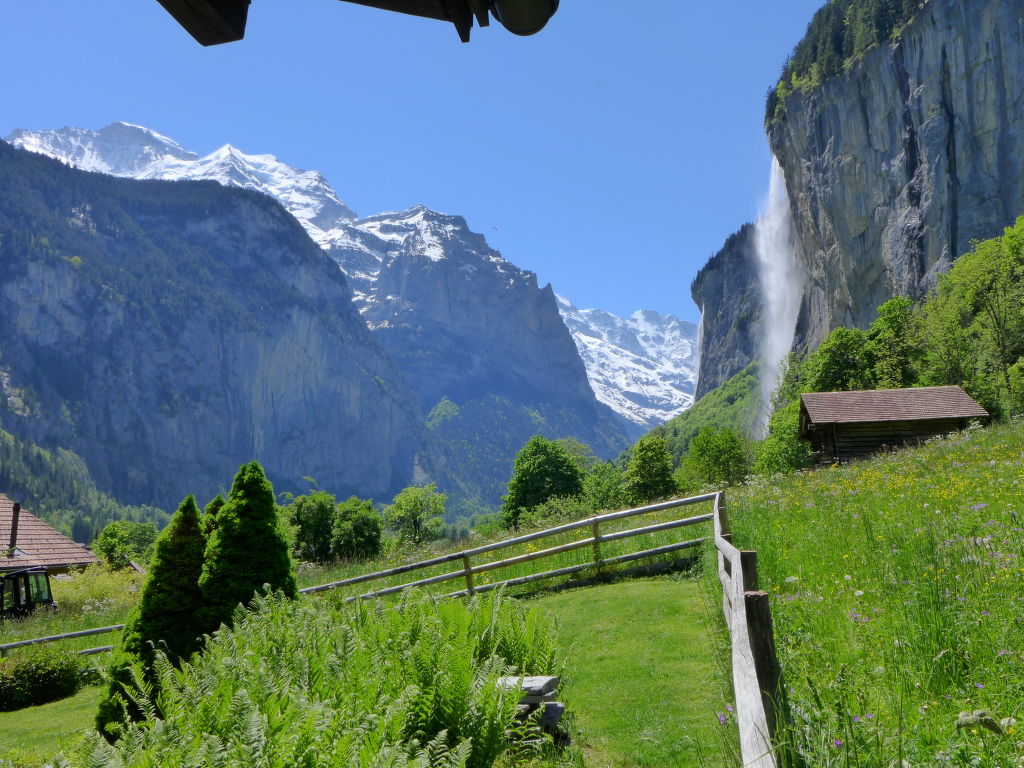 Lauterbrunnen 10 km von Interlaken: Grosses, komfortables Chalet "am Schärm", auf 3 Stockwerken, umgeben von Bäumen und Wiesen. Im Ortszentrum von Lauterbrunnen, zentrale, ruhige, sonnige Lage am Hang. Zur Alleinbenutzung: grosser Garten Rasen und Pflanzen. Gartenmöbel, Grill. Im Hause: Skiraum, Zentralheizung, Waschmaschine, Wäschetrockner, Skischuhtrockner. Wäschewechsel (zusätzlich extra). Wohnungsreinigung möglich (extra). Schmale Zufahrt bis zum Haus. Im Winter 4x4 empfohlen. Breite der Zufahrtsstrasse: 320 cm. Parkplatz (für 4 Autos) beim Haus. Einkaufsgeschäft 300 m, Supermarkt 500 m, Restaurant 300 m, Bäckerei 400 m, Bushaltestelle 300 m, Bahnstation "Lauterbrunnen", Freibad 500 m. Golfplatz (18 Loch) 11 km, Tennis, Minigolf 600 m, Luftseilbahn 500 m, Skiverleih 250 m, Skibushaltestelle 200 m. Nahe gelegene Sehenswürdigkeiten: Jungfraujoch, Schilthorn, Interlaken 12 km. Bekannte Skigebiete sind gut erreichbar: Wengen - Kleine Scheidegg, Mürren Schilthorn. Bekannte Seen in der Umgebung sind gut erreichbar: Thunersee, Brienzersee. Wandergebiete: Jungfrau Region, Hinteres Lauterbrunnental. Bitte beachten: geeignet für Familien, Babyausstattung (extra). Jugendgruppen nur auf Anfrage. Bei guter Schneelage Zufahrt mit den Skiern bis zum Haus.