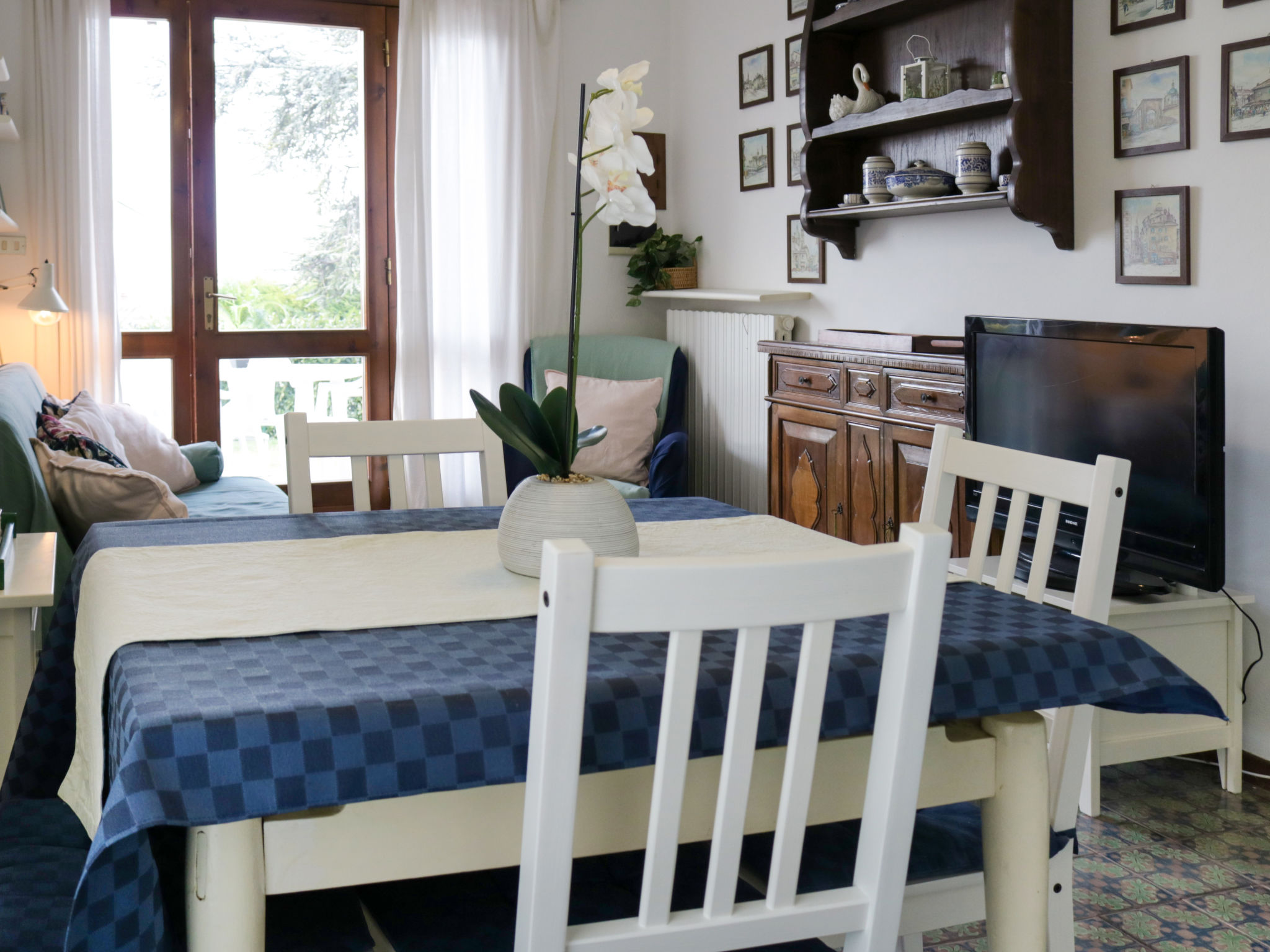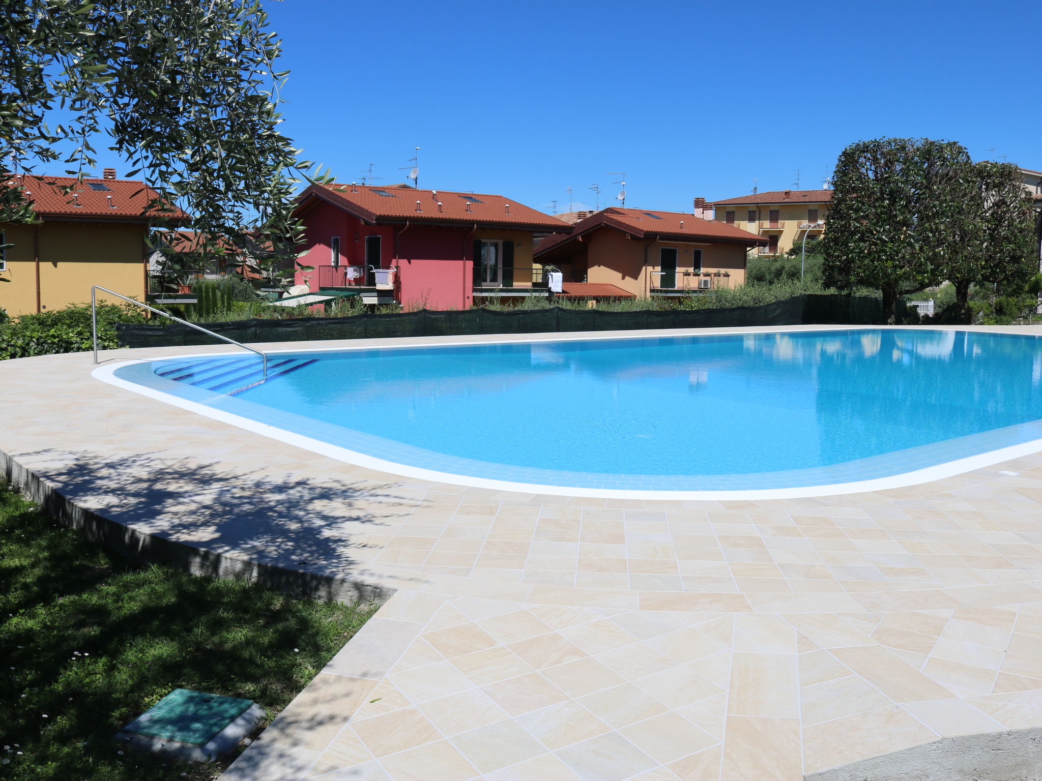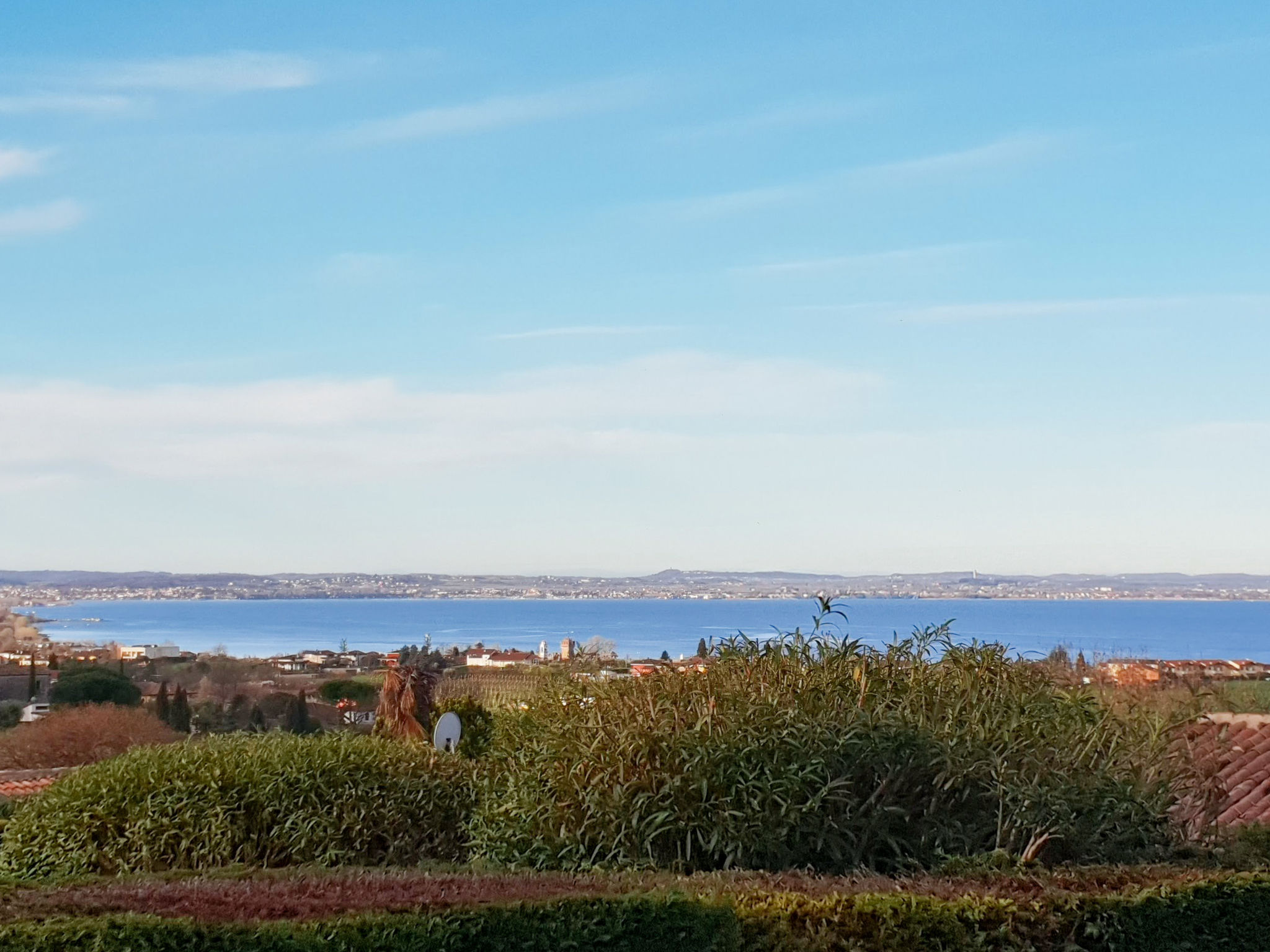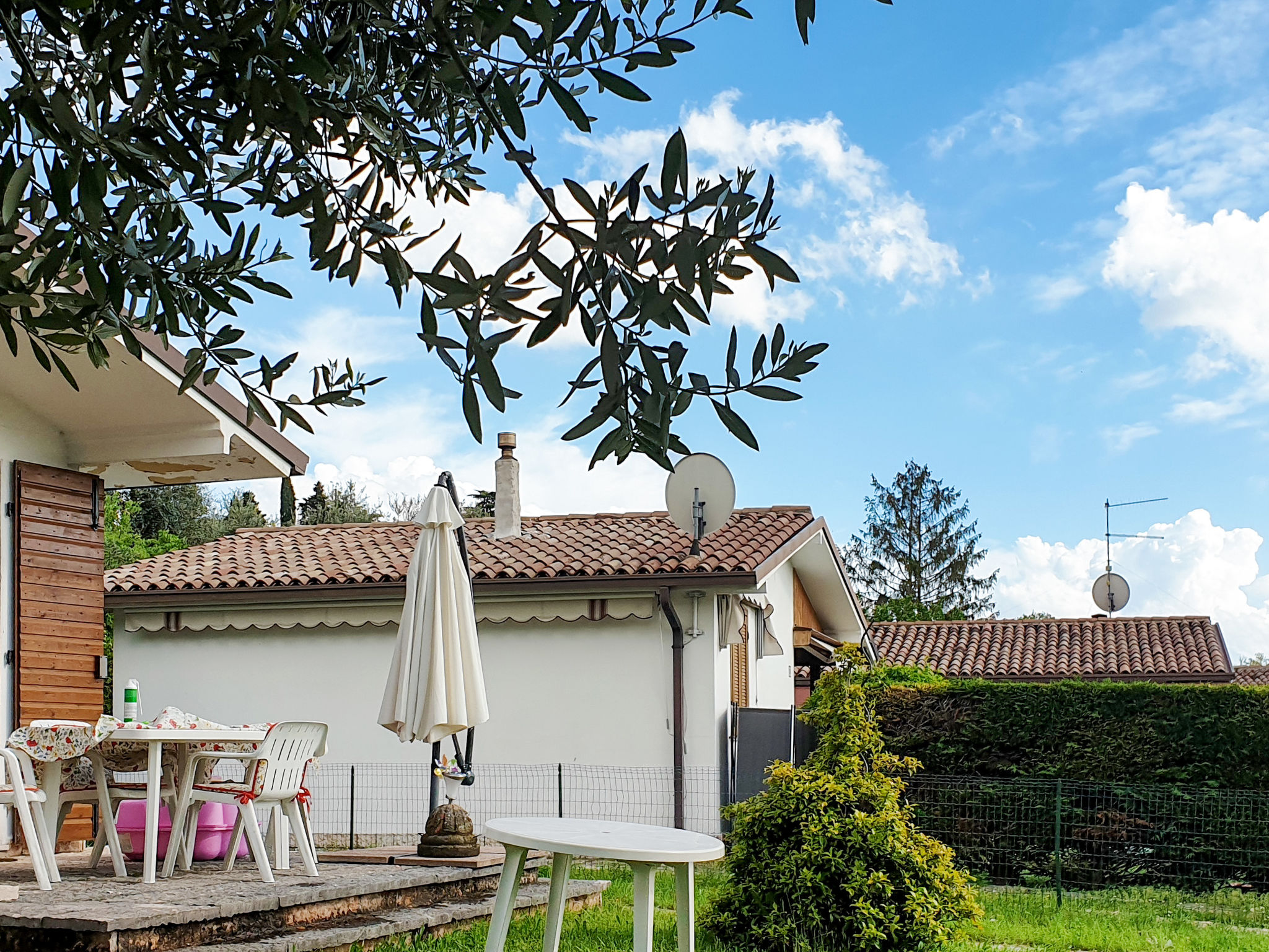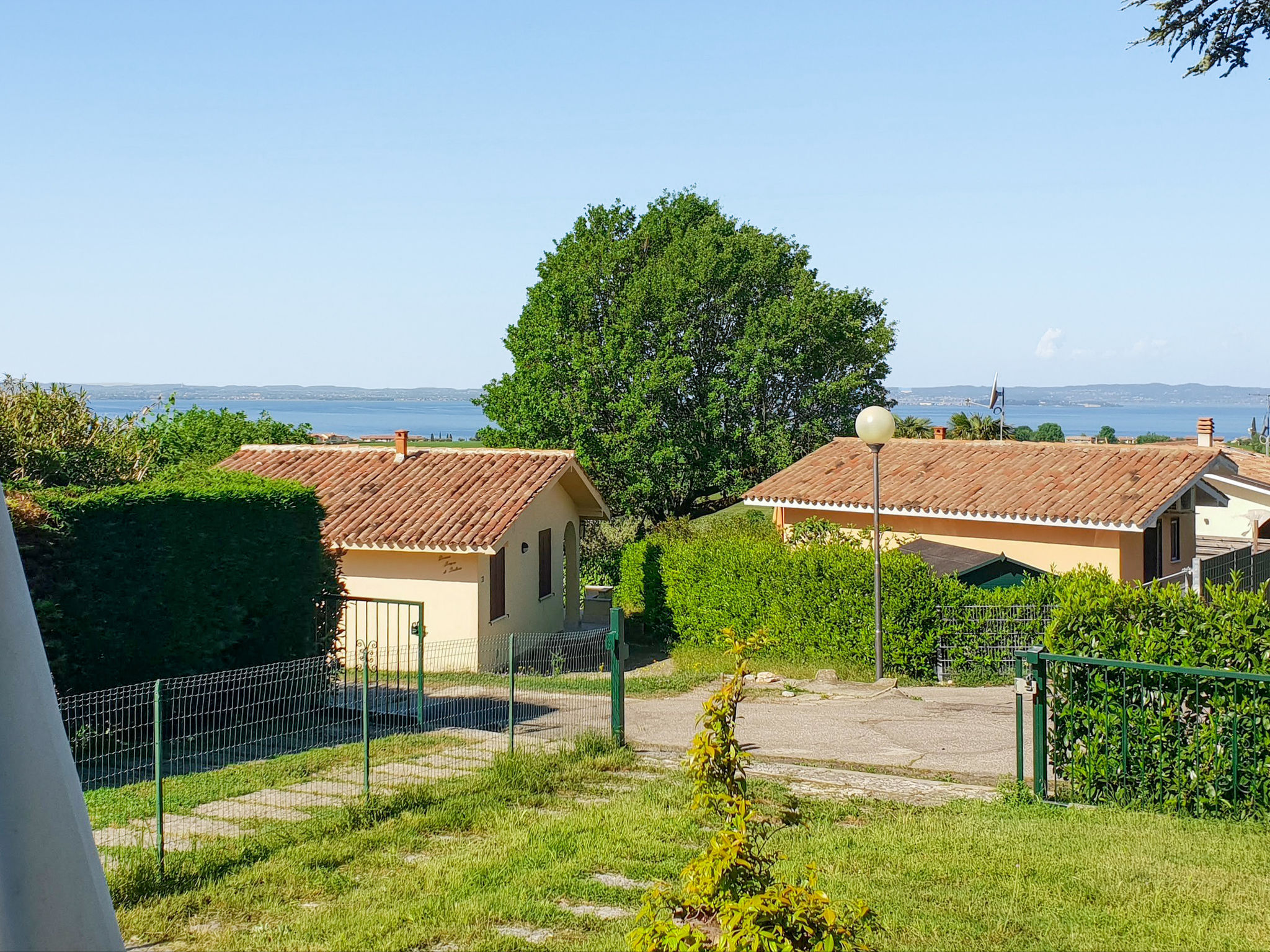 Das Ferienhaus PANORAMA steht in erhöhter Lage in einem grünen Wohnviertel, ca. 500 m von der Ortsmitte Calmasino mit Einkaufsmöglichkeit entfernt. Zum See 2,5 km. Lazise 3 km. Bardolino 5 km. Einfahrtstor. Parkplätze auf dem Grundstück. Ca. 300 m² großes, von Hecken umgebenes Gartengrundstück mit schönem Blick bis zum See. Möblierte Terrasse mit Sonnenschirm und 2 Liegestühlen. Gemauerter Grill. Die Gäste können den ca. 50 m entfernten Pool (20 m x 10 m, 01.05.-31.10.) des Villaggio Panoramico mitbenutzen. Zweckmäßige Einrichtung. Fliesenböden. TV. Internetzugang (WLAN, inklusive). Klimaanlage (vom 26.06.-28.08. im Preis inbegriffen). Gas-Zentralheizung.