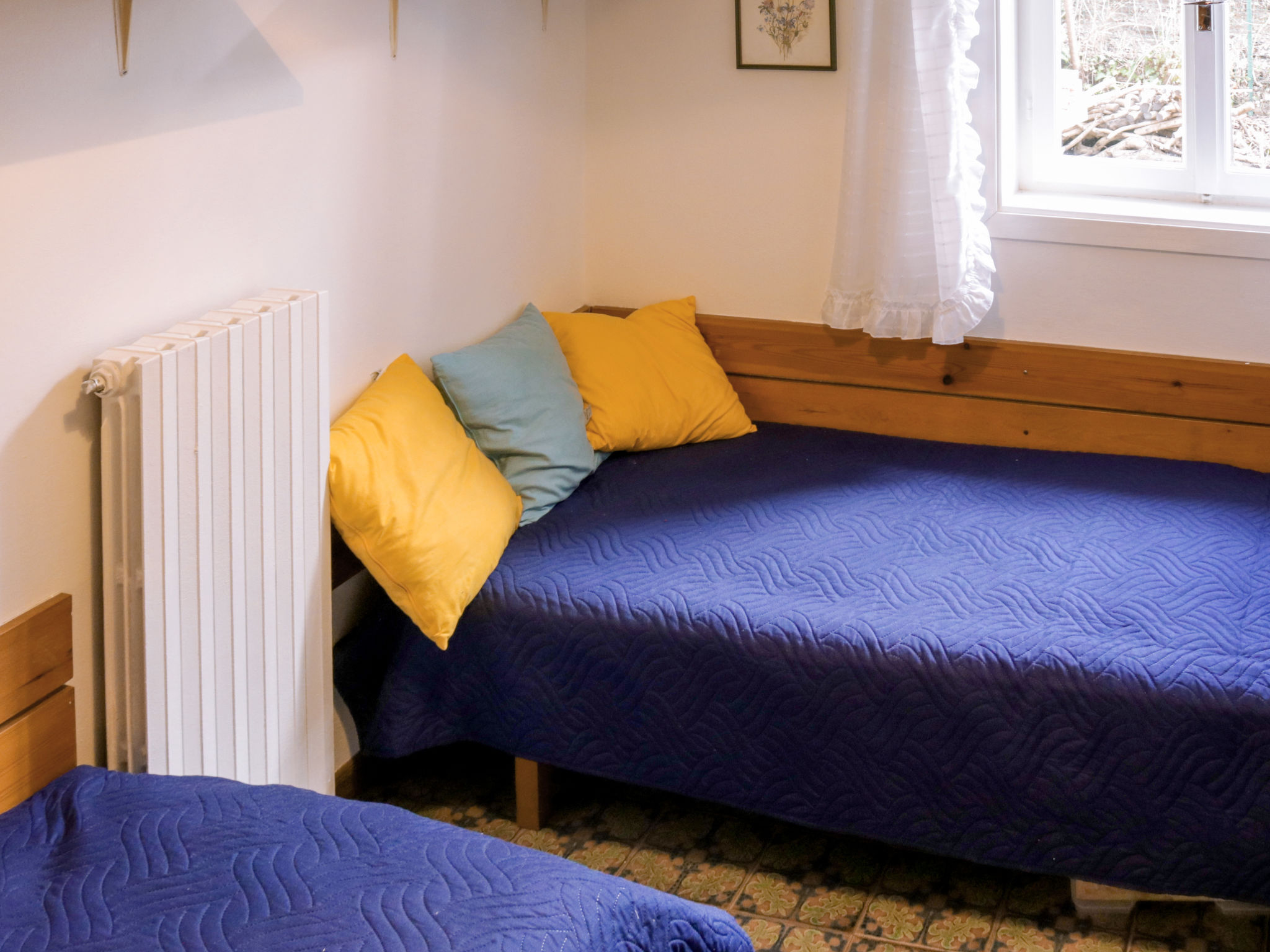 3-Zimmer-Haus, ca. 70 m². Wohn-/Schlafraum mit Doppelbettcouch, Essplatz und Küchenzeile (4 Flammen, kleiner Geschirrspüler, Kühlschrank), Terrassenausgang. Schlafzimmer mit franz. Bett. Kleines Zweibettzimmer. Dusche/WC. CIR: M0230060546