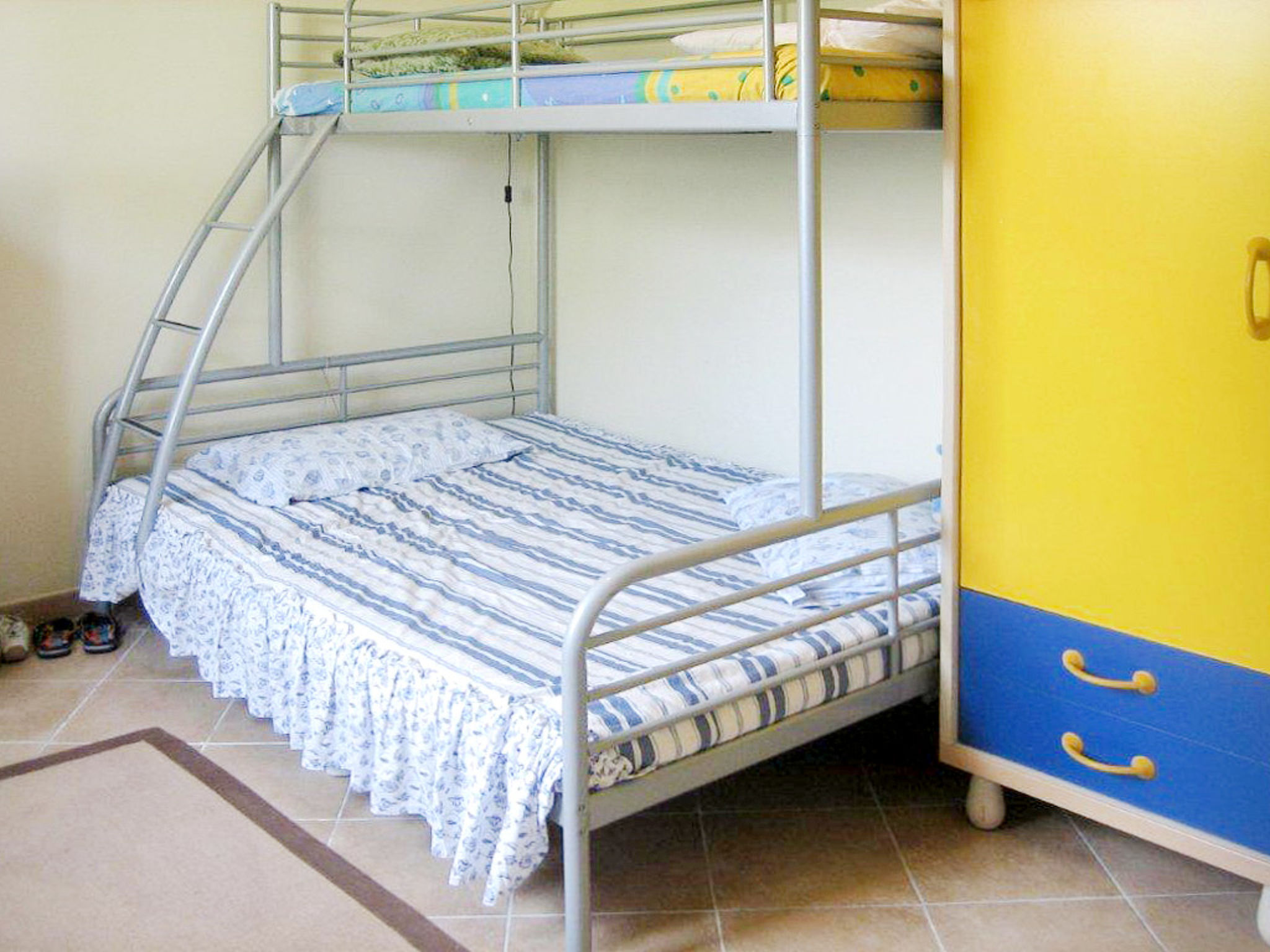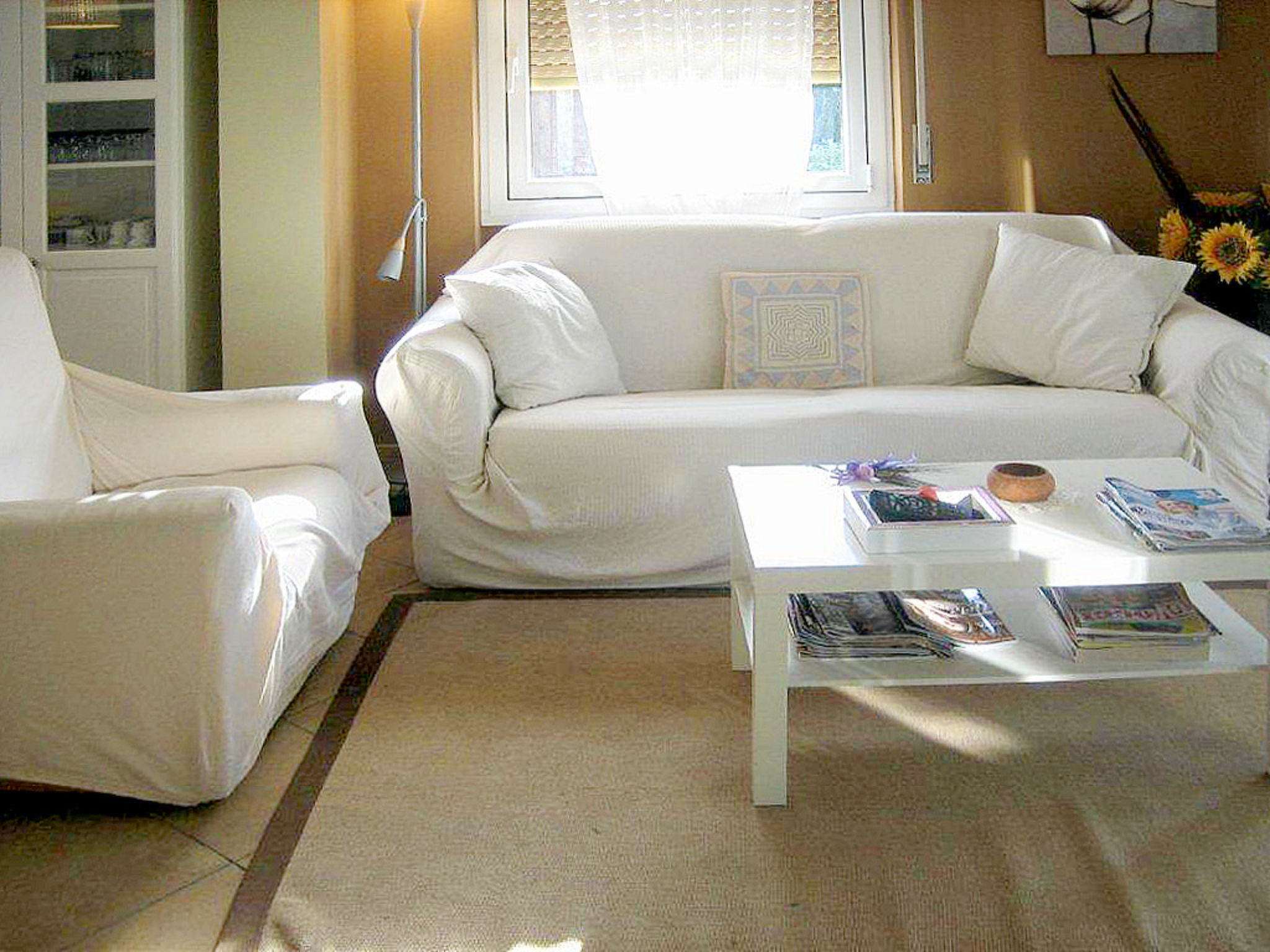 4-Zimmer-Haus, ca. 75 m². Wohnraum mit Sitzcouch, Essplatz und Terrassenausgang. Küche (5 Flammen, Backofen, Mikrowelle, Geschirrspüler, Kühl-/Gefrierkombination). Doppelzimmer. Schlafzimmer mit franz. Bett (1,60 m breit) und Hochbett. Schlafzimmer mit Doppelbettcouch. Dusche/WC. CIR:M0230430591