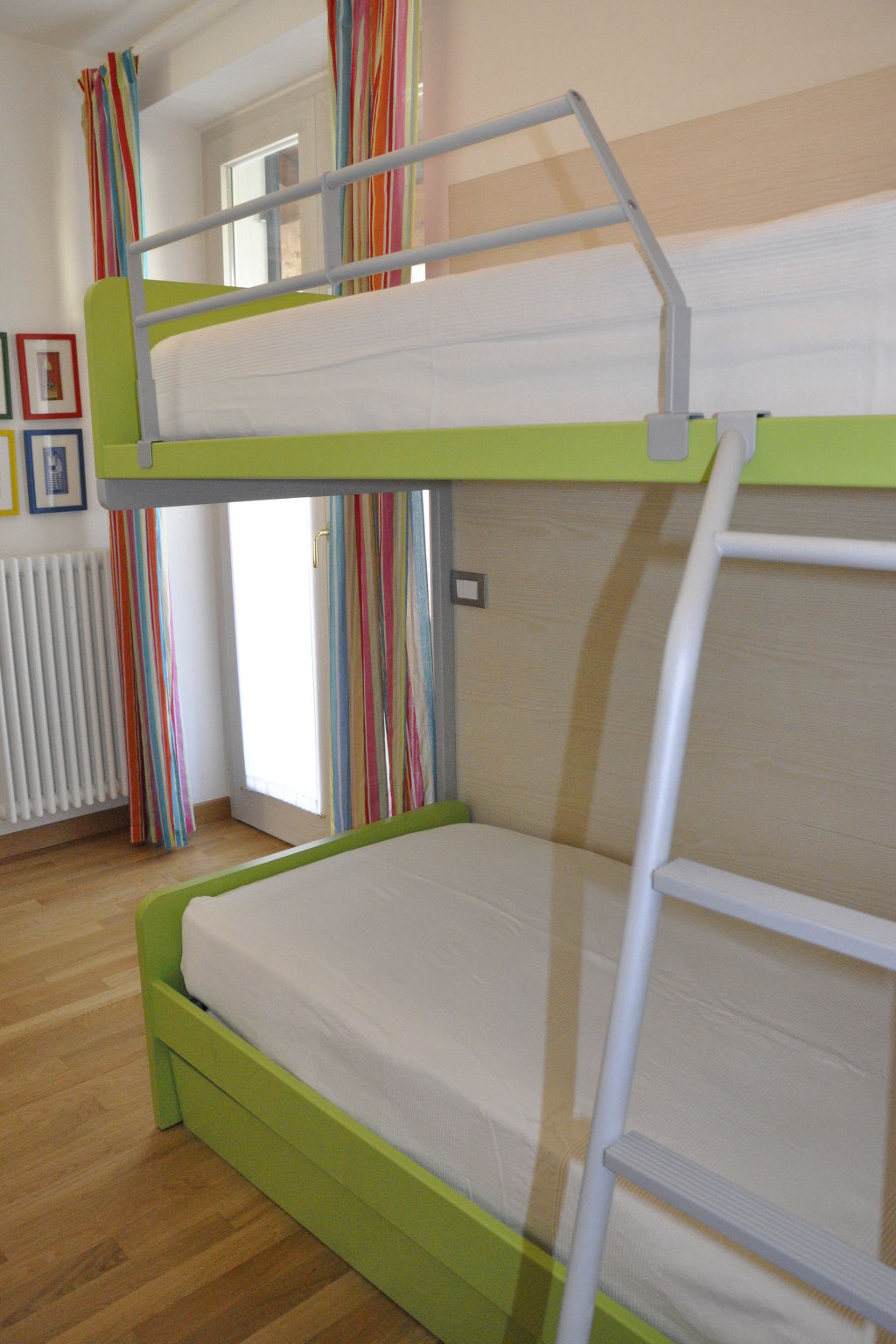 3-Zimmer-Wohnung, 1. Etage, ca. 55 m². Wohnraum mit Sitzcouch, Essplatz, Küchenzeile (4 Flammen, Backofen, Geschirrspüler, Kühl-/Gefrierkombination). Doppelzimmer. Schlafzimmer mit Etagenbett und Ausziehbett. Dusche/WC. CIR:M0230430571