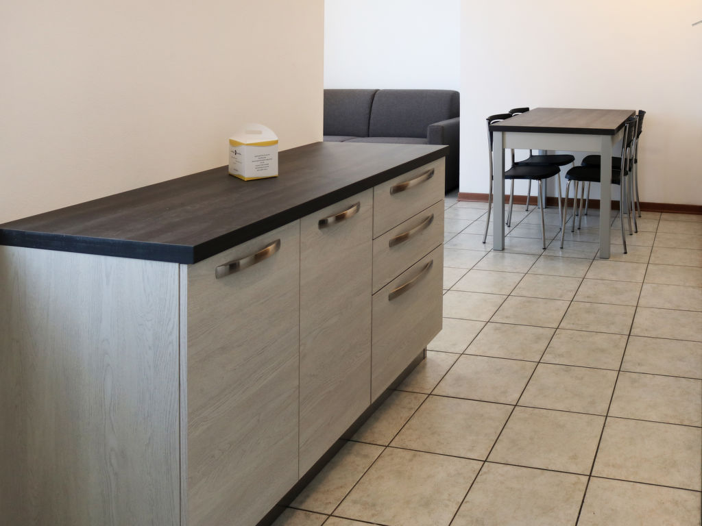 3-Zimmer-Wohnung, 1. Etage, ca. 55 m². Wohn-/Schlafraum mit Doppelbettcouch (ca, 1,40 m breit), Essplatz, Küchenzeile (4 Induktionsfelder, Backofen, Mikrowelle, Geschirrspüler, Kühlschrank), Balkonausgang. Doppelzimmer. Schlafzimmer mit Einzelbett und Ausziehbett. Dusche/WC. Flexibilität bei der Bettenaufteilung: Es stehen mehr Schlafmöglichkeiten zur Verfügung als die maximal zugelassene Personenzahl, diese darf dennoch nicht überschritten werden. CIR:M0230430481