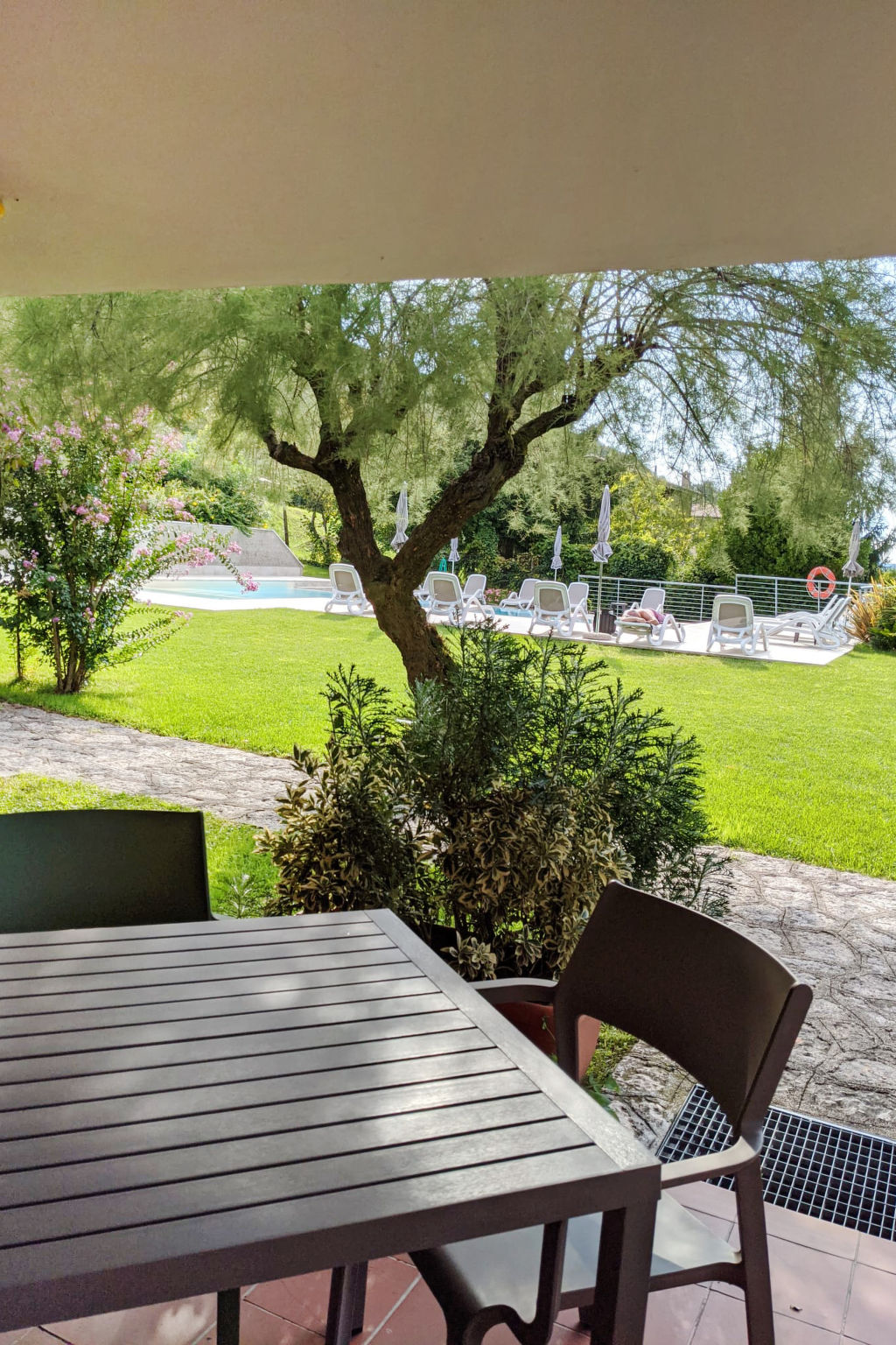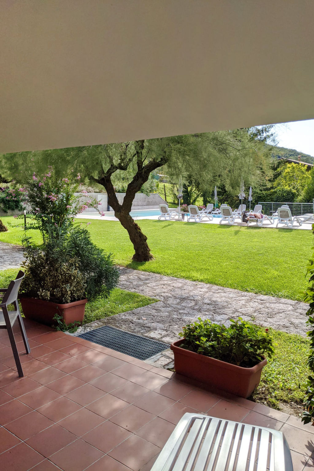 Residenz "Le Rasole", auf 2 Stockwerken. 10 Wohnungen in der Residenz. Am Ortsrand, 2 km vom Zentrum von Garda, am Hang, im Villenviertel, 2 km vom See, im Grünen. Zur Mitbenutzung: gepflegter Terrassengarten mit Rasen und Bäumen, Schwimmbad (12 x 4 m, 140 cm tief, saisonale Verfügbarkeit: 15.Mai.-30.Sep.). Aussendusche, Grill, Kinderspielplatz. Im Hause: Waschmaschine (zur Mitbenutzung). Treppenweg bis zum Haus. Parkplatz auf dem Grundstück. Supermarkt 1 km, Restaurant 50 m, Fußgängerzone 2 km, Fähre "Ferry Terminal Garda" 2.2 km, Kieselstrand 2 km, Thermalbad "Gardacqua" 2 km. Golfplatz (18 Loch) 4 km. Nahe gelegene Sehenswürdigkeiten: Verona 37 km, Sirmione 30 km, Malcesine 30 km, Gardaland 16 km. Der Besitzer akzeptiert keine Jugendgruppen.