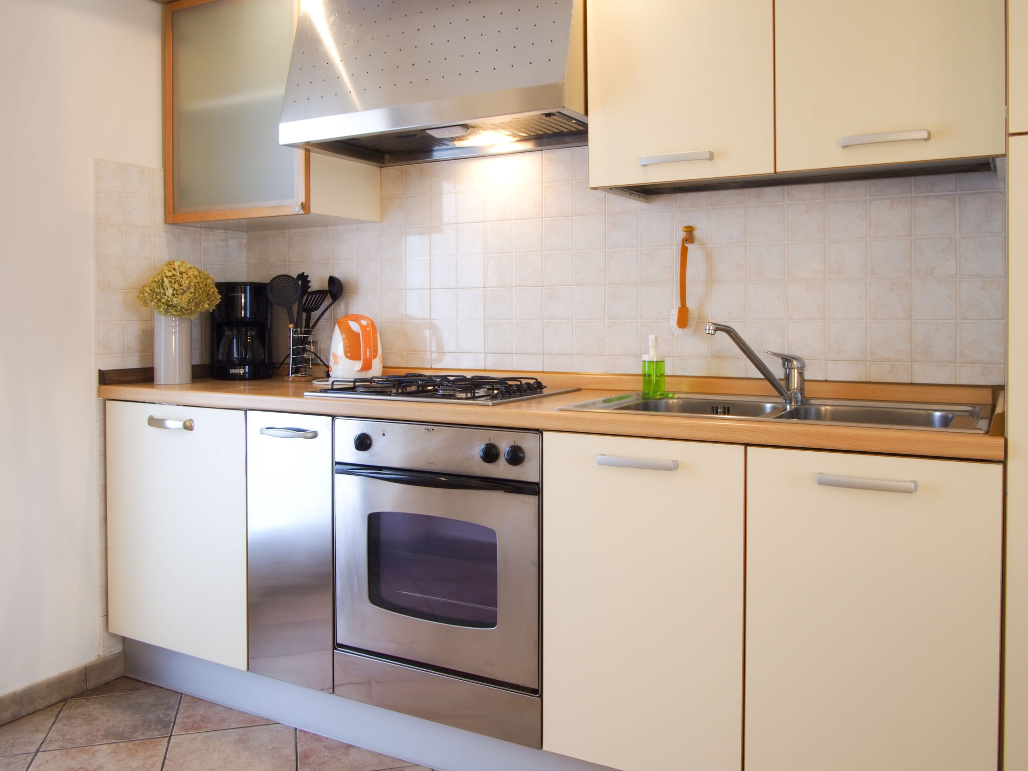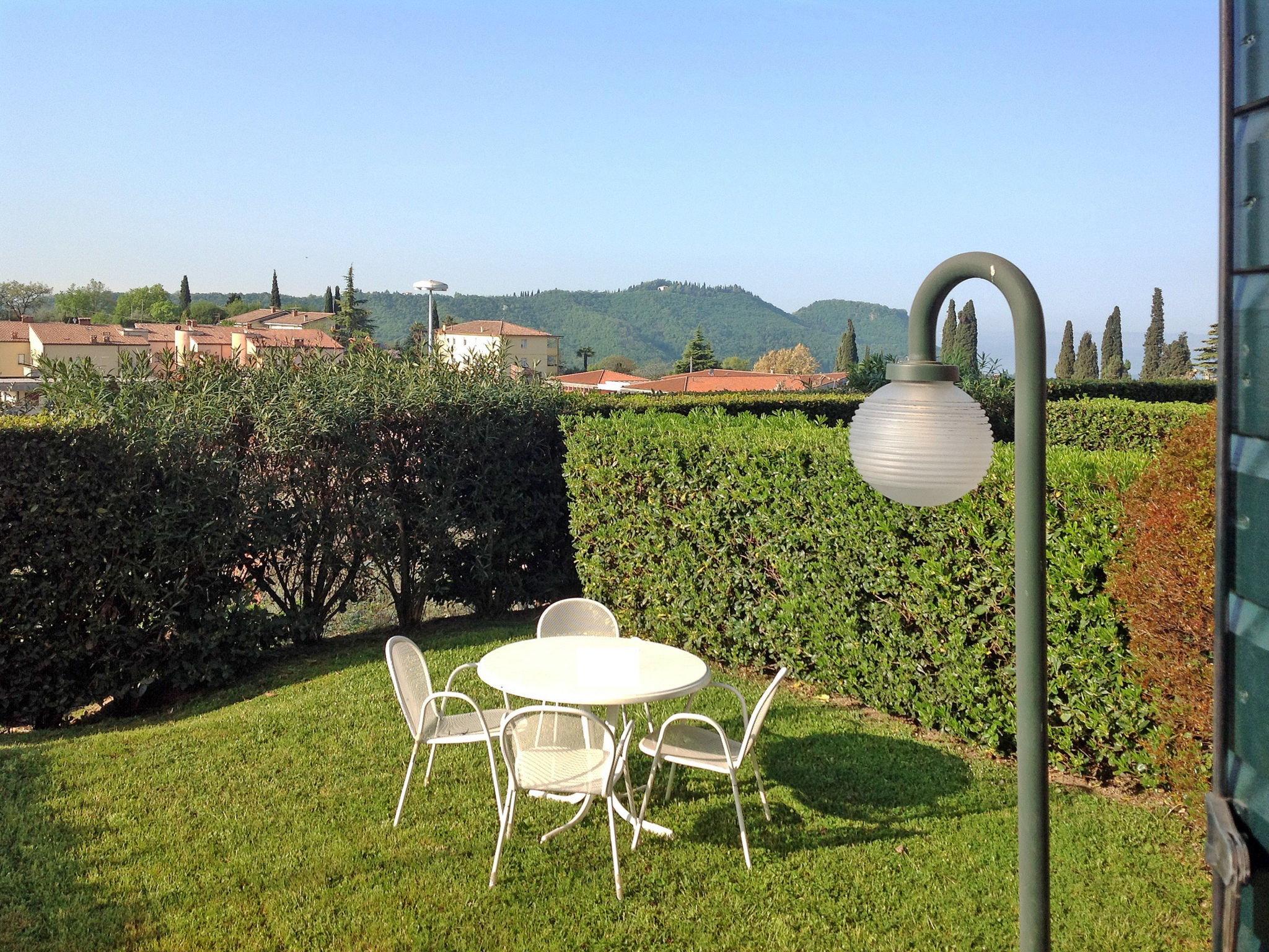 Residenz "I Cortivi", auf 3 Stockwerken. 15 Wohnungen in der Residenz. Oberhalb von Garda, im Ort, 300 m vom Zentrum von Costermano, 5 km vom Zentrum von Garda, 5 km vom See. Zur Mitbenutzung: Grundstück 5'000 m2 (eingezäunt), Garten mit Bäumen, Liegewiese, Schwimmbad nierenförmig (16 x 8 m, saisonale Verfügbarkeit: 15.Mai.-15.Sep.). Kinderbecken, Aussendusche. Supermarkt 300 m, Kieselstrand 5 km. Der Besitzer akzeptiert keine Jugendgruppen.