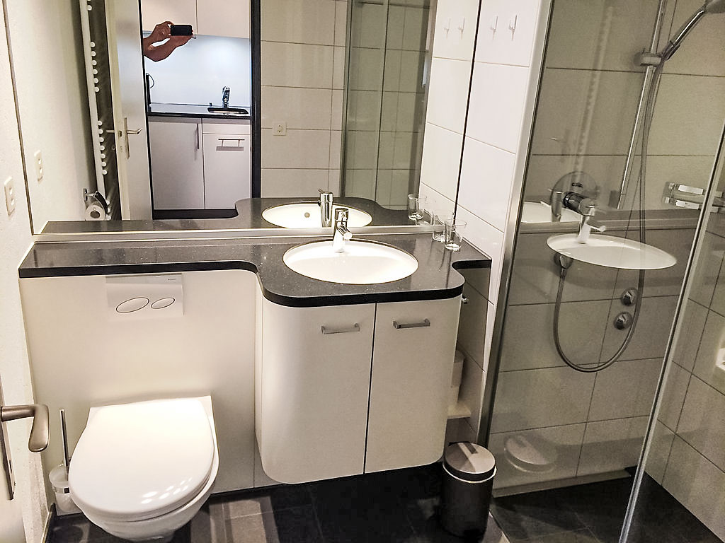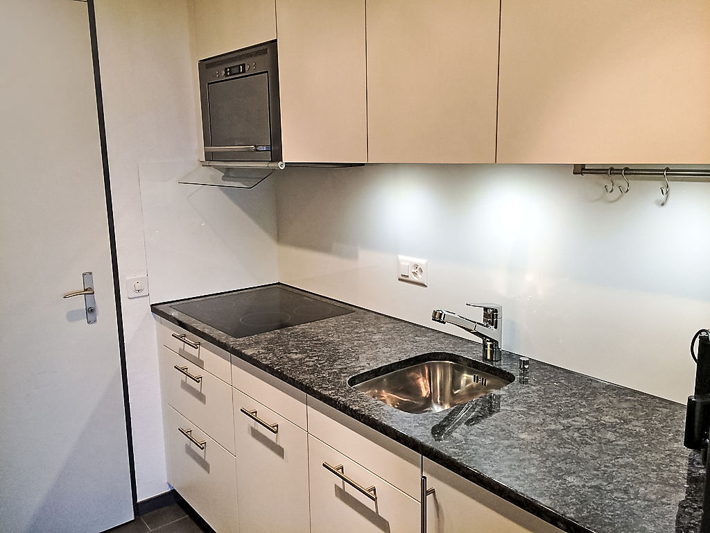 "Apt C 032", 1-Zimmer-Wohnung 39 m2 im 3. Stock, Südwestlage. Renoviert im Jahre 2014, geschmackvoll und gemütlich eingerichtet: Wohn-/Esszimmer mit 2 Wandschrankbetten, Esstisch und Kabel-TV (Flachbildschirm), Radio. Ausgang zum Balkon. Offene Küche (Geschirrspüler, 4 Glaskeramikherd Platten, Mikrowelle, elektrische Kaffeemaschine). Dusche/WC. Balkon, Südlage und Westlage. Balkonmöbel, Liegestühle (2). Sehr schöne Panoramasicht auf die Berge und die Landschaft. Zur Verfügung: Haartrockner. Internet (Wireless LAN, gratis). Bitte beachten: Nichtraucher-Unterkunft. Sehr schöne Sicht auf den Medelsergletscher.