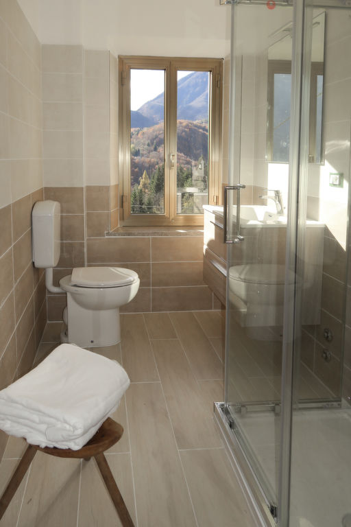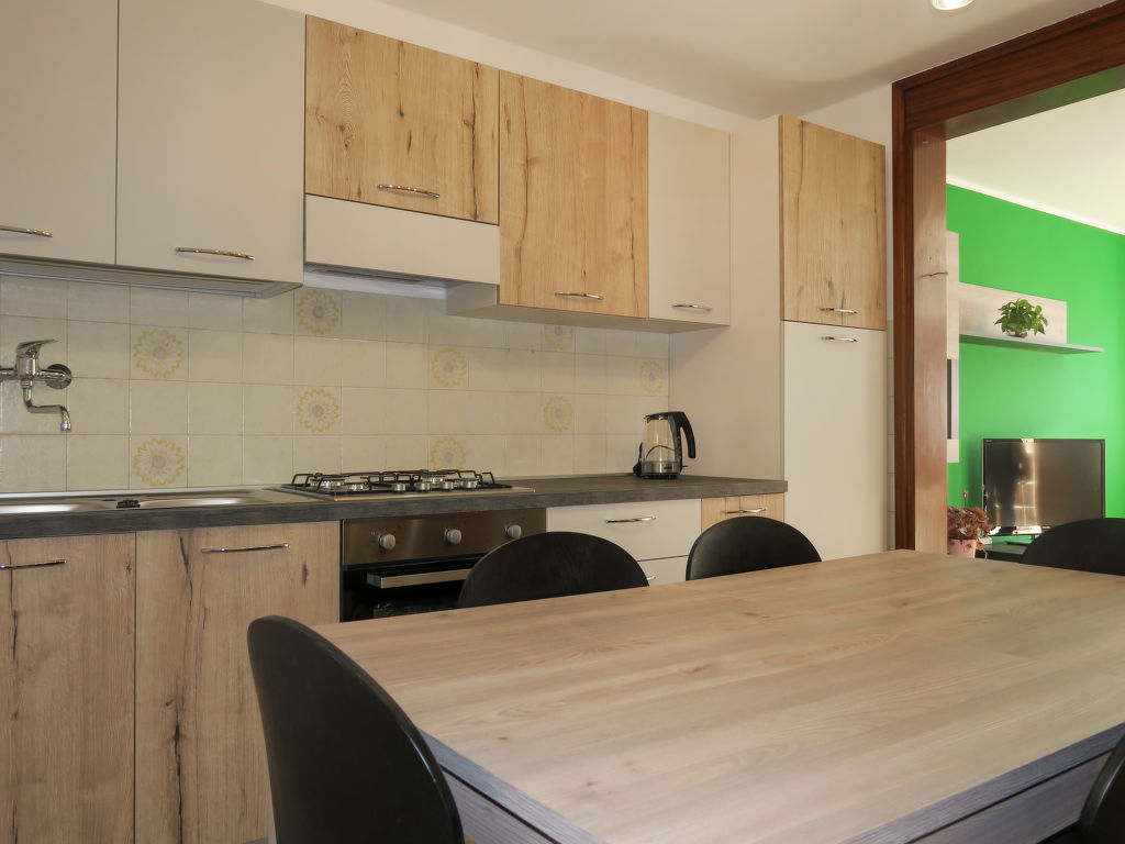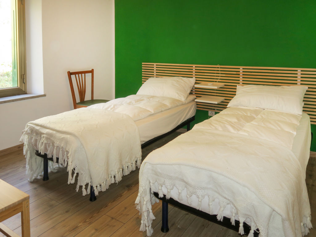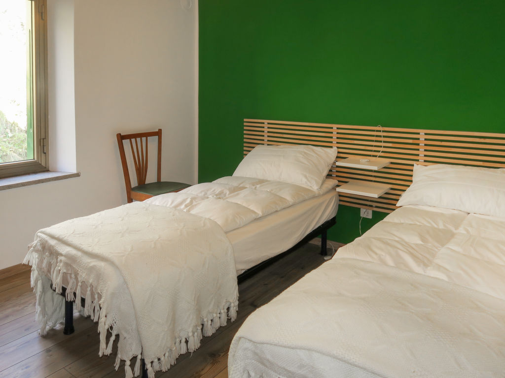 "La Predaia", 5-Zimmer-Reihenhaus 100 m2 auf 3 Stockwerken. Hell, gemütlich eingerichtet: Wohnzimmer mit Digital-TV. Offene Küche (Backofen, 4 Flammen, Wasserkocher, Tiefkühler) mit Esstisch. Sep. WC. Obergeschoss: 1 Doppelzimmer. 1 Zimmer mit 2 Betten. Bad/WC. 2. Obergeschoss: 1 Doppelzimmer. 1 Zimmer mit 2 Betten. Dusche/WC. G-Heizung. Holzböden, Natursteinböden. Kleiner Gartensitzplatz. Zur Verfügung: Waschmaschine, Babybett bis 2 Jahre. Bitte beachten: Nichtraucher-Unterkunft.