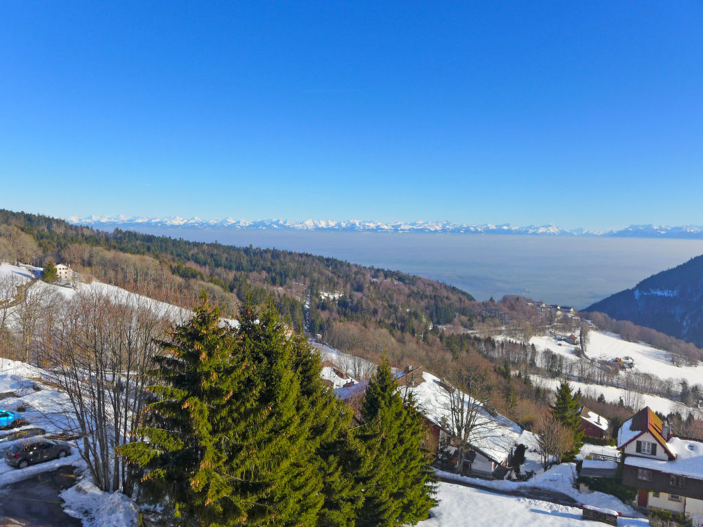Les Petites Roches: Residenz "Centaure". Am Ortsrand, 3 km vom Zentrum, ruhige, sonnige Lage, Richtung Süden. Zufahrt bis 30 m zum Haus. Treppenweg bis zum Haus. Öffentliche Parkplätze auf der Strasse. Einkaufsgeschäft 3 km, Restaurant, Bushaltestelle 900 m, Bahnstation 3 km, Freibad 900 m, Hallenbad 6 km, Thermalbad 20 km. Tennis 4 km, Sportzentrum 4 km, Skisportanlagen 6 km, Skischule 6 km, Kinderskischule 6 km, Langlaufloipe 6 km, Eisfeld 8 km. Bitte beachten: Fahrzeug empfohlen. In diesem Haus sind weitere Ferienwohnungen mietbar. Das Chalet liegt im mittleren Teil der Residenz.