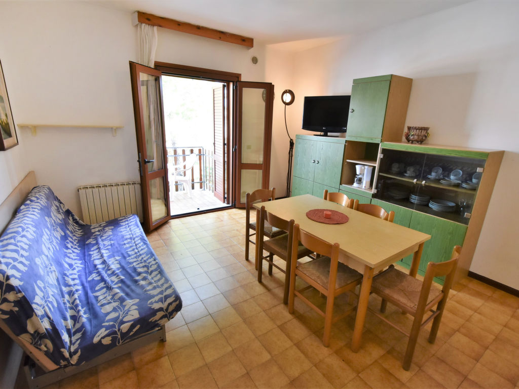 3-Zimmer-Wohnung 70 m2 im 2. Stock. Objekt geeignet für 5 Erwachsene + 1 Kind. Hell, einfach und zweckmässig eingerichtet: Wohn-/Esszimmer mit 1 Doppeldiwanbett, Esstisch und TV (Flachbildschirm). Ausgang zum Balkon. 1 Doppelzimmer. Ausgang zum Balkon. 1 Doppelzimmer. Ausgang zum Balkon. Kochnische (4 Flammen, Mikrowelle, Tiefkühler, elektrische Kaffeemaschine). Dusche/Bidet/WC. Heizung, Klimaanlage (extra). 2 grosse Balkone. Balkonmöbel. Sicht auf den Garten. Zur Verfügung: Haartrockner. Parkplatz. Bitte beachten: Nichtraucher-Unterkunft. Maximal 1 Haustier/Hund erlaubt.