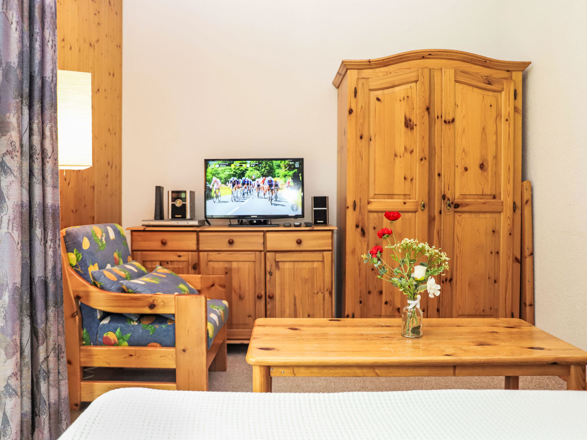 "Mont Fort 55", 1-Zimmer-Wohnung 35 m2 im 5. Stock. Wohn-/Esszimmer mit 1 Doppeldiwanbett (160 cm, Länge 190 cm), Kabel-TV, CD und DVD. Eingang mit 1 x 2 Etagenbetten (90 cm, Länge 180 cm). Offene Küche (2 Kochplatten, Mikrowelle, Racletteofen, Fondue Set (Käse)). Bad/WC. Balkon, Südostlage. Zur Verfügung: Haartrockner. Internet (Wireless LAN). Bitte beachten: Nichtraucher-Unterkunft, Nichtraucher-Haus.