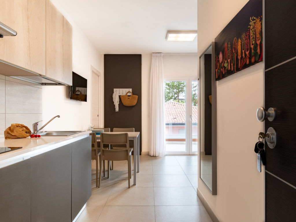 Komfortable Residenz "Iris Suite", auf 5 Stockwerken, Baujahr 2021. 16 Wohnungen in der Residenz. Im Ortsteil Bibione Spiaggia, 100 m vom Zentrum von Bibione, 13 km vom Zentrum von Lignano, 100 km vom Zentrum von Venezia, 450 m vom Strand. Zur Mitbenutzung: Grundstück (eingezäunt), Schwimmbad (6 x 6 m, saisonale Verfügbarkeit: 15.Mai.-15.Sep.). In der Anlage: Fahrstuhl, Sonnenterrasse. Supermarkt 230 m, Bahnstation "Latisana" 21 km. Ca. 120 m² große Dachterrasse mit Pool, Sonnenliegen und Sitzecke zur gemeinsamen Nutzung.
