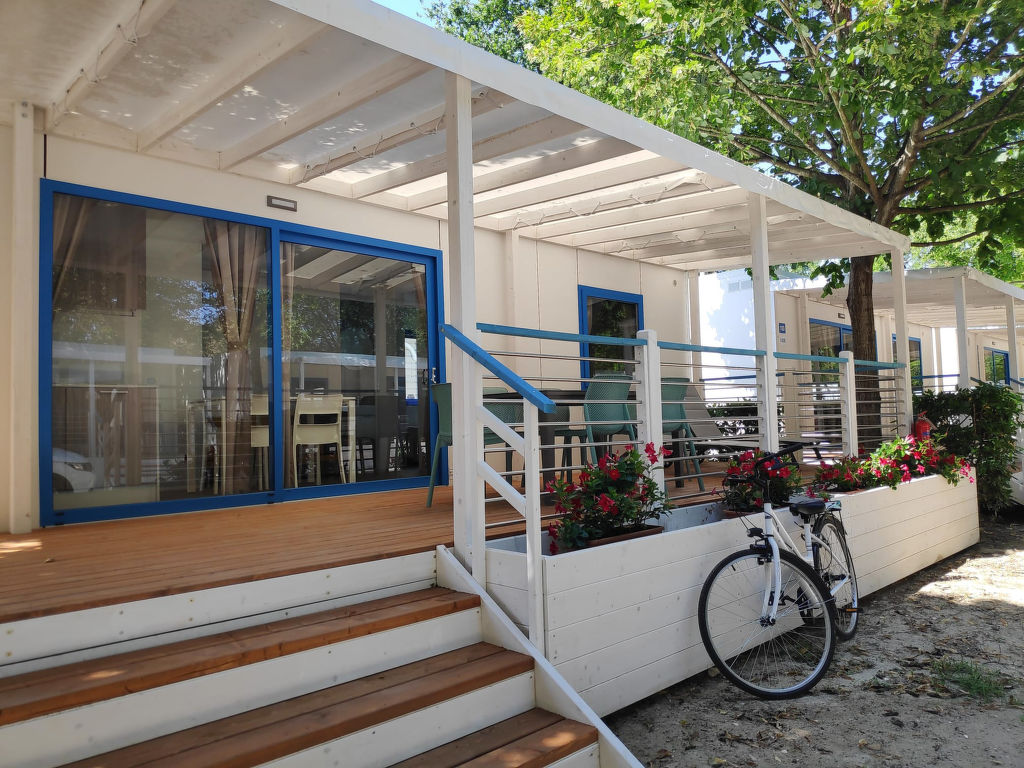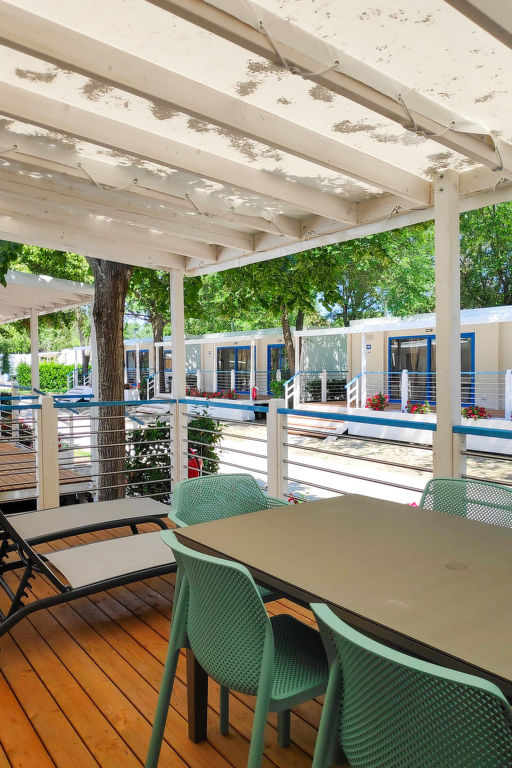 Das Ferienzentrum PRA'DELLE TORRI liegt in Porto Santa Margherita auf einem ca. 100 ha großen, abgeschlossenen Grundstück direkt am Strand, zwischen Caorle und Eraclea Mare (jeweils 6 km). Die moderne Anlage wirkt fast schon wie ein Dorf, denn es gibt ein Einkaufszentrum mit Supermarkt, Friseur, Bazar, Sportartikelgeschäft, Jeansladen, Lederwarengeschäft, Juweliergeschäft, Bars, Eisdiele, Pizzeria, Restaurants, Tabak- und Zeitungskiosk, Spielhalle mit Videospielen, Waschsalon (Münzwaschmaschinen und Münztrockner), Informationsbüro, 4 Bankomaten, Internetpoint, Erste-Hilfe-Station. Wöchentlicher Antiquitätenmarkt (ca. Mitte Juni bis Ende August). Das Sport- und Unterhaltungsangebot umfasst: Pool (50 x 21 m), weiterer Pool (25 x 21 m) sowie Kinderpool ‘Pirateninsel‘, jeweils die gesamte Saison geöffnet (bis 15.05./ab 15.09. beheizt), Acquapark 'Laguna' für Kinder mit Wasserrutsche und Springbrunnen, Sonnenterrassen mit Sonnenliegen und Sonnenschirmen (jeweils gegen Bezahlung) und weiterer Pool (25 x 12,5 m) mit Kinderpool (10 x 10 m), jeweils geöffnet ca. 20.05.-11.09. Beach-Volley, Sportplatz, Kinderspielplatz, Bogenschießen, Mountainbike-Piste, Animationsprogramm für Erwachsene und Kinder, Miniclub (4-12 Jahre), jeweils ca. 20.05.-11.09. Gegen Bezahlung: 6 Tennisplätze (davon 2 mit Flutlicht), Tischtennis, Boccia, Minigolf, Fahrradverleih, kleine Auto-Rennbahn und Hüpfburg für Kinder, Fitness-Studio. 18-Loch-Golfplatz mit Schule und Set-Verleih. Während der Saison verschiedene Veranstaltungen (auch abends) und Turniere. Tennis-, Windsurf- und Schwimmschule, ‘Activity Park‘ mit Skate-Park, Parkour-Feld, Panna-Fußballfeld, Slackline, überdachter Phono-Bereich zum Musikhören, Musikmachen, Tanzen und Chill-House. Am weiten, flach abfallenden Sandstrand Boots- und Surfboardverleih. Leihmöglichkeit von 1 Sonnenliege, 1 Liegestuhl und 1 Sonnenschirm (jeweils gegen Bezahlung). Eigene Liegestühle können nur an zugewiesenen Plätzen aufgestellt werden. In den Gemeinschaftsbereichen Internetzugang (WLAN, inklusive). Die neuen Mobilhomes liegen in der Nähe des Golfplatzes, ca. 800 m vom Strand entfernt und haben jeweils 1 Parkplatz beim Mobilhome. Weitere Parkmöglichkeiten innerhalb des Feriendorfs (gegen Bezahlung). Jeweils überdachte Holzterrasse mit Mobiliar, Sonnenschirm und Gasgrill. Freundliche, feriengerechte Einrichtung. Safe. Fliegengitter in den Schlafzimmern. Klimaanlage mit Kühl-/Heizfunktion (nicht in allen Räumen). Hinweis: Rauchen ist in den Mobilhomes nicht gestattet.