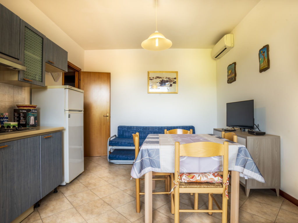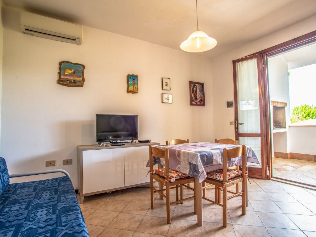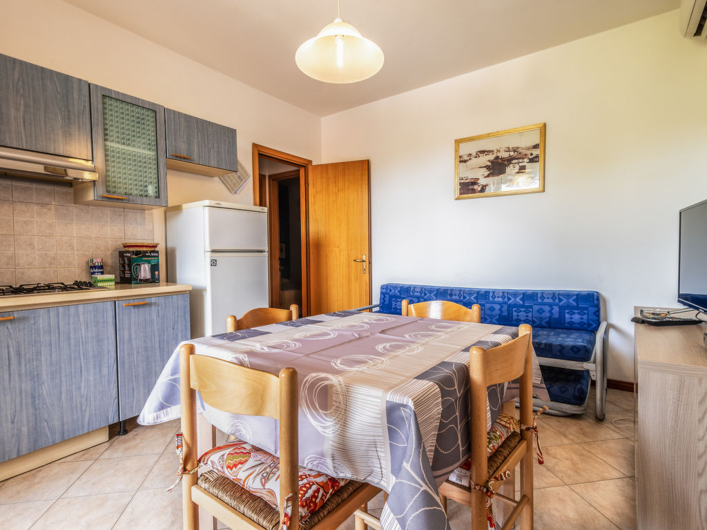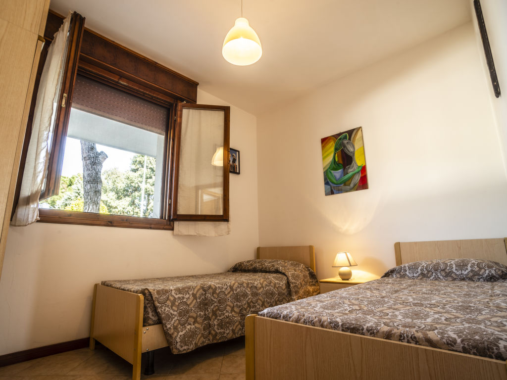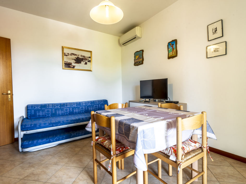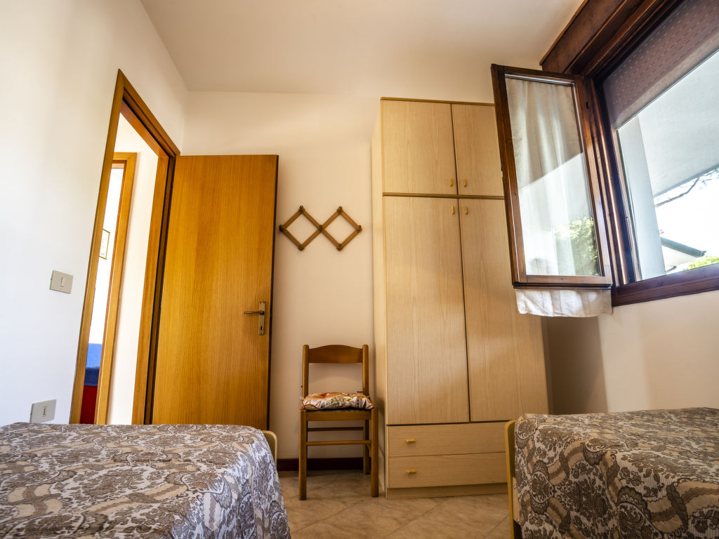 3-Zimmer-Wohnung 45 m2 auf 2 Stockwerken im 1. Stock. Zweckmässig und komfortabel eingerichtet: Wohn-/Esszimmer mit 1 Diwanbett, 1 Ausziehbett und Sat-TV. Ausgang zur Terrasse. 1 Doppelzimmer. 1 Zimmer mit 2 Betten. Kochnische (4 Kochplatten, Tiefkühler, elektrische Kaffeemaschine). Dusche/Bidet/WC. Klimaanlage (extra). Grosse Terrasse. Terrassenmöbel, Gartengrill, Loggia. Zur Verfügung: Waschmaschine, Fliegengitter. Bitte beachten: geeignet für Familien. Nichtraucher-Unterkunft. 1 Haustier/Hund erlaubt.
