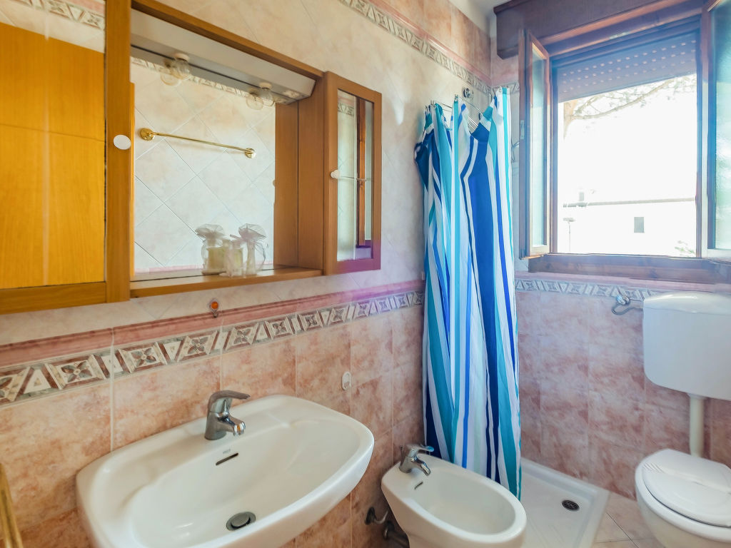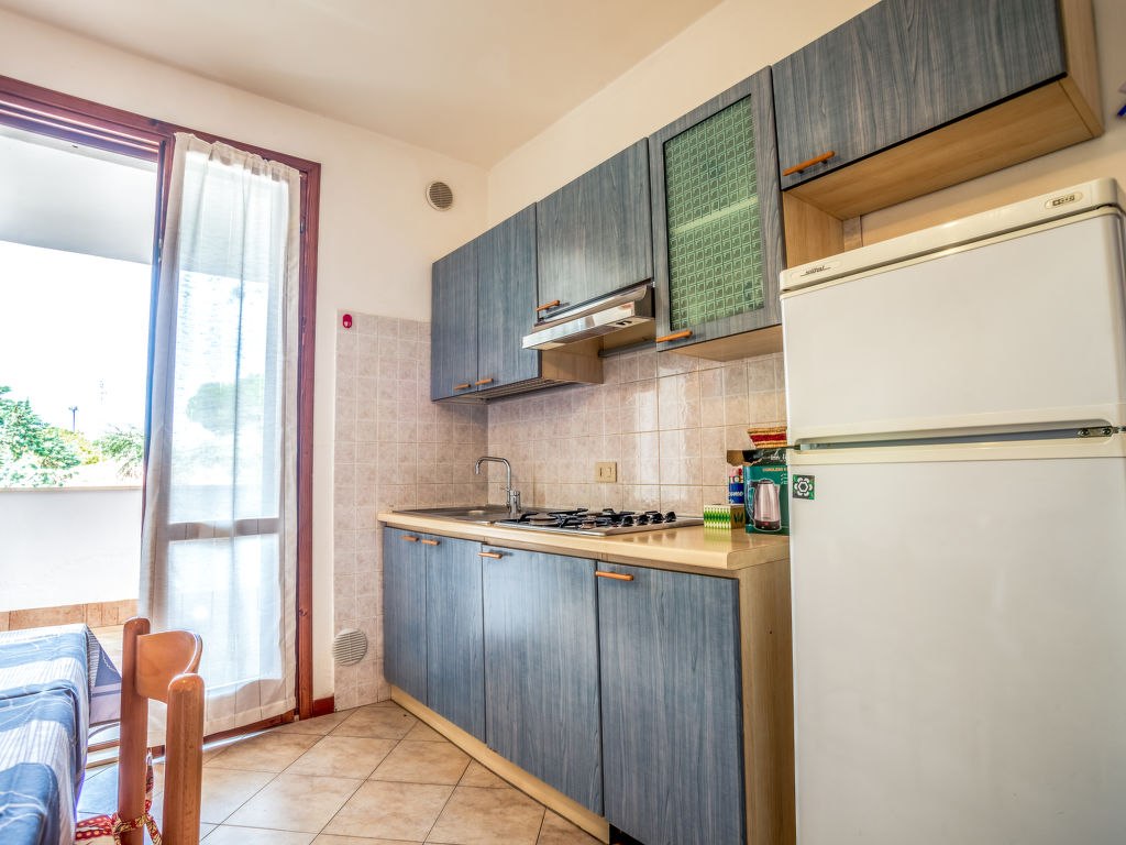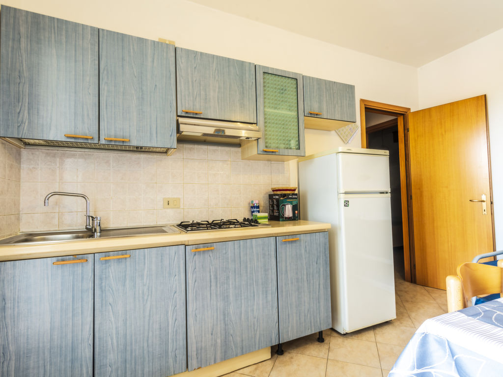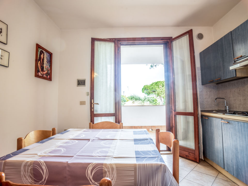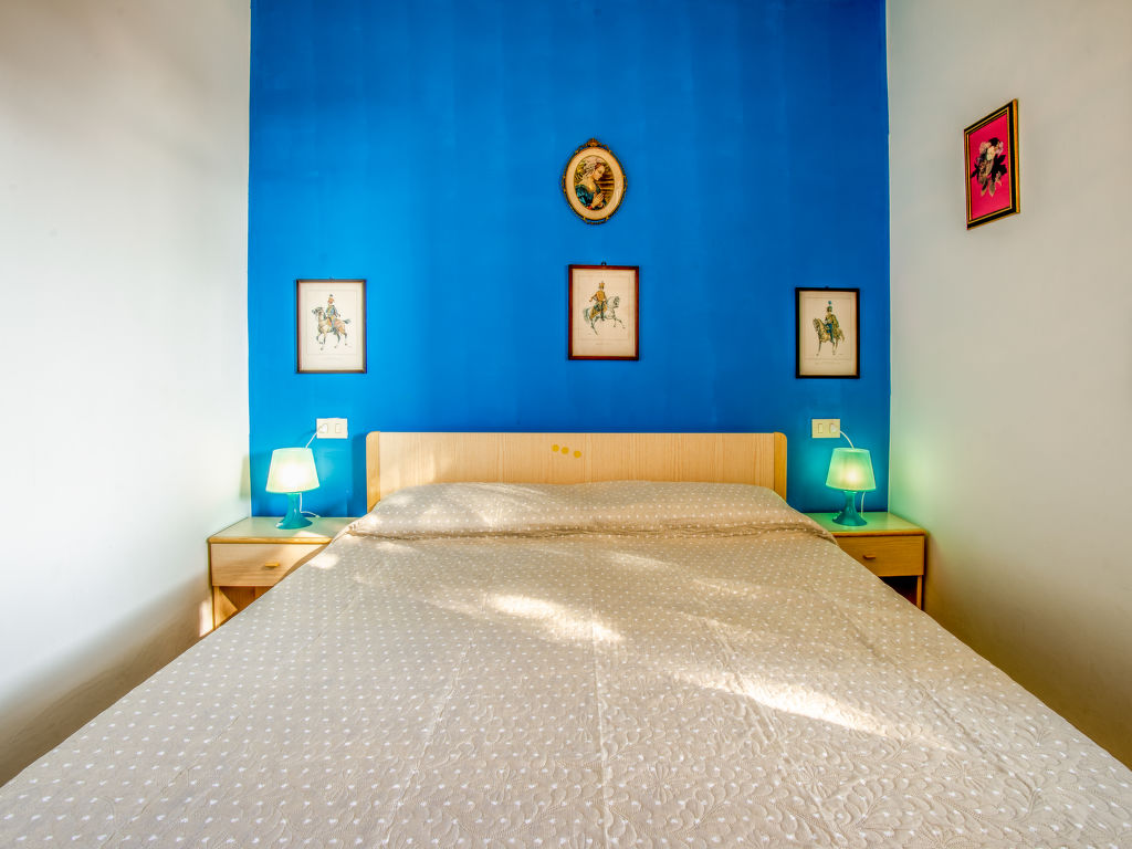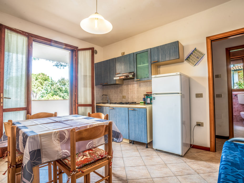 3-Zimmer-Wohnung 45 m2 auf 2 Stockwerken im 1. Stock. Zweckmässig und komfortabel eingerichtet: Wohn-/Esszimmer mit 1 Diwanbett, 1 Ausziehbett und Sat-TV. Ausgang zur Terrasse. 1 Doppelzimmer. 1 Zimmer mit 2 Betten. Kochnische (4 Kochplatten, Tiefkühler, elektrische Kaffeemaschine). Dusche/Bidet/WC. Klimaanlage (extra). Grosse Terrasse. Terrassenmöbel, Gartengrill, Loggia. Zur Verfügung: Waschmaschine, Fliegengitter. Bitte beachten: geeignet für Familien. Nichtraucher-Unterkunft. 1 Haustier/Hund erlaubt.