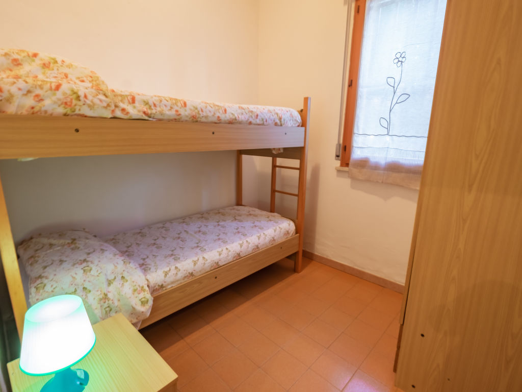 3-Zimmer-Wohnung 45 m2, im Erdgeschoss. Zweckmässig und komfortabel eingerichtet: Wohn-/Esszimmer mit 1 Diwanbett, 1 Ausziehbett, Esstisch und TV. Ausgang zum Garten, zur Loggia. 1 Zimmer mit 1 x 2 Etagenbetten. 1 Doppelzimmer. Kochnische (4 Kochplatten, Tiefkühler, elektrische Kaffeemaschine). Dusche/Bidet/WC. Garten. Terrassenmöbel, Loggia. Zur Verfügung: Waschmaschine, Fliegengitter. Bitte beachten: geeignet für Familien. Nichtraucher-Unterkunft. 1 Haustier/Hund erlaubt.