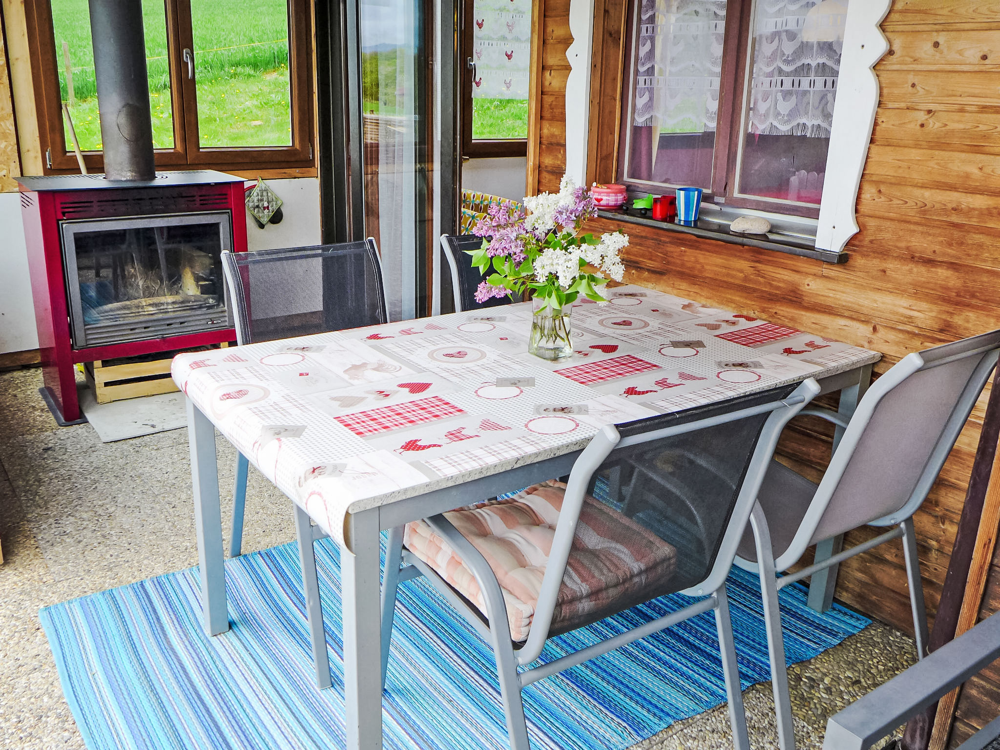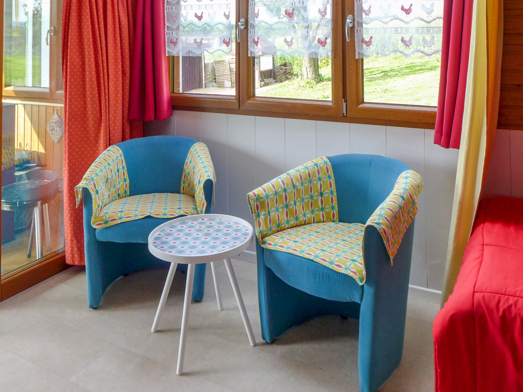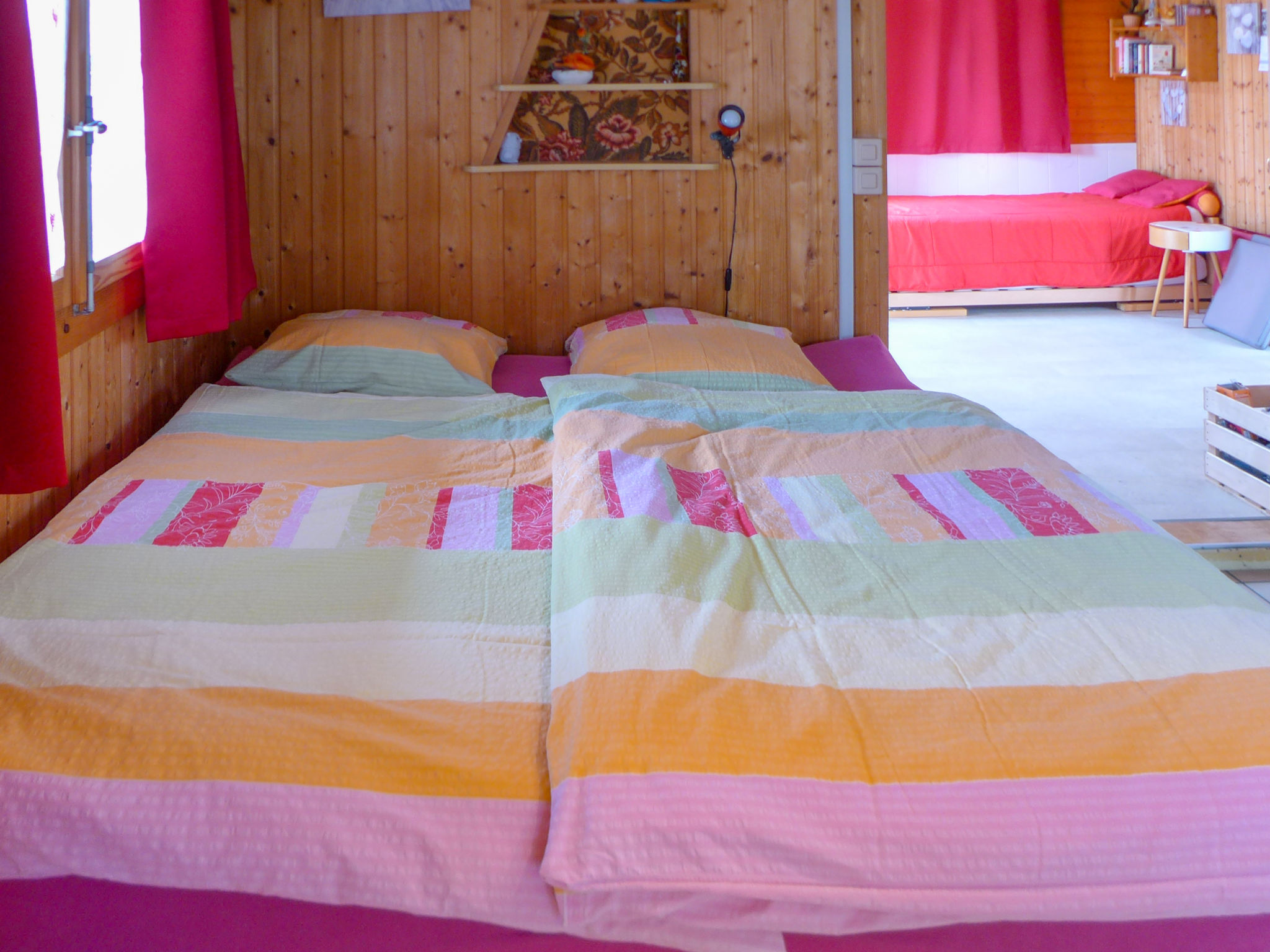 2-Zimmer-Chalet 45 m2. Objekt geeignet für 2 Erwachsene + 2 Kinder. Teilweise renoviert im Jahre 2020, geschmackvoll und gemütlich eingerichtet: Wohn-/Schlafzimmer mit 1 Ausziehbett (2 Pers. 2 x 90 cm, Länge 200 cm), Essecke, Sat-TV und Flachbildschirm. Ausgang zur Terrasse. Offene Küche (Backofen, 4 Glaskeramikherd Platten, Mikrowelle, Grill, elektrische Kaffeemaschine, Kapseln für die Kaffeemaschine (Delizio), Racletteofen, Fondue Set (Käse)) mit 2 Betten (90 cm, Länge 200 cm), Schwedenofen. Dusche/WC. Holzheizung, Boiler. Terrasse 50 m2. Terrassenmöbel, Liegestühle (2). Sehr schöne Sicht auf die Landschaft. Zur Verfügung: Fliegengitter, Haartrockner, Holz (extra). Parkplatz beim Haus. Bitte beachten: Nichtraucher-Unterkunft. Maximal 2 Haustiere/Hunde erlaubt.
