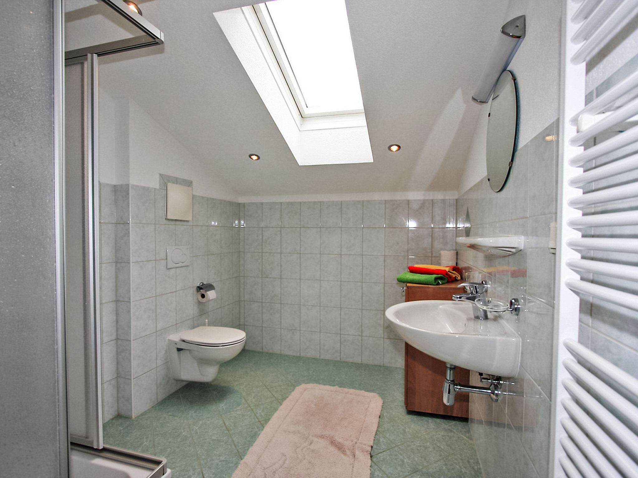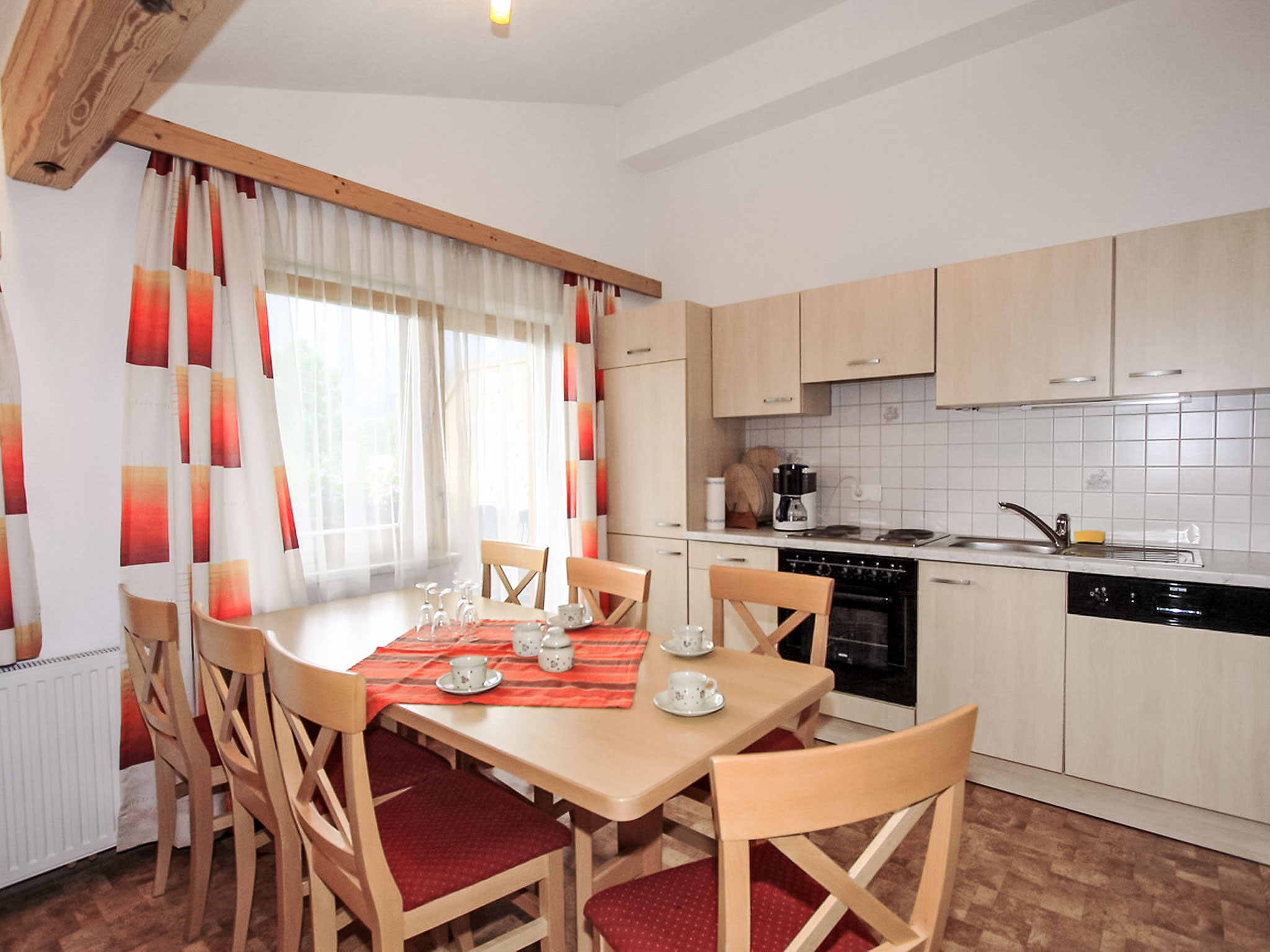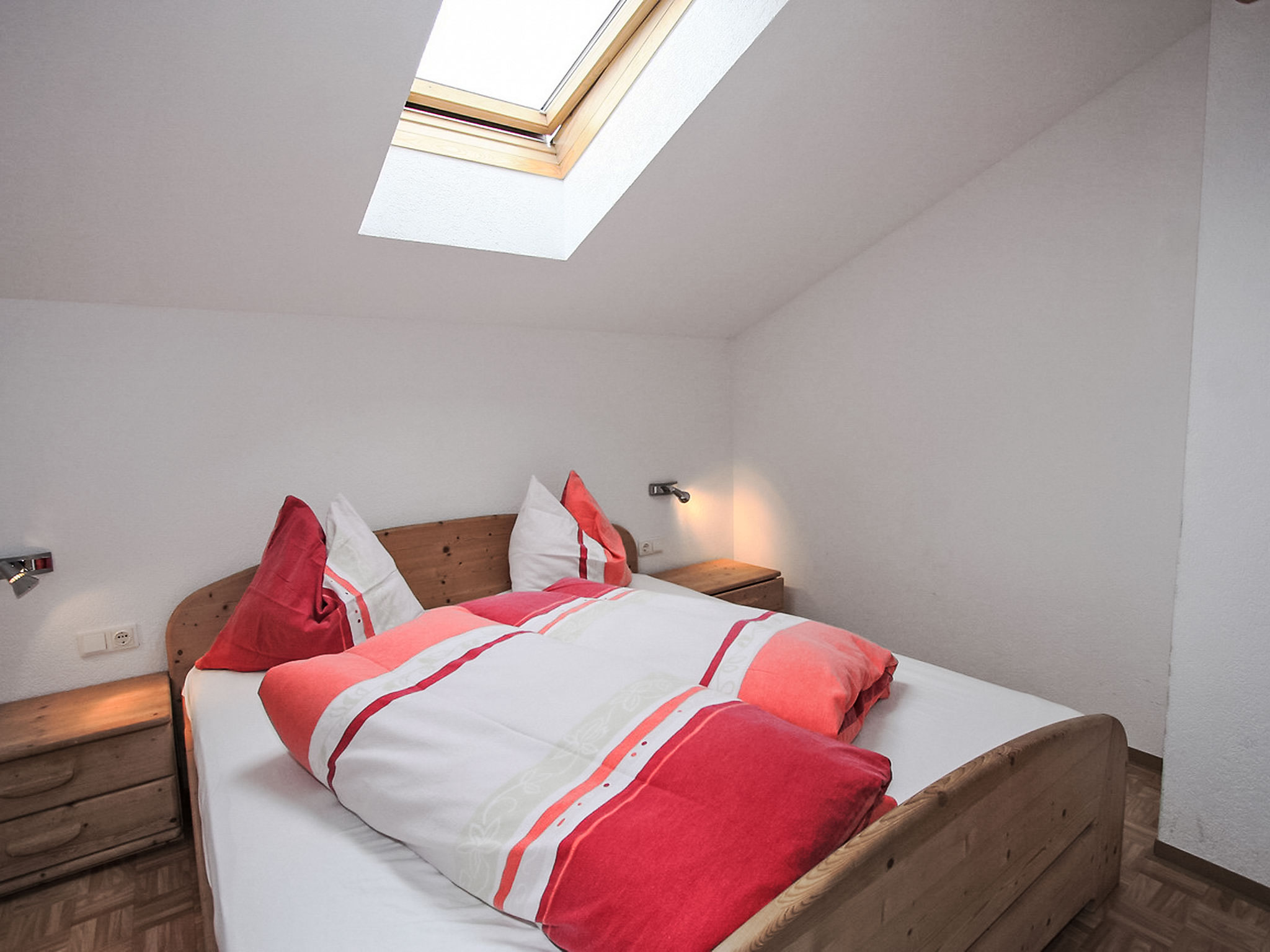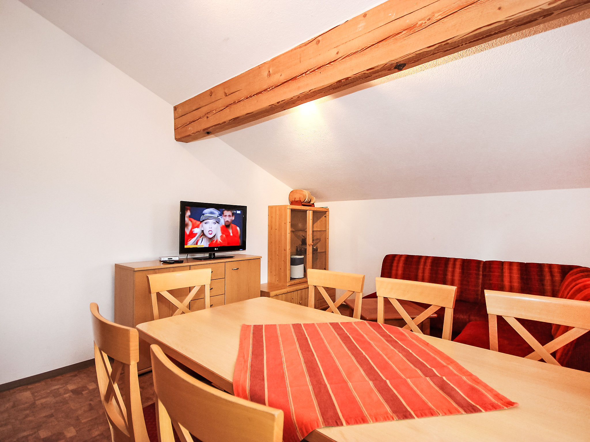 3-Zimmer-Wohnung 75 m2 im 2. Stock. Gemütlich eingerichtet: Eingang. 1 Doppelzimmer. 1 Zimmer mit 1 Bett und 1 Doppelbett. Ausgang zum Balkon. Wohn-/Schlafzimmer mit 1 Doppeldiwanbett, Esstisch und Sat-TV (Flachbildschirm). Ausgang zum Balkon. Offene Küche (4 Kochplatten, Backofen, Geschirrspüler, Wasserkocher, elektrische Kaffeemaschine). Dusche/WC, sep. WC. 2 Balkone. Balkonmöbel. Sehr schöne Sicht auf die Berge und die Landschaft. Zur Verfügung: Internet (Wireless LAN, extra). 1 Haustier/Hund erlaubt.