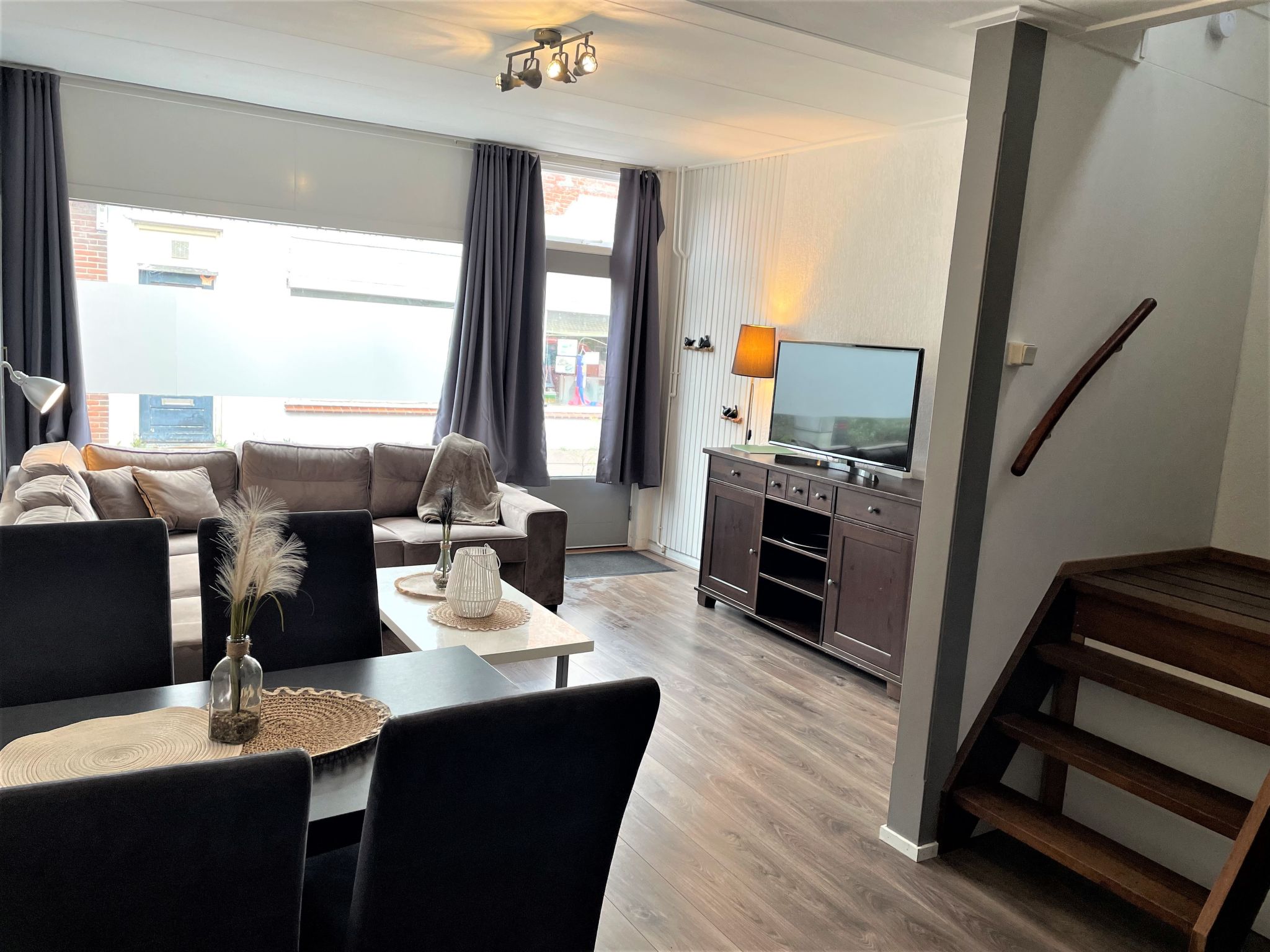 "Dorpswoning Brouwershaven", 3-Zimmer-Haus 50 m2 auf 2 Stockwerken. Objekt geeignet für 3 Erwachsene + 1 Kind. Renoviert im Jahre 2019, komfortabel eingerichtet: offenes Wohn-/Esszimmer mit Esstisch, TV, Internationale TV-Sender und Flachbildschirm. Kleine, offene Küche (2 Kochplatten, Geschirrspüler, Wasserkocher, Mikrowelle, elektrische Kaffeemaschine). Obergeschoss: (steile Treppe) Eingang mit sep. WC. 2 abgeschrägte Doppelzimmer, jedes Zimmer mit 2 Betten. Dusche. Zur Verfügung: Internet (Wireless LAN, gratis). Bitte beachten: Nichtraucher-Haus. Rauchmelder.