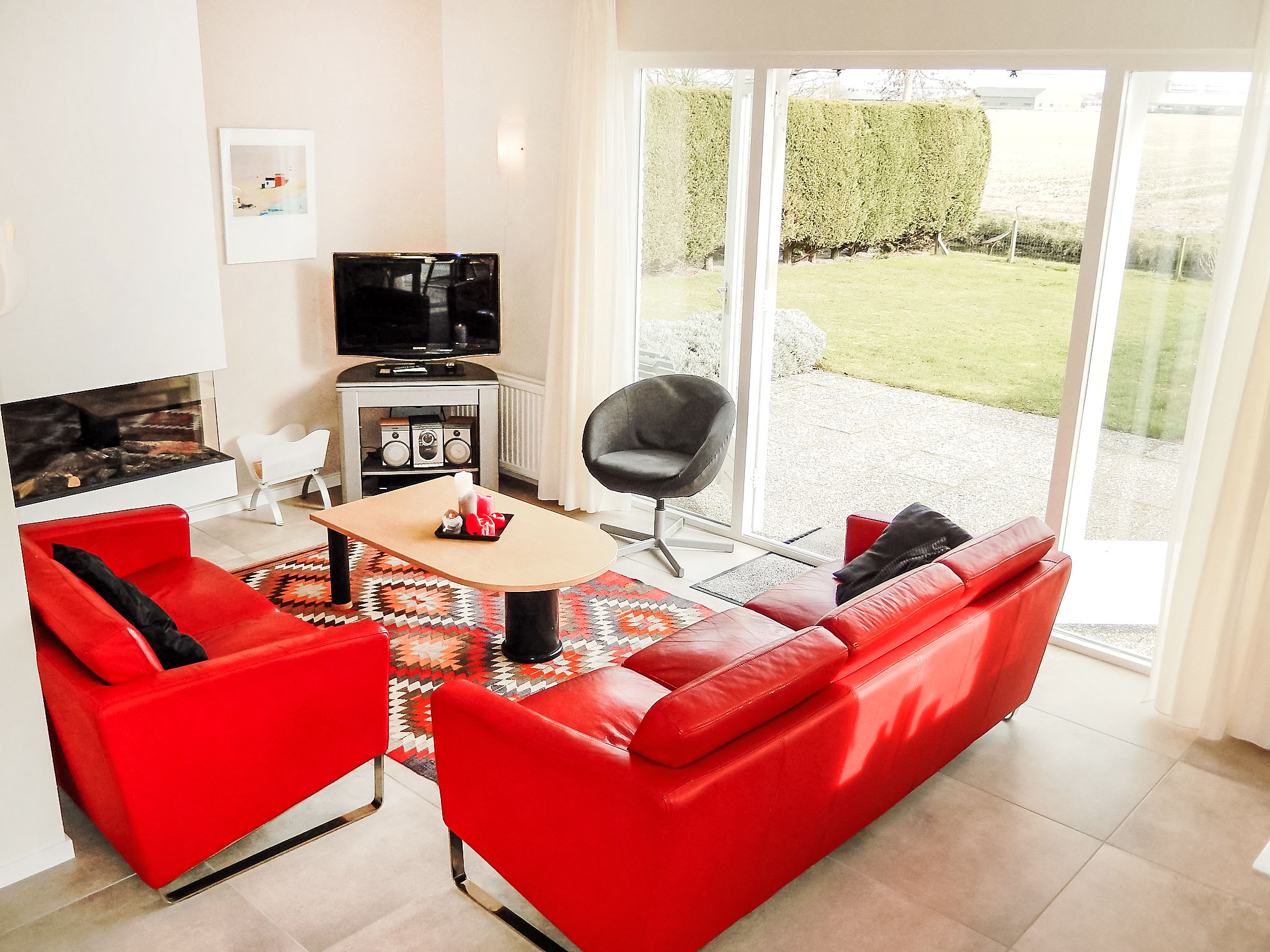 "Stern Comfort", 4-Zimmer-Haus 98 m2 auf 2 Stockwerken. Renoviert im Jahre 2015, komfortabel eingerichtet: Eingang. Wohn-/Esszimmer mit Esstisch, TV und DVD. Ausgang zur Terrasse. Offene Küche (4 Kochplatten, Geschirrspüler, Toaster, Wasserkocher, elektrische Kaffeemaschine, Kombinationsmikrowelle). Dusche/WC. Obergeschoss: 3 Doppelzimmer, jedes Zimmer mit 2 Betten. Terrassenmöbel. Zur Verfügung: Waschmaschine. Internet (Wireless LAN, gratis). Parkplatz (2 Autos) beim Haus. Bitte beachten: Nichtraucher-Haus. Rauchmelder. Haustier auf Anfrage.