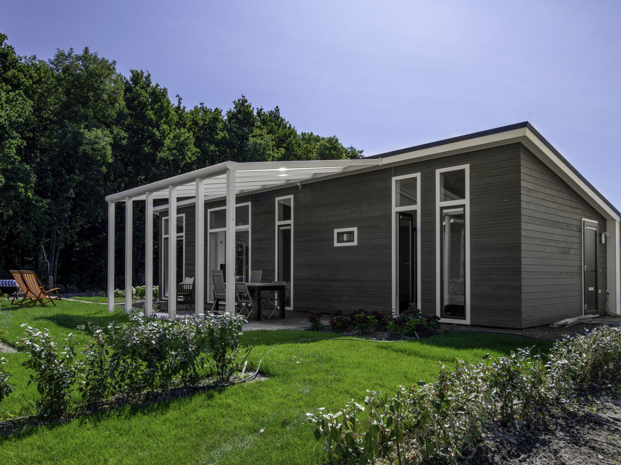 "Kleine Stern-huisnr. 101", 3-Zimmer-Haus 70 m2. Komfortabel eingerichtet: Eingang mit sep. WC. Wohn-/Esszimmer mit Esstisch und Flachbildschirm. Ausgang zur Terrasse. 2 Doppelzimmer, jedes Zimmer mit 2 Betten (80 cm, Länge 200 cm). Offene Küche (Geschirrspüler, 4 Induktionskochplatten, Wasserkocher, elektrische Kaffeemaschine, Kombinationsmikrowelle). Dusche. Terrasse. Terrassenmöbel, Liegestühle (2). Zur Verfügung: Internet (Wireless LAN, gratis). Parkplatz beim Haus. Bitte beachten: Nichtraucher-Haus. Rauchmelder.