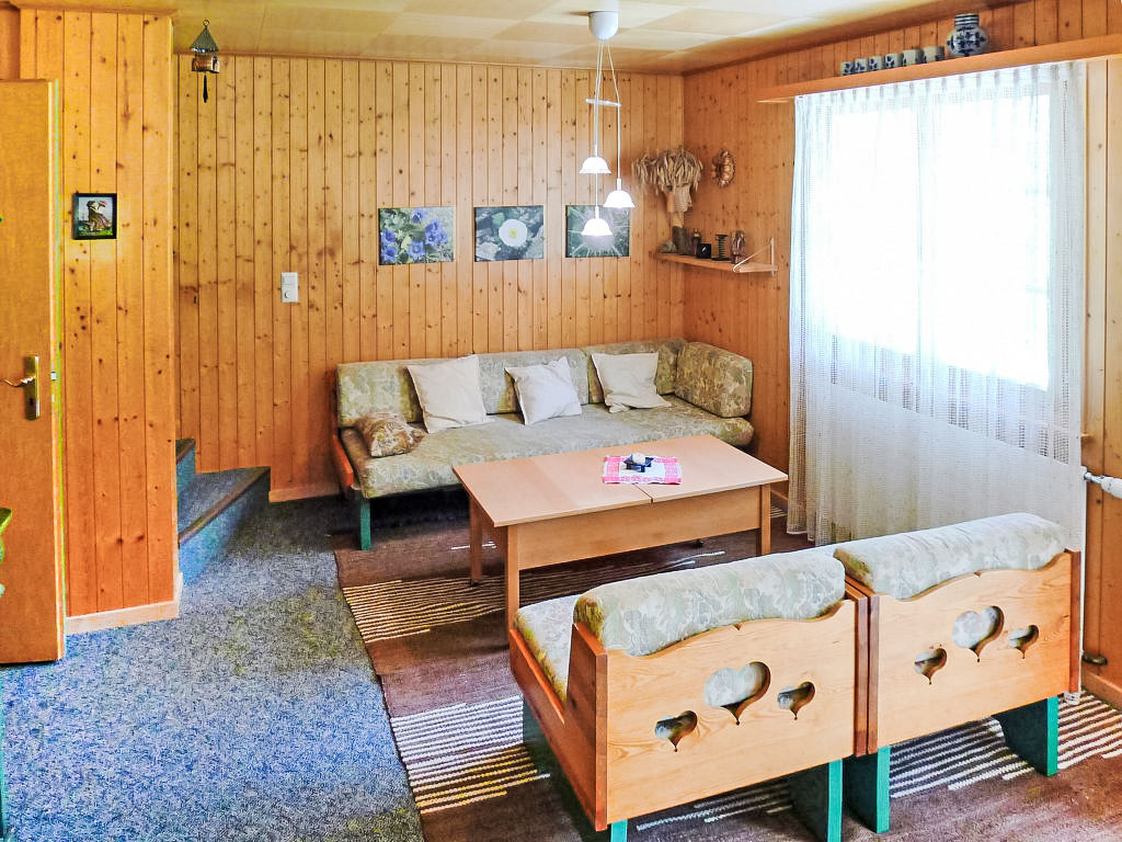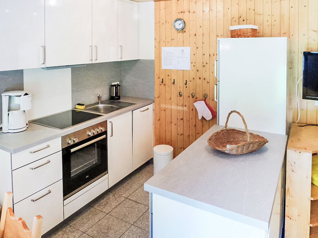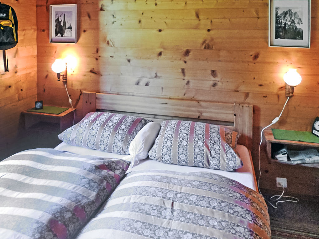 4-Zimmer-Chalet 75 m2. Zweckmässig und gemütlich eingerichtet: Wohn-/Esszimmer mit Bad/WC, Waschbecken und Kabel-TV (Flachbildschirm), Radio und DVD. Ausgang zur Terrasse. Offene Küche (Backofen, Geschirrspüler, 4 Glaskeramikherd Platten, Toaster, Fondue Set (Käse)). Sep. WC. Obergeschoss: 2 Zimmer, jedes Zimmer mit 1 Doppelbett. Ausgang zum Balkon, Richtung Süden und Richtung Osten. 1 Zimmer mit 1 x 2 Etagenbetten. Dusche/WC. Balkon 15 m2, Terrasse 12 m2. Terrassenmöbel, Gartengrill, Liegestühle (4). Schöne Sicht auf die Berge. Zur Verfügung: Waschmaschine, Babybett bis 2 Jahre. Internet (Wireless LAN, gratis). Parkplatz. Bitte beachten: Nichtraucher-Unterkunft. keine Haustiere erlaubt.