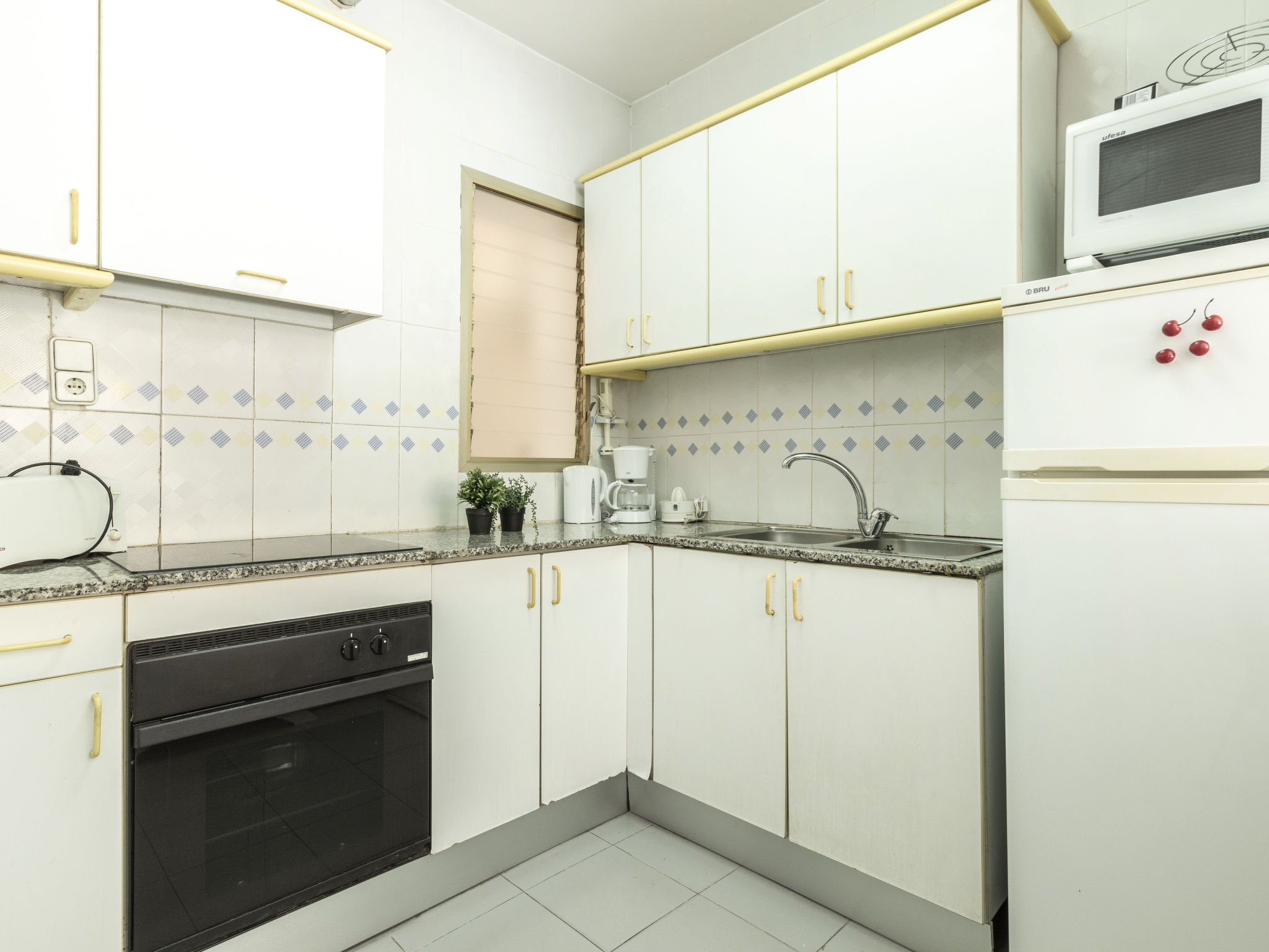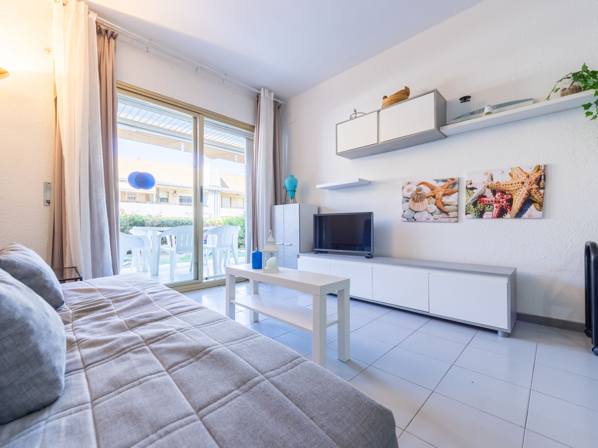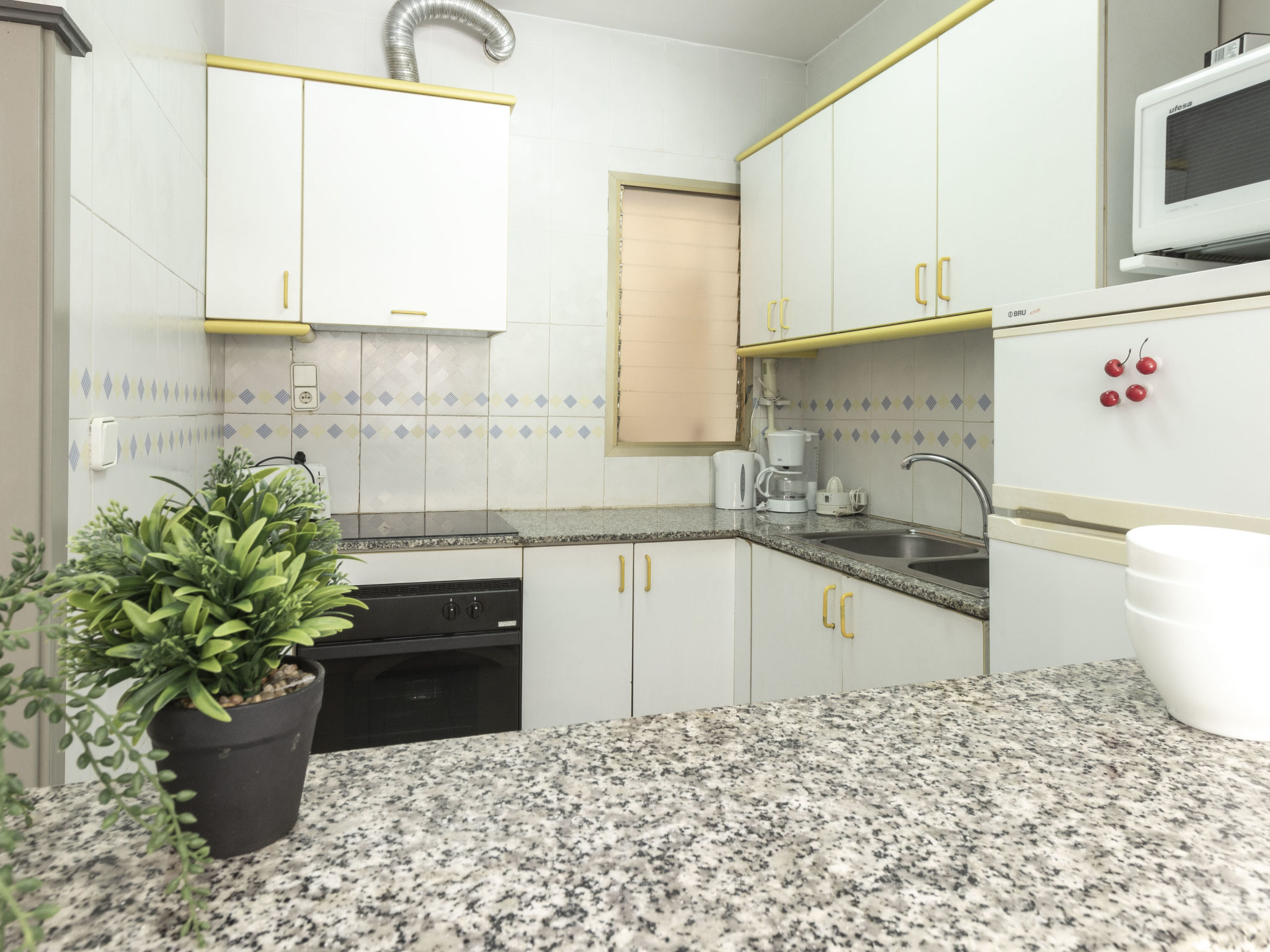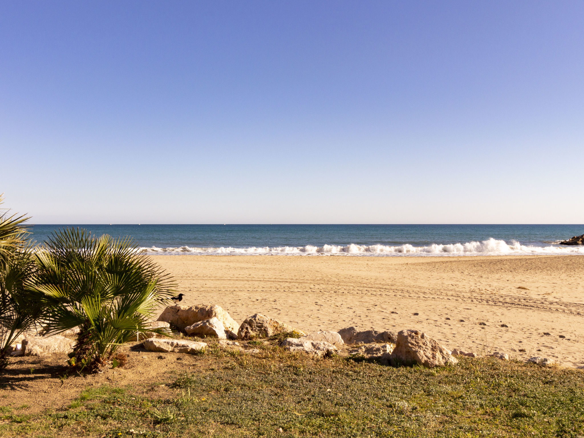 "Golf Sant Jordi", 3-Zimmer-Wohnung 51 m2, im Erdgeschoss. Zweckmässig und gemütlich eingerichtet: Wohn-/Esszimmer mit 1 Diwanbett, Digital-TV, Klimaanlage und Warmluftheizung. Ausgang zur Terrasse. 1 Zimmer mit 1 franz. Bett (150 cm, Länge 190 cm). 1 Zimmer mit 2 Betten (90 cm, Länge 190 cm). Offene Küche (Backofen, 3 Glaskeramikplatten, Toaster, Wasserkocher, Mikrowelle, elektrische Kaffeemaschine). Bad/WC. Keine Heizmöglichkeit. Terrasse. Terrassenmöbel, Liegestühle. Seitliche Sicht auf das Meer. Zur Verfügung: Waschmaschine, Bügeleisen, Haartrockner. Bitte beachten: Nichtraucher-Unterkunft. HUTT044435 // Reg. Nr.: ESFCTU000043031000188110000000000000000000HUTT0444353