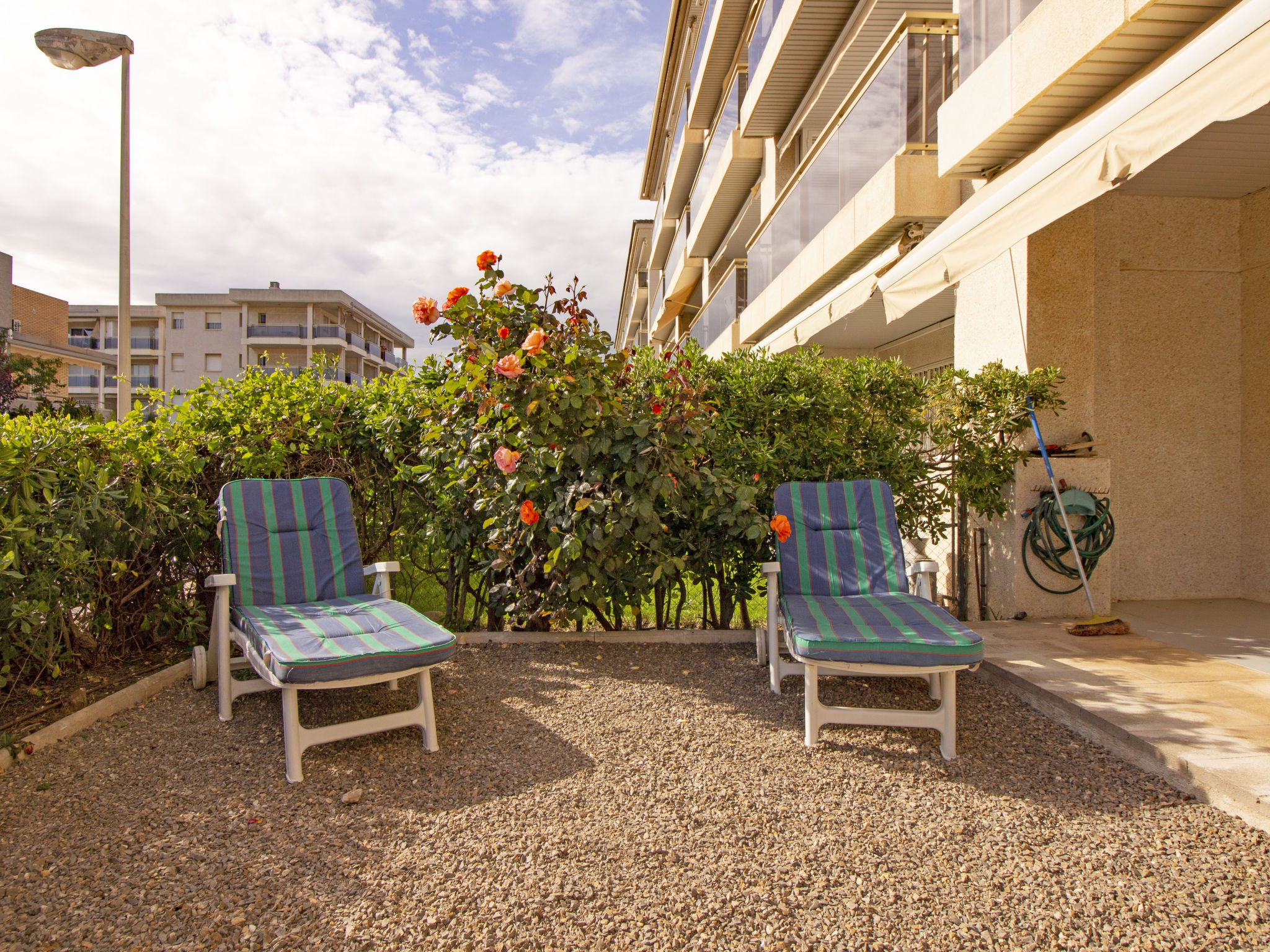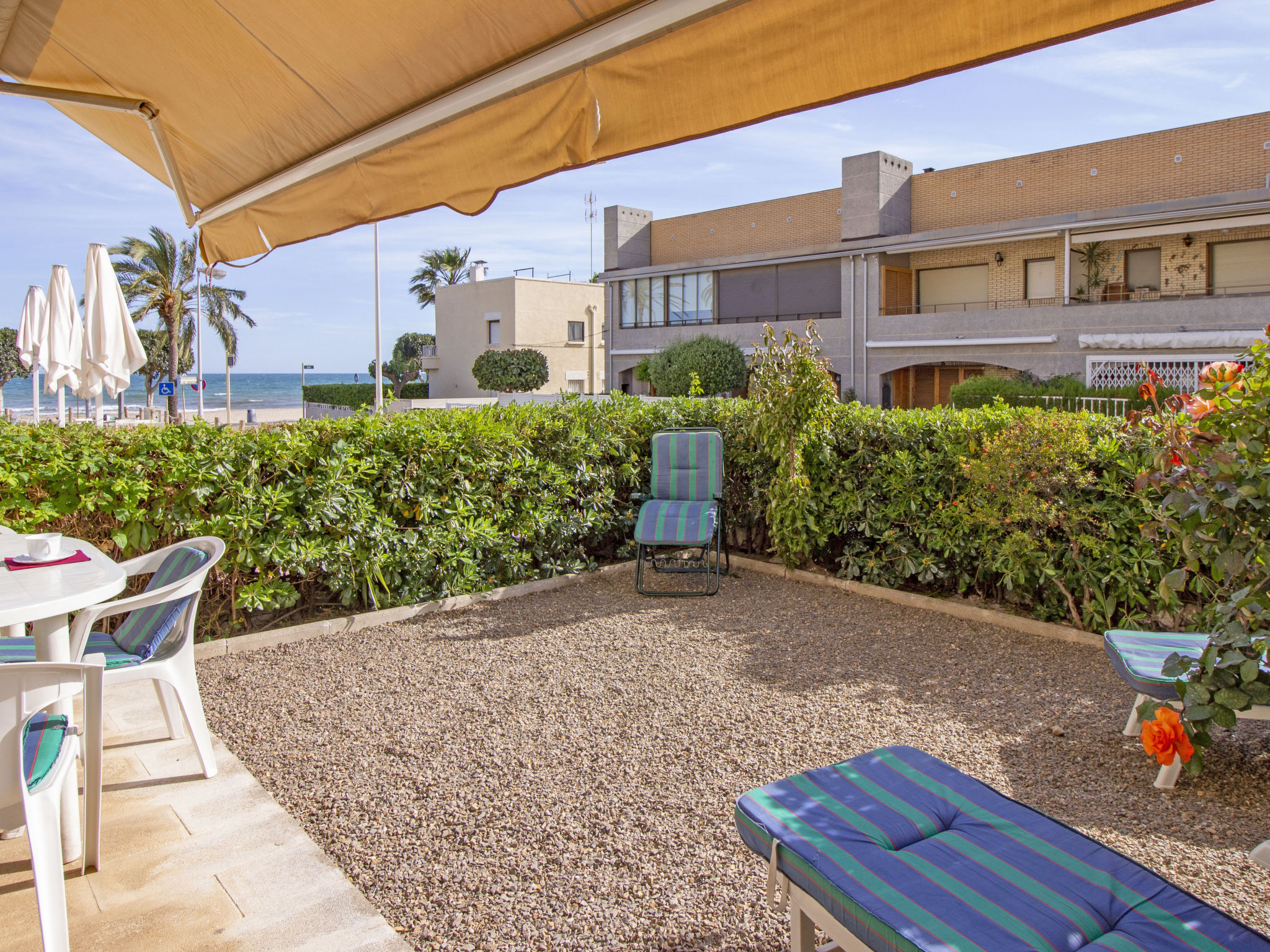 La Llosa 1 km von Cambrils: Gemütliches, komfortables Appartementhaus "Golf de Sant Jordi". Zentrale, sonnige Lage, 30 m vom Meer, 30 m vom Strand, in einer Sackgasse. Zur Mitbenutzung: grosser Garten, Schwimmbad (120 - 200 cm tief, saisonale Verfügbarkeit: 01.Jun. - 15.Sep. Öffnungszeiten Schwimmbad: 09:00-22:00). Aussendusche. Bushaltestelle "orquidies 36" 300 m. Nahe gelegene Sehenswürdigkeiten: Port Aventura / Ferrari Land, Jumpland, Acuopolis. Wandergebiete: La Mussara. Bitte beachten: Babyausstattung auf Anfrage (extra).
