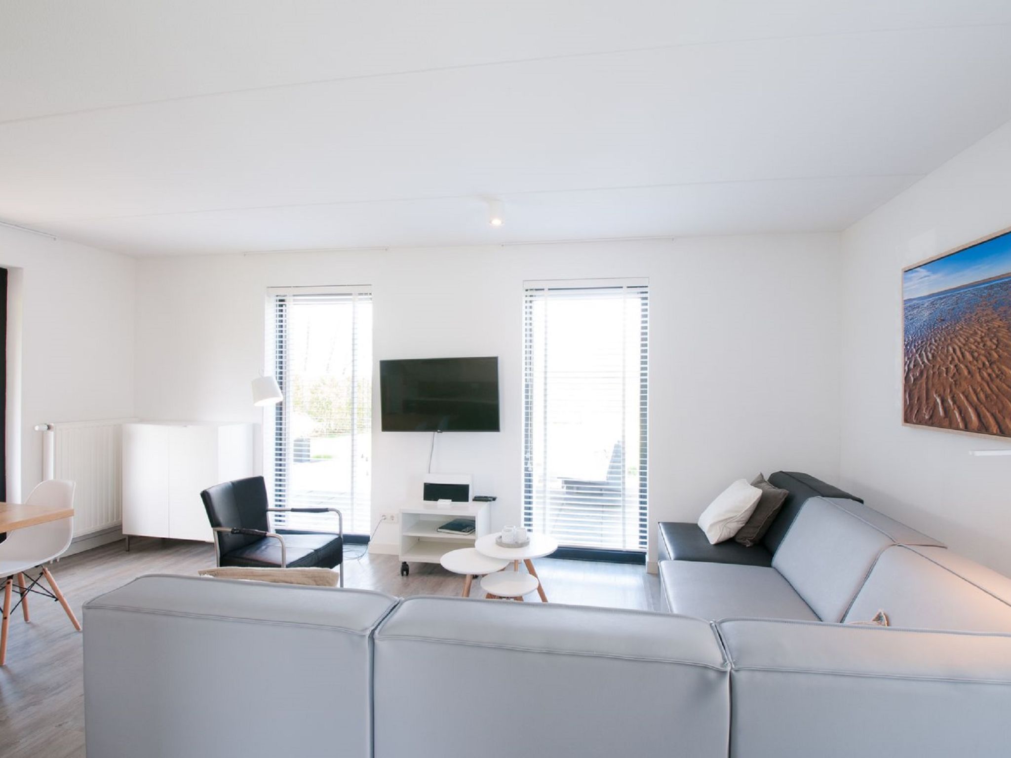 "Oesterdam 6", 4-Zimmer-Villa 128 m2 auf 2 Stockwerken. Komfortabel eingerichtet: offenes Wohnzimmer mit Esstisch, TV und Internationale TV-Sender (Flachbildschirm). Ausgang zum Garten. 1 Doppelzimmer mit 2 Betten. Offene Küche (4 Kochplatten, Geschirrspüler, Wasserkocher, elektrische Kaffeemaschine). Dusche, sep. WC. Obergeschoss: 2 abgeschrägte Doppelzimmer, jedes Zimmer mit 2 Betten. Bad/Dusche/WC. Terrassenmöbel. Zur Verfügung: Waschmaschine. Internet (Wireless LAN, gratis). Parkplatz (2 Autos) beim Haus. Bitte beachten: Nichtraucher-Haus.