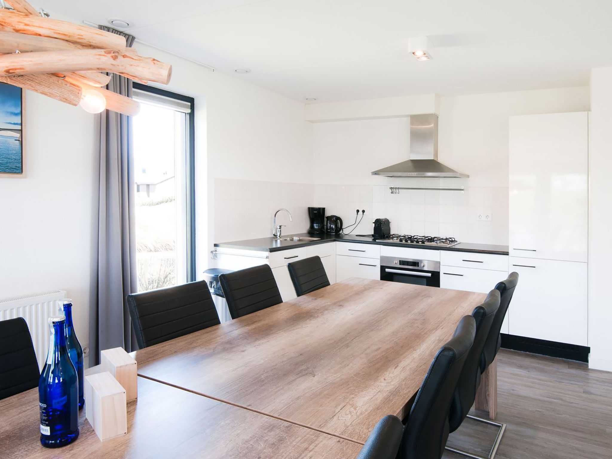 "Oesterdam 12", 7-Zimmer-Haus 104 m2 auf 2 Stockwerken. Komfortabel eingerichtet: Eingang mit sep. WC. Wohn-/Esszimmer mit Flachbildschirm. Ausgang zur Terrasse. 2 Doppelzimmer, jedes Zimmer mit 2 Betten. Offene Küche (5 Kochplatten, Geschirrspüler, Wasserkocher, elektrische Kaffeemaschine, Kombinationsmikrowelle) mit Esstisch. Dusche. Obergeschoss: 4 abgeschrägte Doppelzimmer, jedes Zimmer mit 2 Betten. Bad/Dusche/WC, Doppelwaschbecken. Terrasse. Terrassenmöbel. Zur Verfügung: Internet (Wireless LAN). Parkplatz (3 Autos) beim Haus. Bitte beachten: Nichtraucher-Haus.