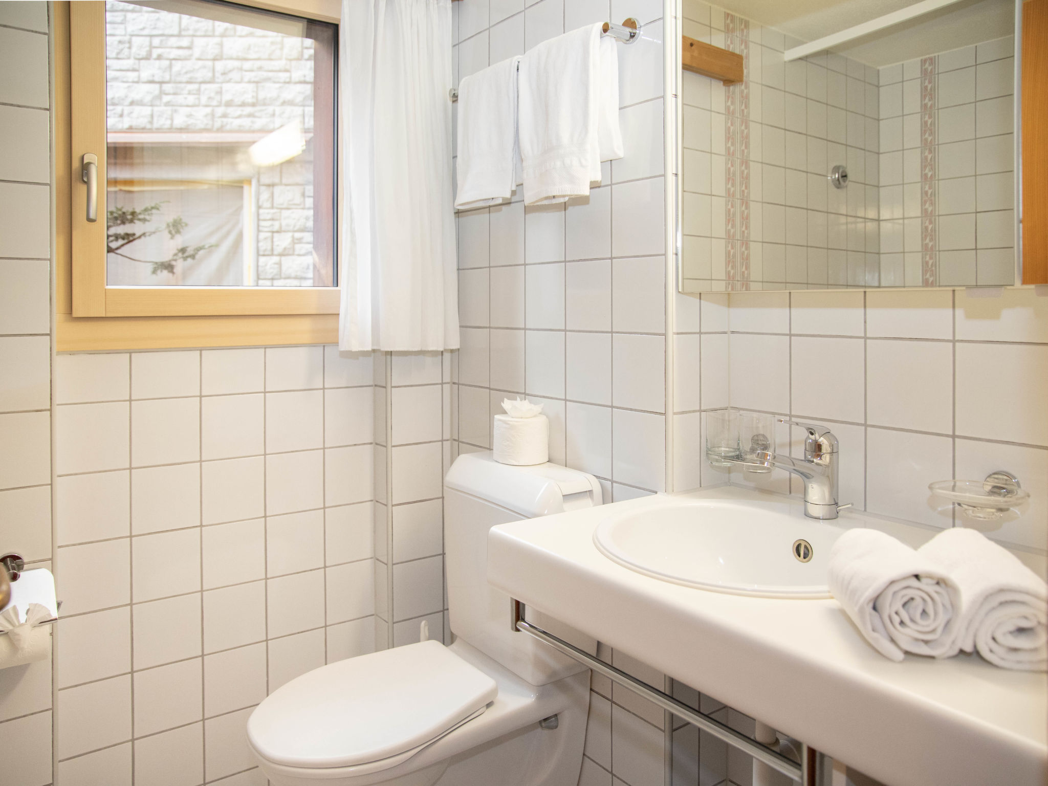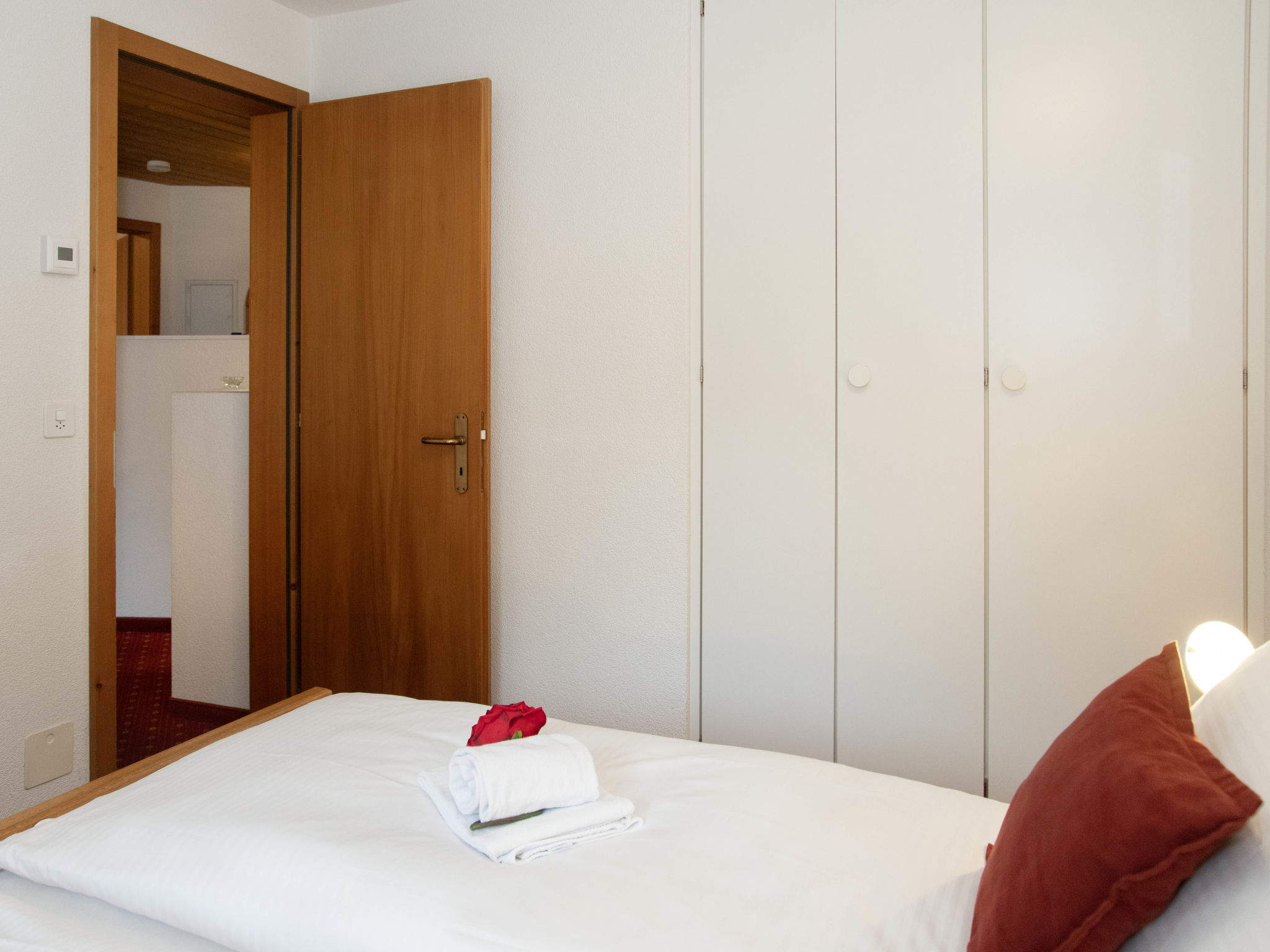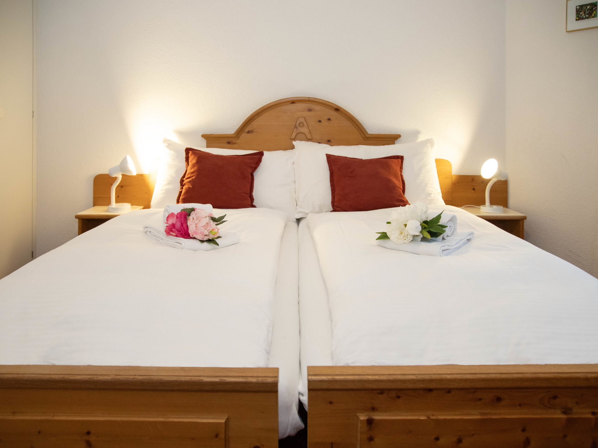 3-Zimmer-Wohnung 57 m2 im 2. Stock, Südlage. Wohn-/Esszimmer mit Kabel-TV (Flachbildschirm). 2 Doppelzimmer. Offene Küche (Backofen, Geschirrspüler, 4 Glaskeramikherd Platten, Toaster, Wasserkocher, elektrische Kaffeemaschine). Bad/WC. Balkon, Südlage. Terrassenmöbel. Schöne Sicht auf die Berge. Zur Verfügung: Haartrockner. Internet (Wireless LAN, gratis). Bitte beachten: Nichtraucher-Unterkunft. Maximal 1 Haustier/Hund erlaubt. Ein Fondue Set (Fleisch oder Käse) sowie ein Raclette Ofen kann an der Rezeption ausgeliehen werden.