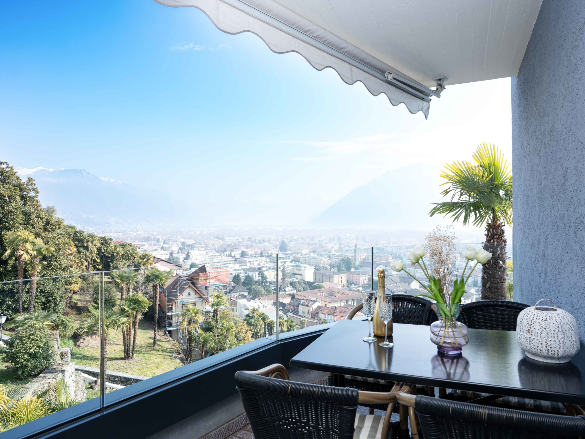 Ascona: Modernes Haus. Oberhalb von Ascona, im Ort, 400 m vom Zentrum, im Bezirk Lago Maggiore, ruhige Lage am Hang, 400 m vom See. Im Hause: Fahrstuhl. Brötchenservice. Parkplatz (beschränkte Anzahl, extra) auf dem Grundstück, Gemeinschaftsgarage (extra). Einkaufsgeschäft, Restaurant 400 m, Bahnstation "Locarno-Muralto" 4 km, Strandbad 1 km. Golfplatz (18 Loch) 1 km, Tennis 1 km. Bitte beachten: geeignet für Familien, geeignet für Senioren. In diesem Haus sind weitere Ferienwohnungen mietbar. Ein öffentlicher Parkplatz ist über eine steile Treppe innert 5 Gehminuten erreichbar. Ein weiterer öffentlicher Parkplatz befindet sich im Zentrum. Minigolf 1 km.
