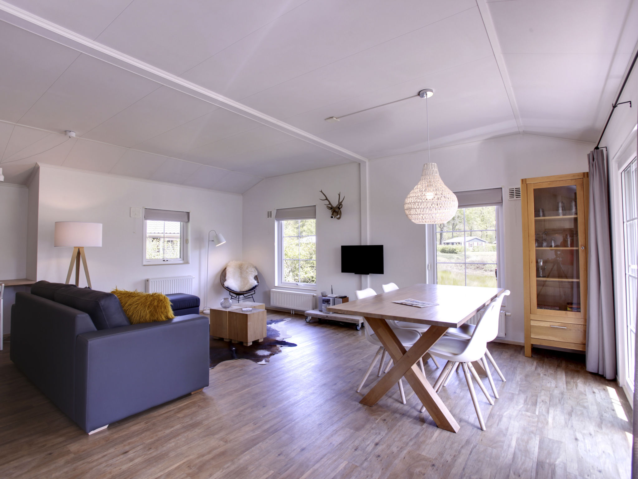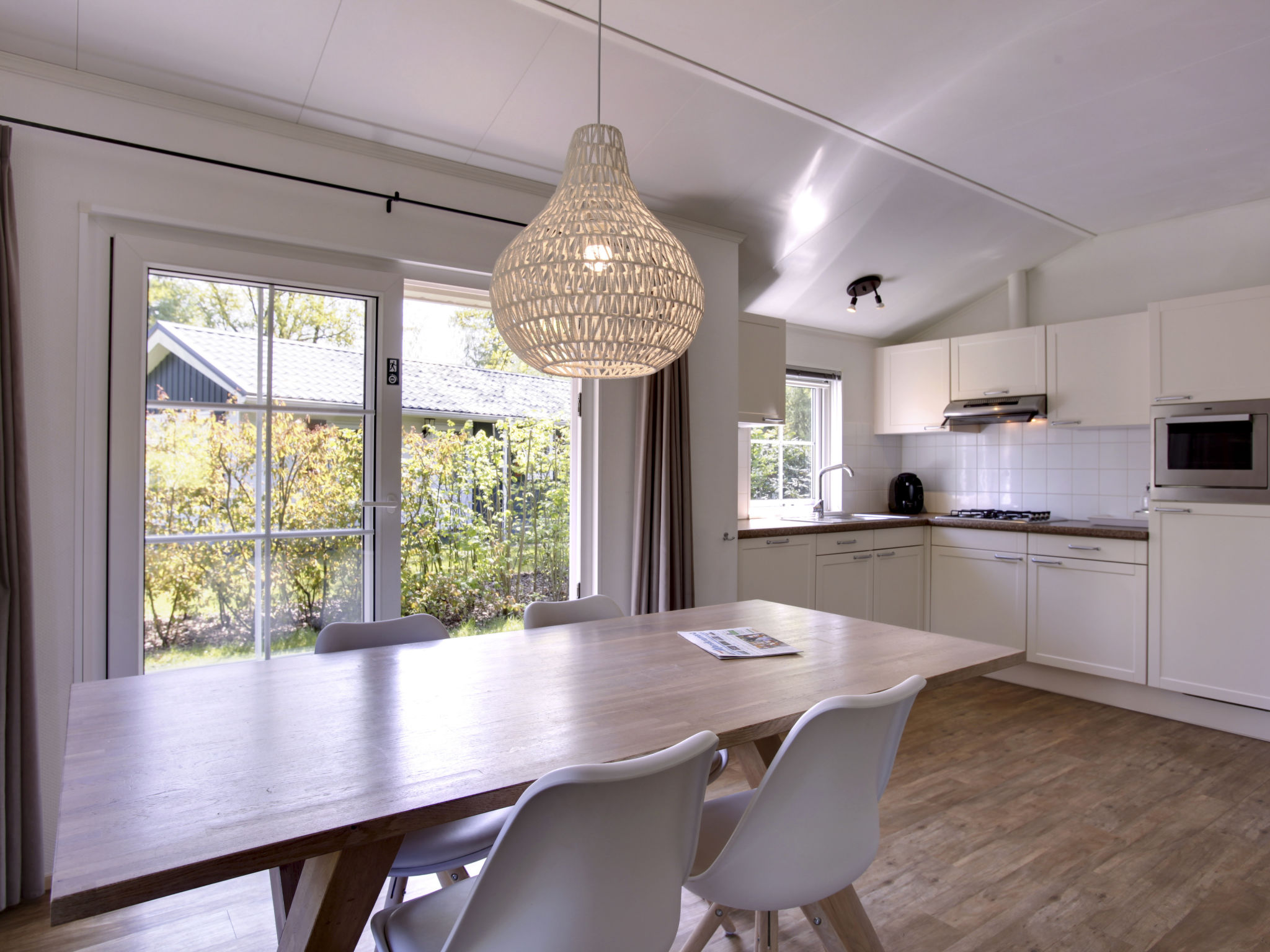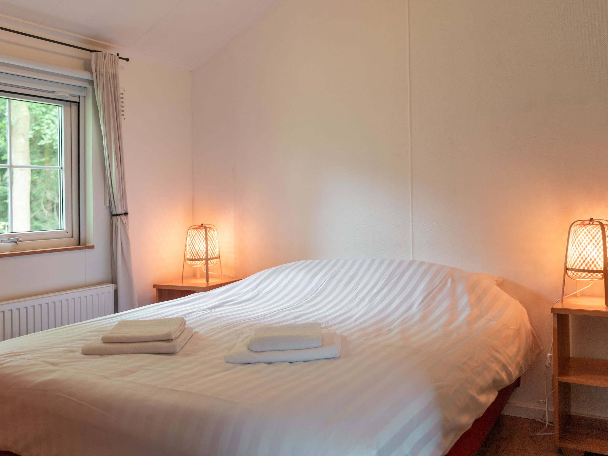 "4-persoons bos", 3-Zimmer-Chalet 55 m2. Komfortabel eingerichtet: Eingang. Wohn-/Esszimmer mit Esstisch, Flachbildschirm und CD. Ausgang zur Terrasse. 2 Doppelzimmer, jedes Zimmer mit 2 Betten. Offene Küche (4 Kochplatten, Geschirrspüler, elektrische Kaffeemaschine, Kombinationsmikrowelle). Dusche/WC. Heizung. Terrasse. Terrassenmöbel. Zur Verfügung: Internet (Wireless LAN, gratis). Bitte beachten: Nichtraucher-Haus. Rauchmelder. Haustier auf Anfrage.