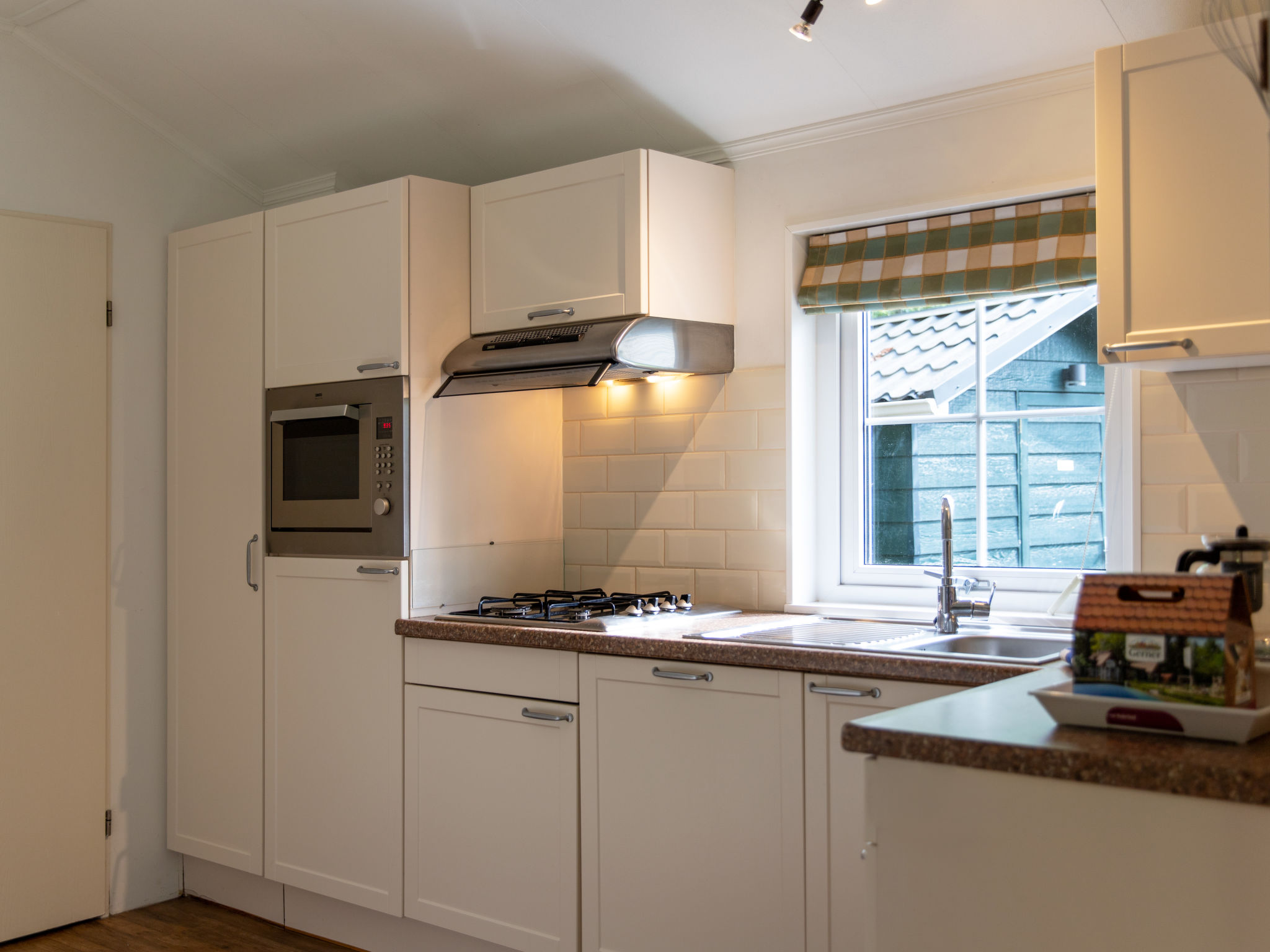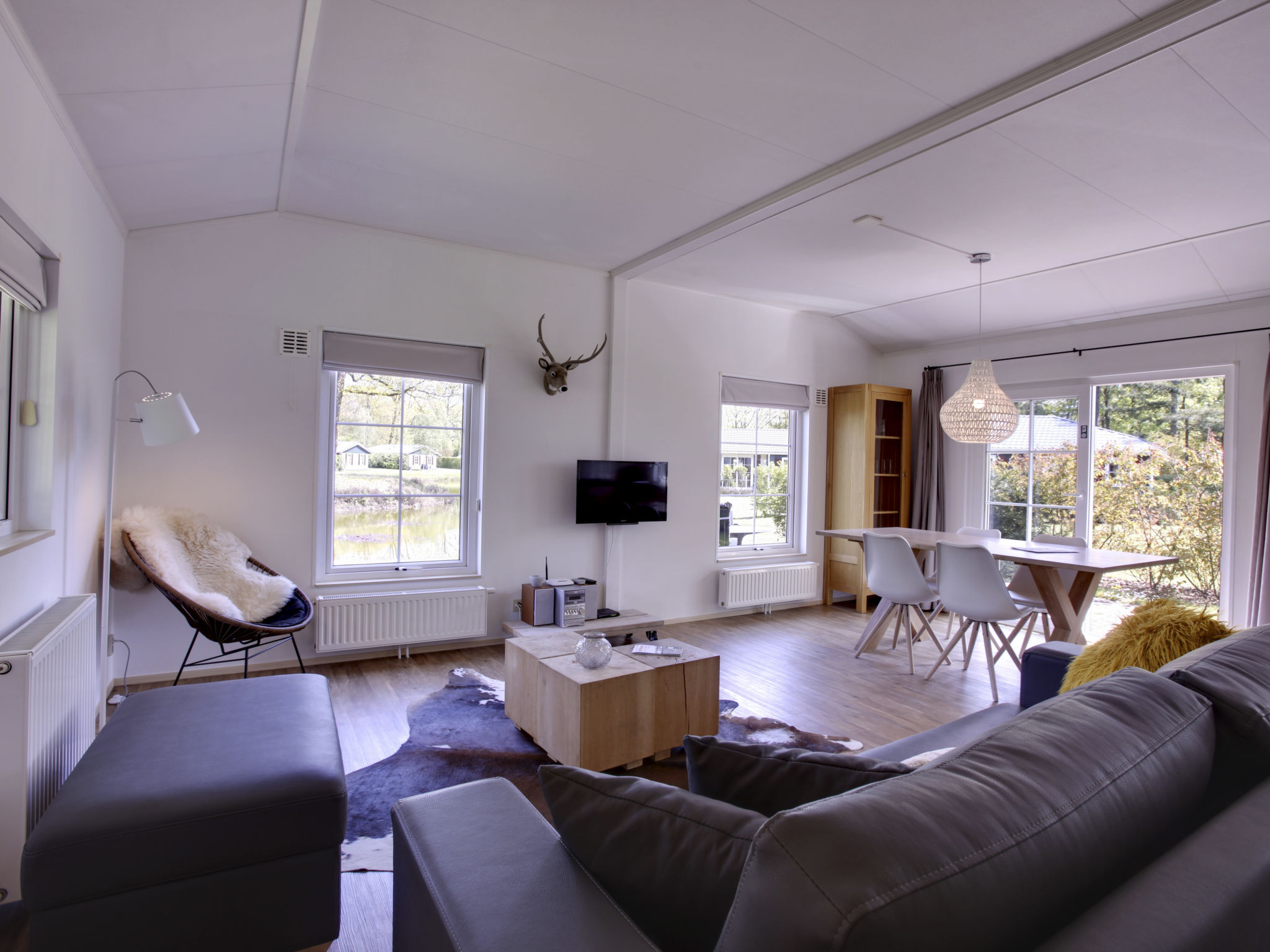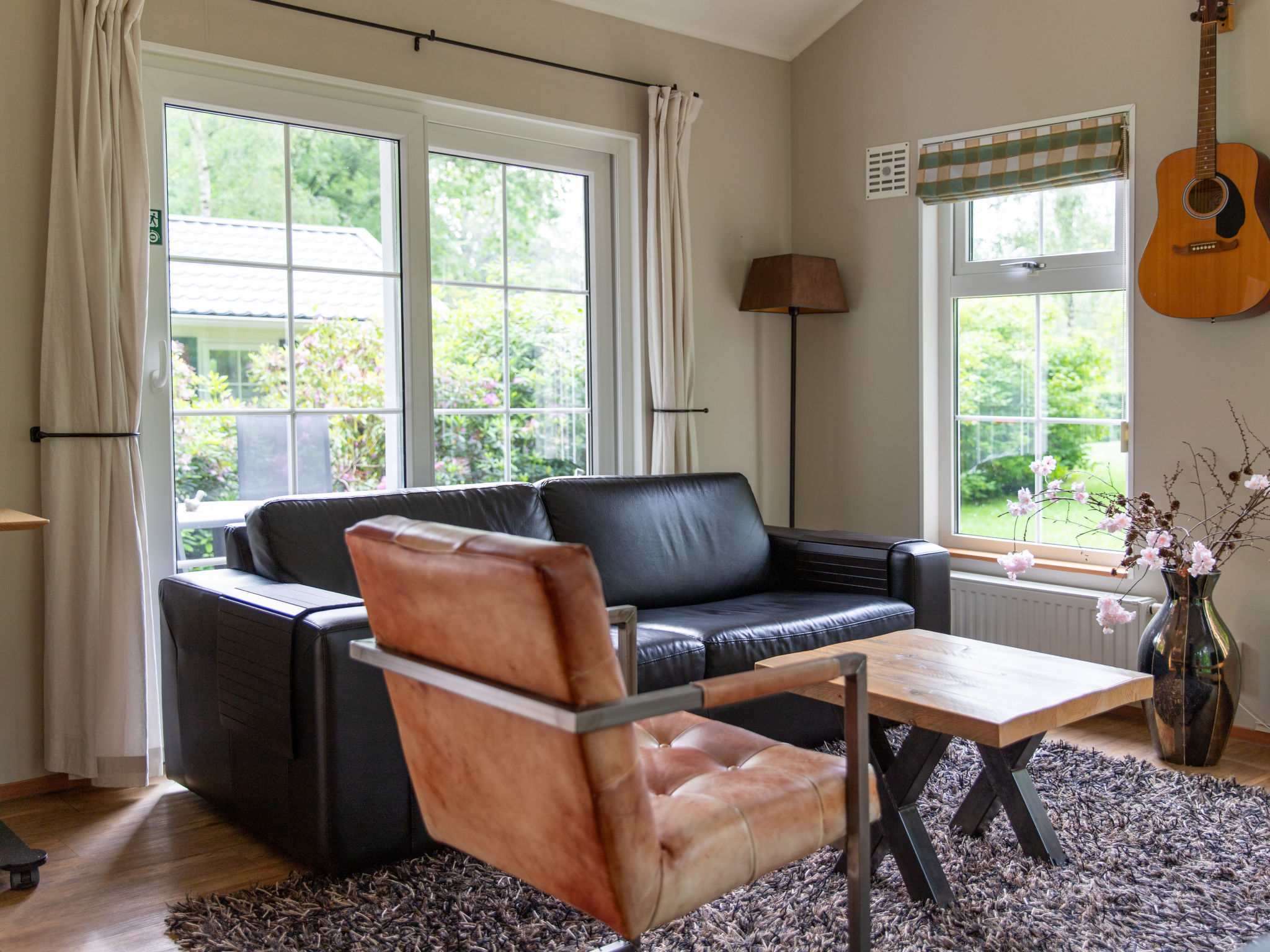 "4-persoons bos", 3-Zimmer-Chalet 55 m2. Komfortabel eingerichtet: Eingang. Wohn-/Esszimmer mit Esstisch, Flachbildschirm und CD. Ausgang zur Terrasse. 2 Doppelzimmer, jedes Zimmer mit 2 Betten. Offene Küche (4 Kochplatten, Geschirrspüler, elektrische Kaffeemaschine, Kombinationsmikrowelle). Dusche/WC. Heizung. Terrasse. Terrassenmöbel. Zur Verfügung: Internet (Wireless LAN, gratis). Bitte beachten: Nichtraucher-Haus. Rauchmelder. Haustier auf Anfrage.