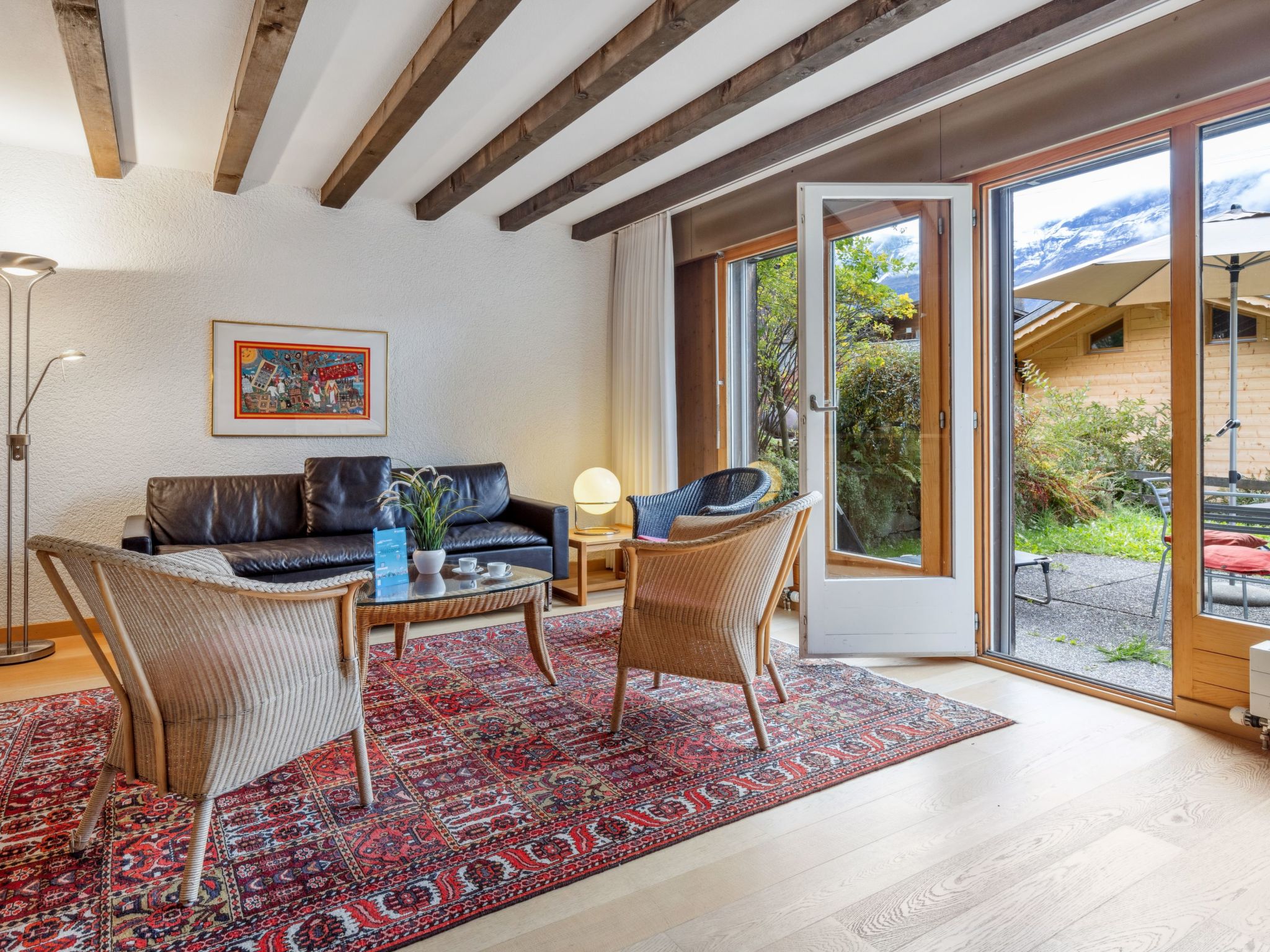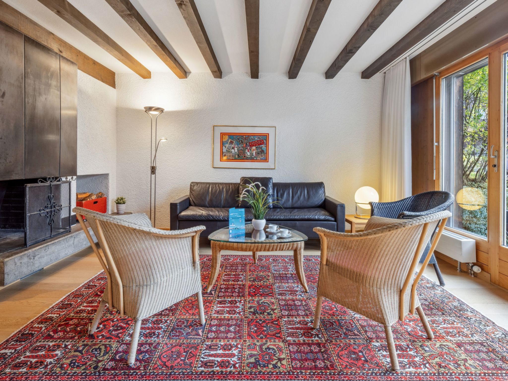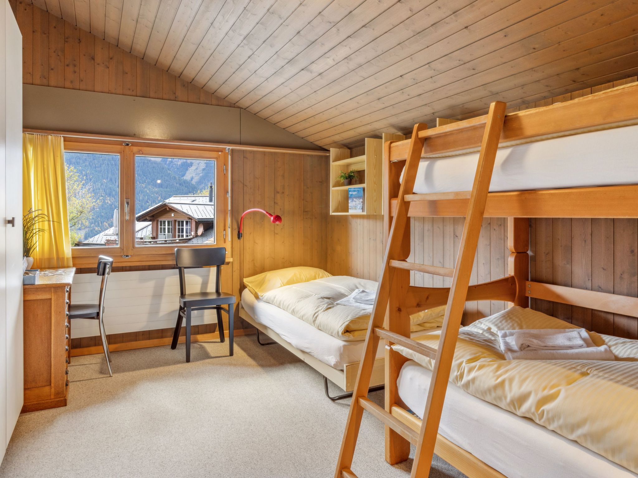 4-Zimmer-Wohnung 90 m2 auf 2 Stockwerken. Geräumig und hell, teilweise abgeschrägt, komfortabel und gemütlich eingerichtet: Wohnzimmer mit offenem Kamin, Kabel-TV, Radio, CD und DVD. Wohnküche (Backofen, Geschirrspüler, 4 Glaskeramikherd Platten, Toaster, Wasserkocher, Mikrowelle, elektrische Kaffeemaschine, Kapseln für die Kaffeemaschine (Nespresso) extra, Racletteofen, Fondue Set (Käse)). Sep. WC. Obergeschoss: 1 Zimmer mit 1 Doppelbett (2 x 90 cm, Länge 200 cm). 1 Zimmer mit 2 Betten (90 cm, Länge 200 cm). 1 Zimmer mit 1 Bett (90 cm, Länge 190 cm), 1 x 2 Etagenbetten (90 cm, Länge 190 cm). Bad/WC. Grosser Gartensitzplatz. Terrassenmöbel. Sehr schöne Sicht auf die Berge. Zur Verfügung: Haartrockner, Holz (extra). Internet (Wireless LAN). Bitte beachten: geeignet für Familien. Nichtraucher-Unterkunft. 1 Haustier/Hund erlaubt.