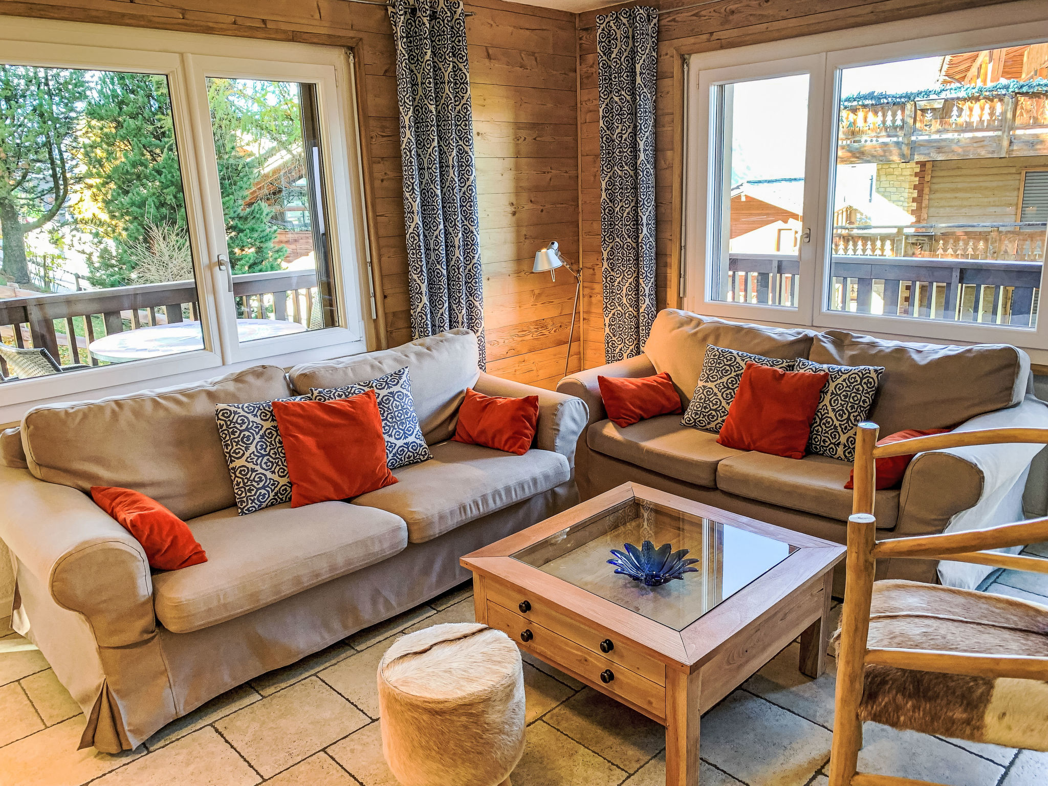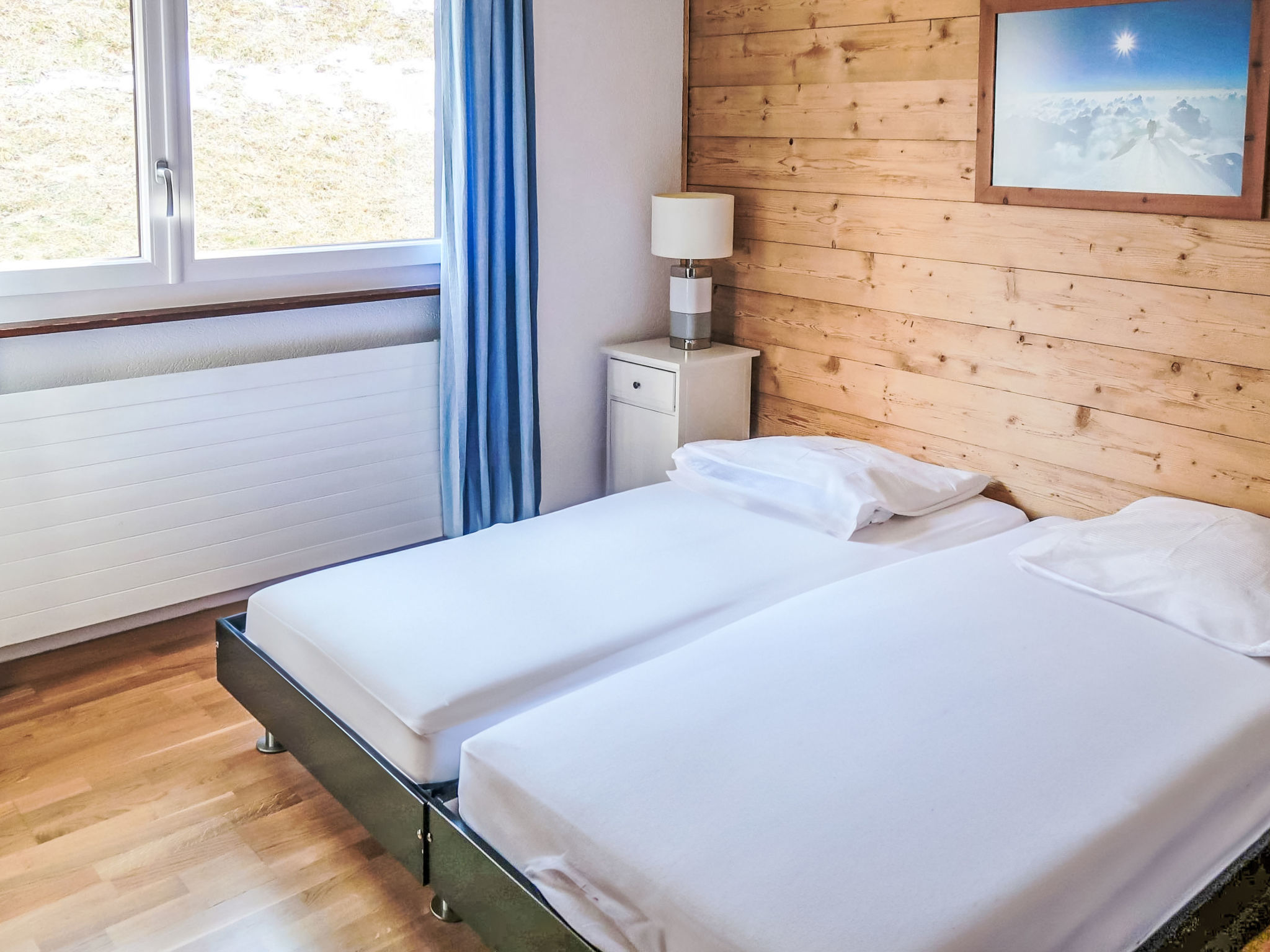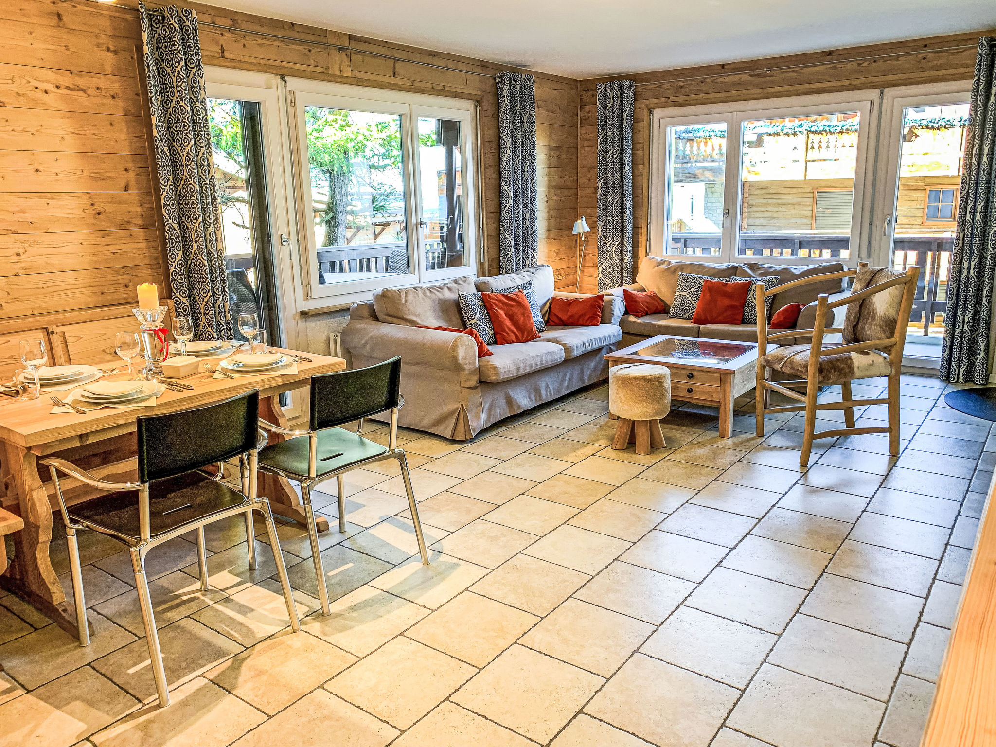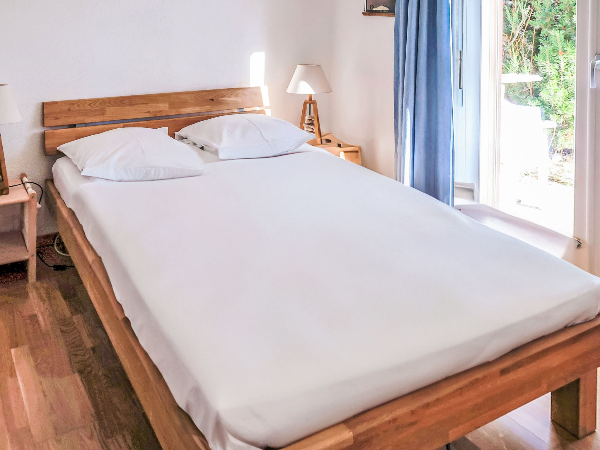 "Eden Roc 53", 3-Zimmer-Wohnung 73 m2 im 1. Stock. Wohn-/Esszimmer mit offenem Kamin, Kabel-TV und DVD. Ausgang zum Balkon. 1 Zimmer mit 1 Doppelbett. 1 Zimmer mit 2 Betten (90 cm, Länge 190 cm). Ausgang zur Terrasse. Küche (Backofen, Geschirrspüler, 4 Glaskeramikherd Platten, elektrische Kaffeemaschine, Kapseln für die Kaffeemaschine (Nespresso) extra, Racletteofen, Fondue Set (Chinoise, Käse)). Bad/WC, Dusche/WC. Balkon, Nordlage und Westlage, Terrasse 27 m2, Südlage. Terrassenmöbel, Gartengrill (mobil). Zur Verfügung: Kinderhochstuhl, Babybett. Internet (Wireless LAN, gratis). Bitte beachten: Nichtraucher-Unterkunft.