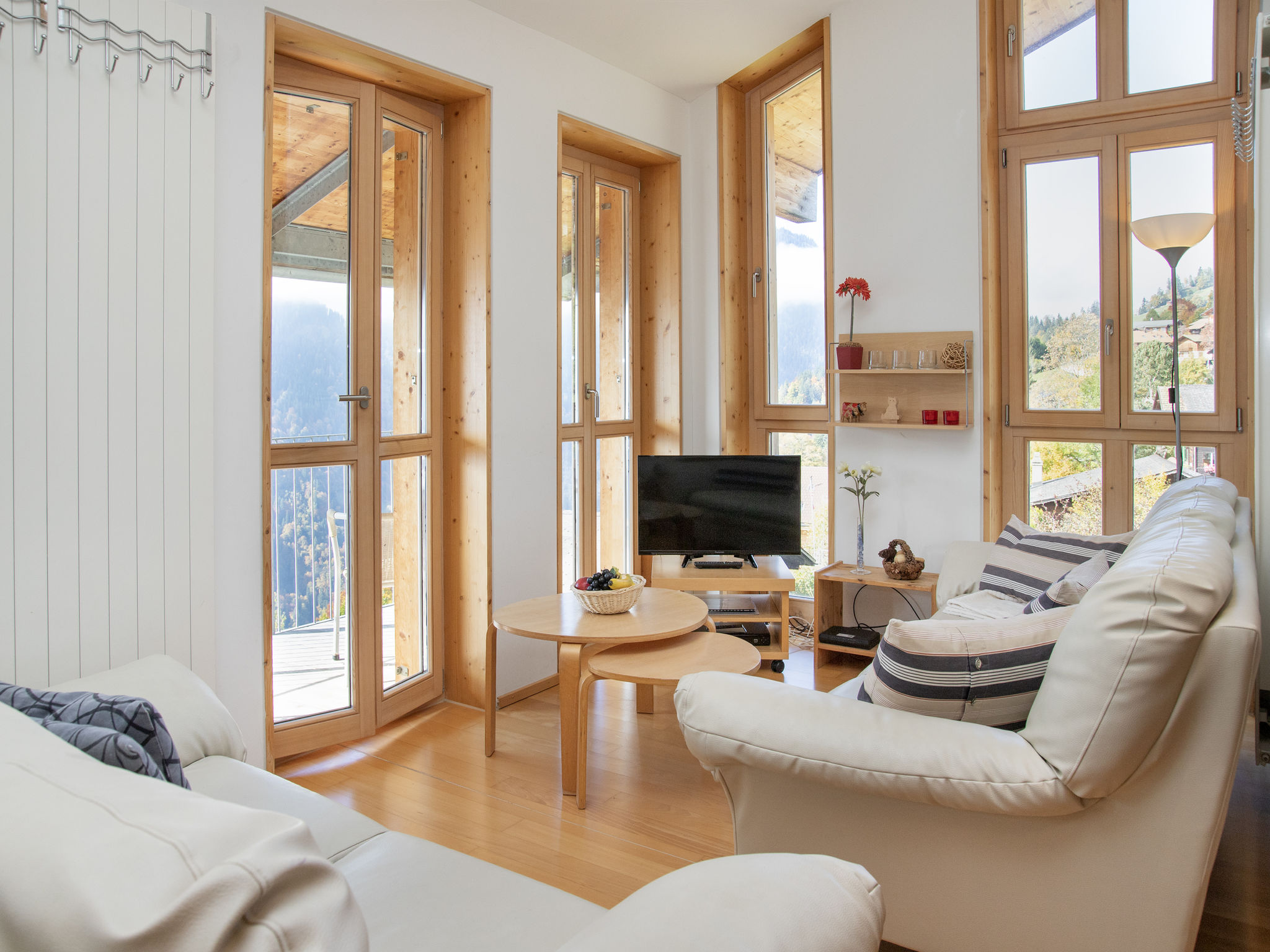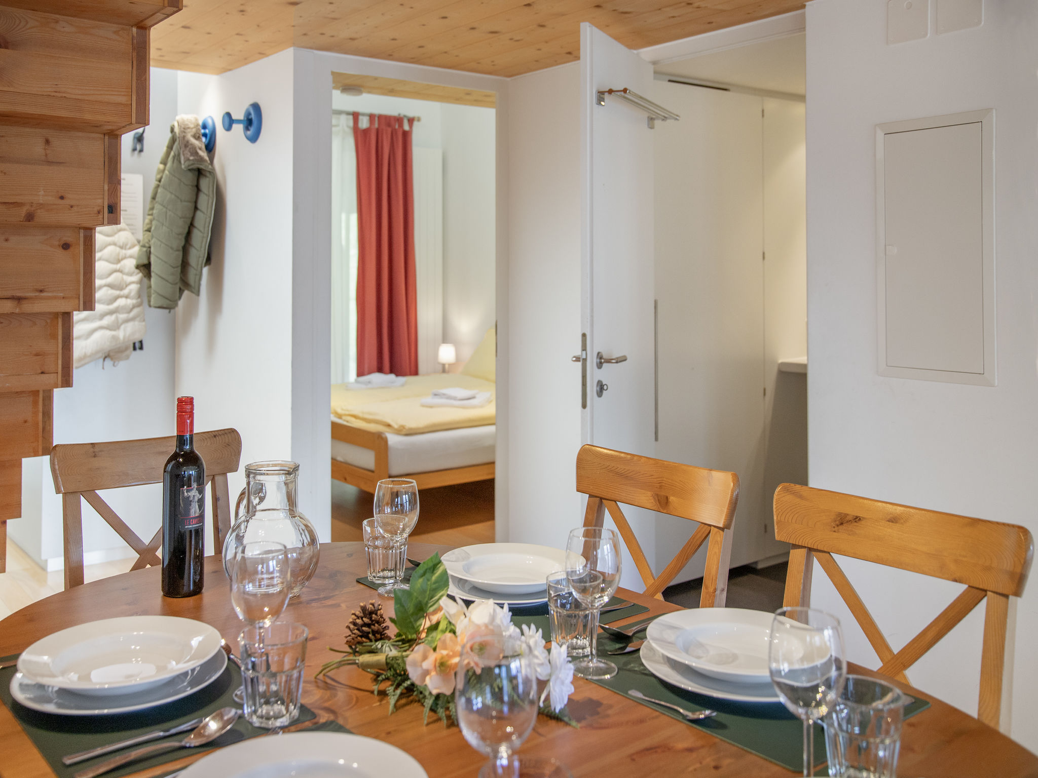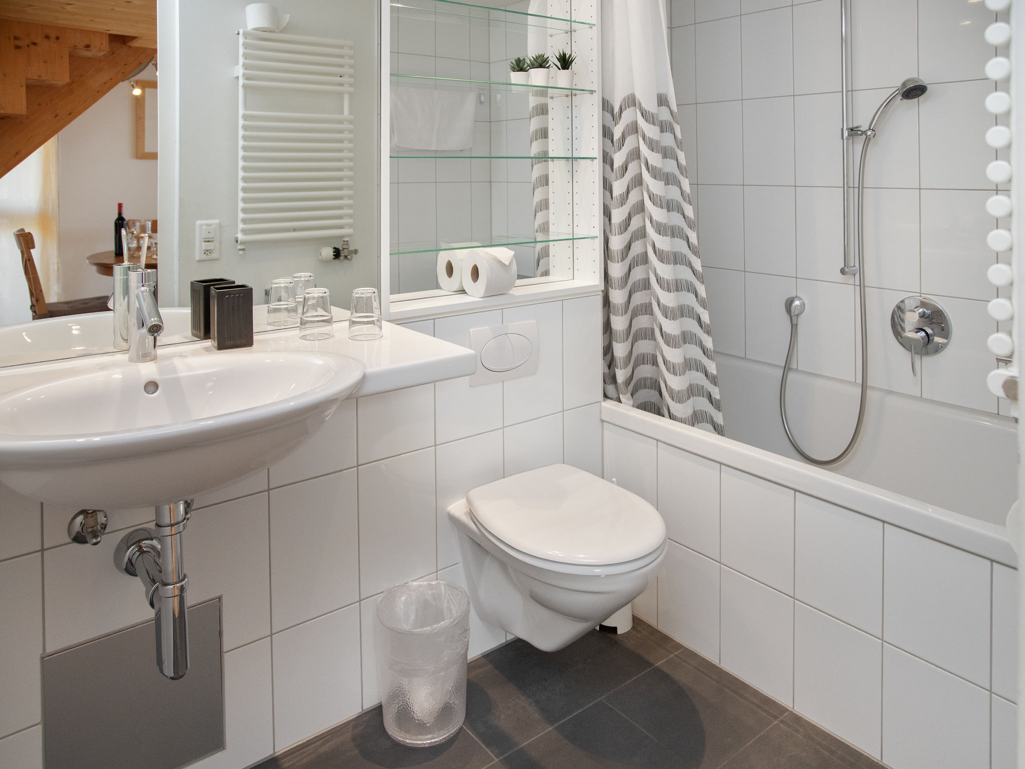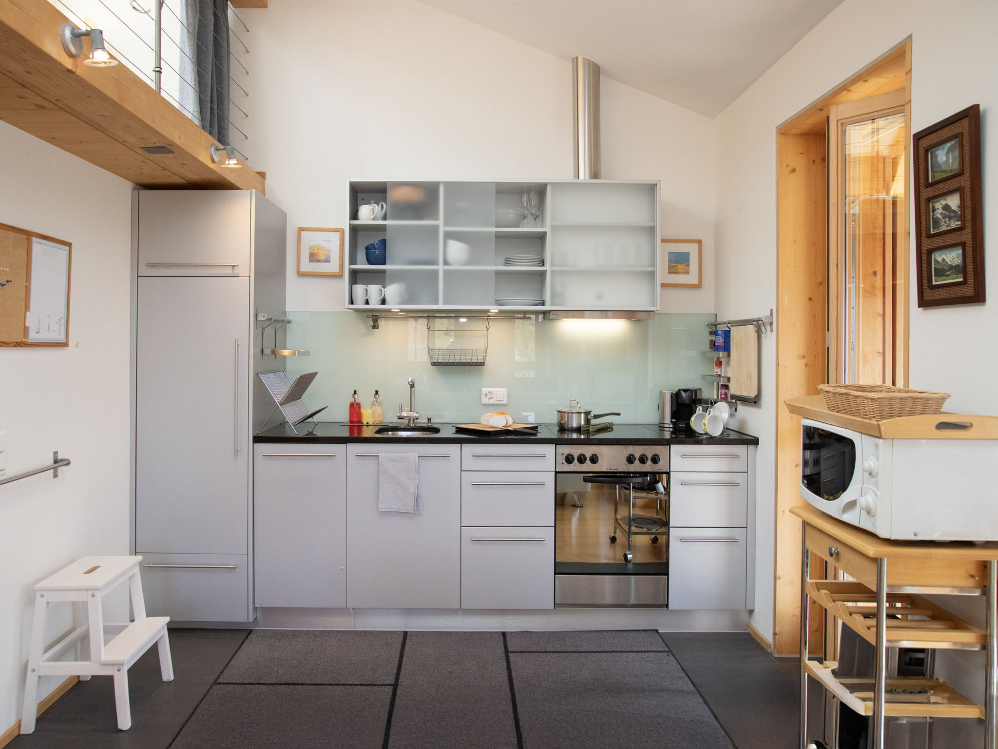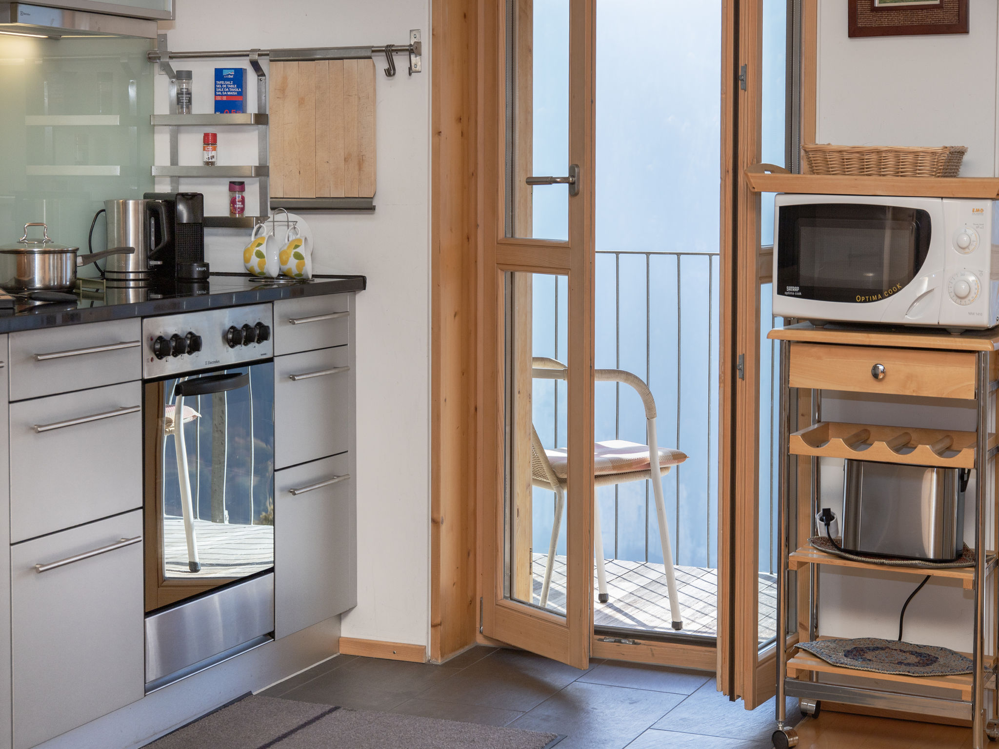 "Apt. No.5", 2-Zimmer-Maisonette-Wohnung 70 m2 auf 2 Stockwerken. Geräumig und hell, komfortabel und geschmackvoll eingerichtet: Wohn-/Esszimmer mit Esstisch, Kabel-TV und DVD. 1 Zimmer mit 2 Betten (90 cm, Länge 200 cm). Offene Küche (Backofen, Geschirrspüler, 4 Glaskeramikherd Platten, Toaster, Wasserkocher, Mikrowelle, elektrische Kaffeemaschine, Kapseln für die Kaffeemaschine (Nespresso) extra, Fondue Set (Käse)). Bad/WC. Obergeschoss: Galerie mit 3 Betten (90 cm, Länge 200 cm). Balkon. Herrliche Sicht auf die Berge und das Tal. Zur Verfügung: Waschmaschine, Wäschetrockner, Haartrockner. Internet (Wireless LAN, gratis). Bitte beachten: Nichtraucher-Unterkunft.