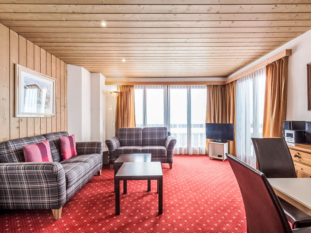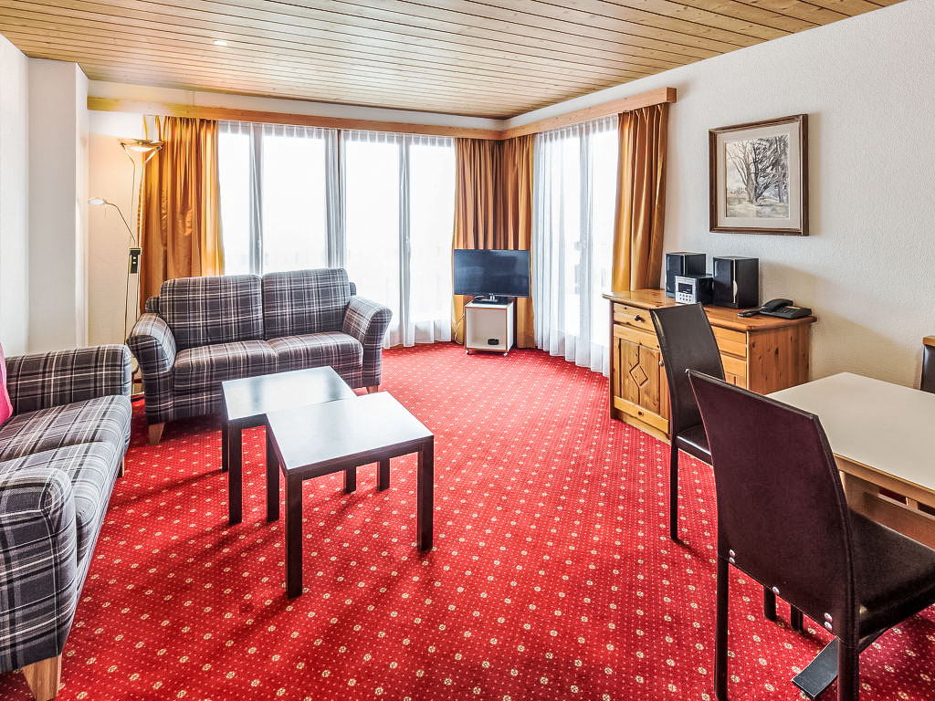 3-Zimmer-Wohnung 64 m2 im 4. Stock, Südostlage. Wohn-/Esszimmer mit Kabel-TV (Flachbildschirm). 2 Doppelzimmer. Offene Küche (Backofen, Geschirrspüler, Toaster, Wasserkocher, elektrische Kaffeemaschine). Bad/WC, sep. WC. Balkon, Südlage und Ostlage. Terrassenmöbel. Sicht auf die Berge. Zur Verfügung: Haartrockner. Internet (Wireless LAN, gratis). Bitte beachten: Nichtraucher-Unterkunft. Maximal 1 Haustier/Hund erlaubt. Ein Fondue Set (Fleisch oder Käse) sowie ein Raclette Ofen kann an der Rezeption ausgeliehen werden.
