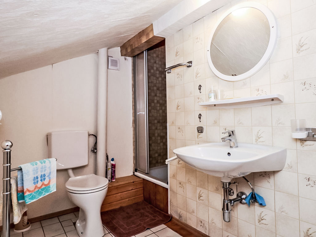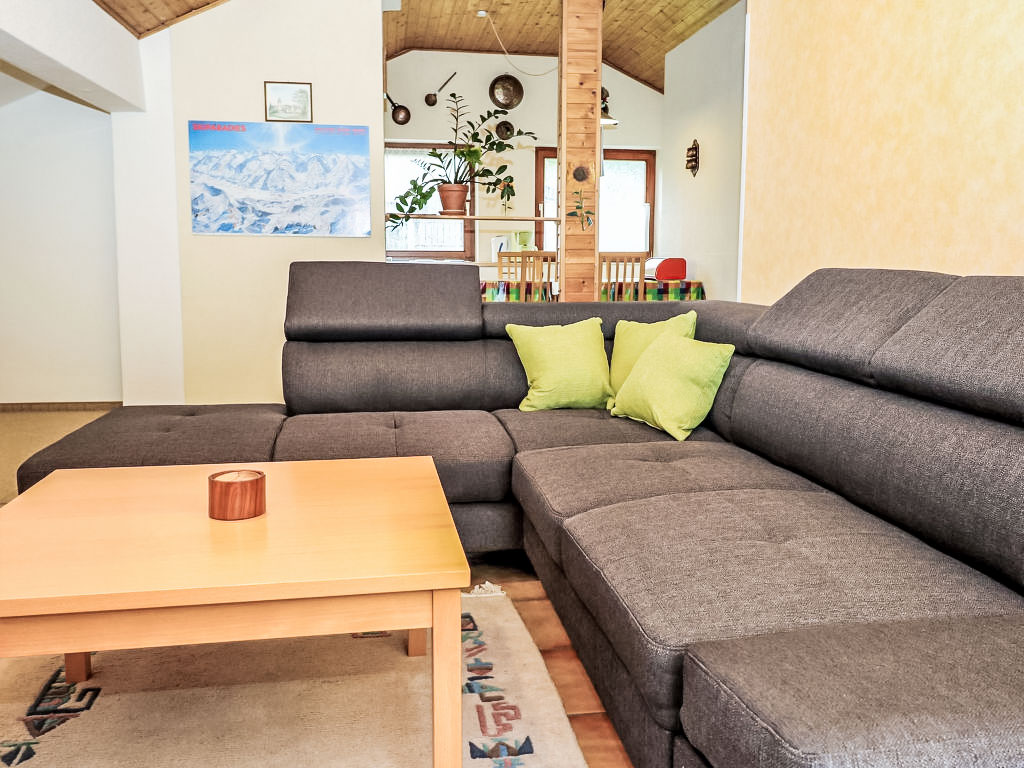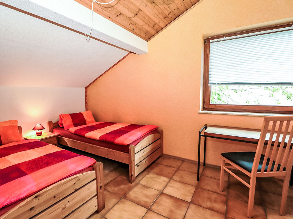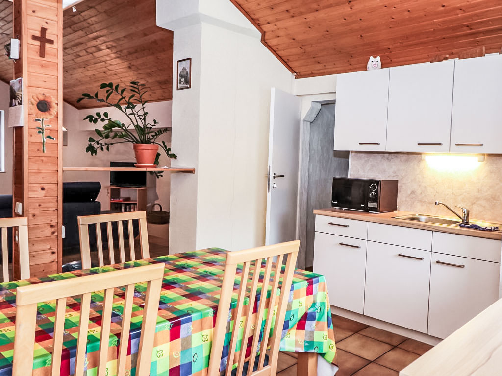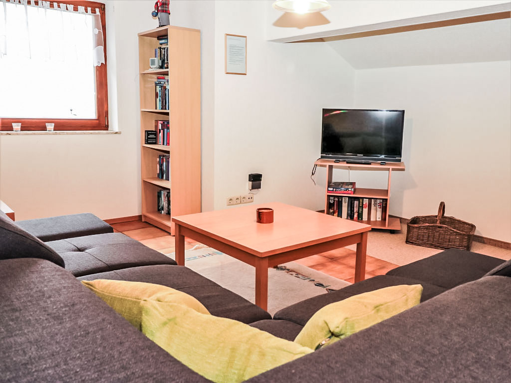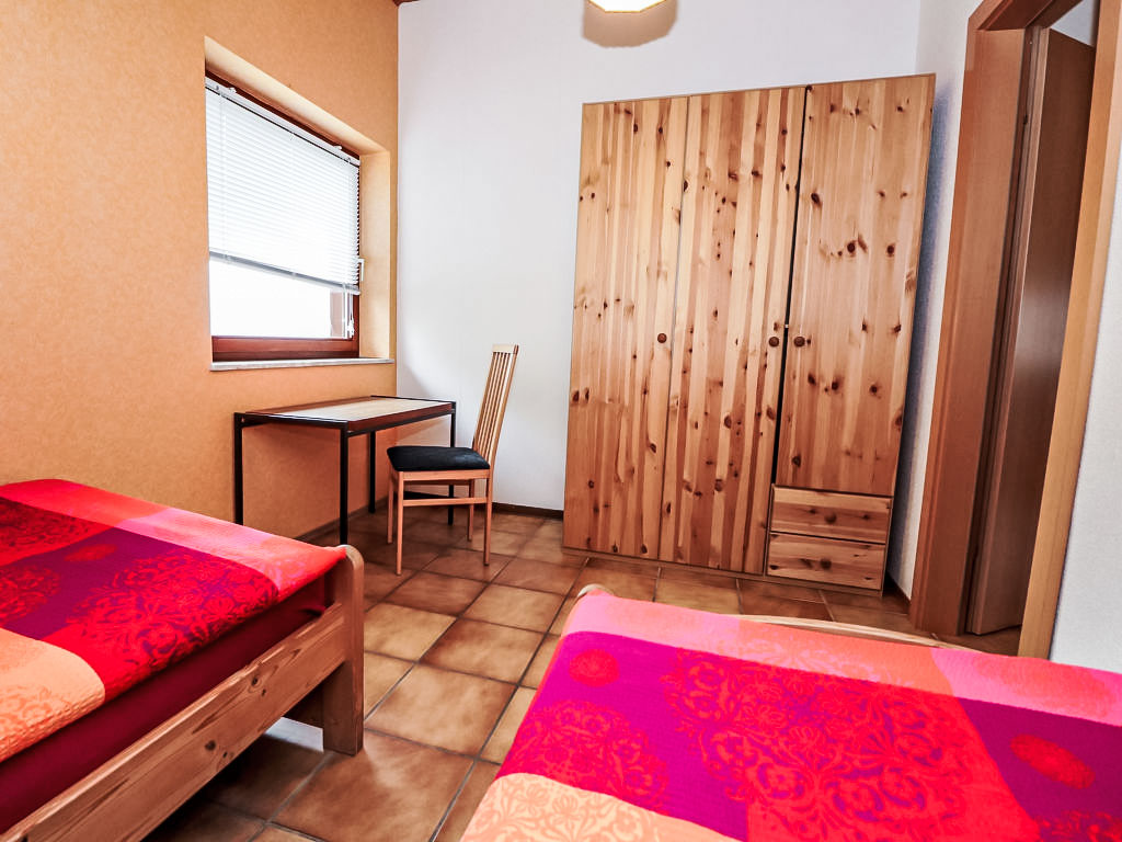 3-Zimmer-Wohnung 65 m2, im Dachgeschoss. Geräumig, abgeschrägt, einfach und zweckmässig eingerichtet: grosses Wohn-/Esszimmer 45 m2 mit Esstisch, Küchenblock und Sat-TV. 1 Doppelzimmer mit Dachfenster. 1 Zimmer mit 2 Betten. Offene Küche (4 Kochplatten, Backofen, Mikrowelle). Dusche/WC. Gartensitzplatz. Sehr schöne Sicht auf die Berge und die Landschaft. Zur Verfügung: Internet (Wireless LAN, gratis). Bitte beachten: Nichtraucher-Unterkunft. Maximal 1 Haustier/Hund erlaubt.