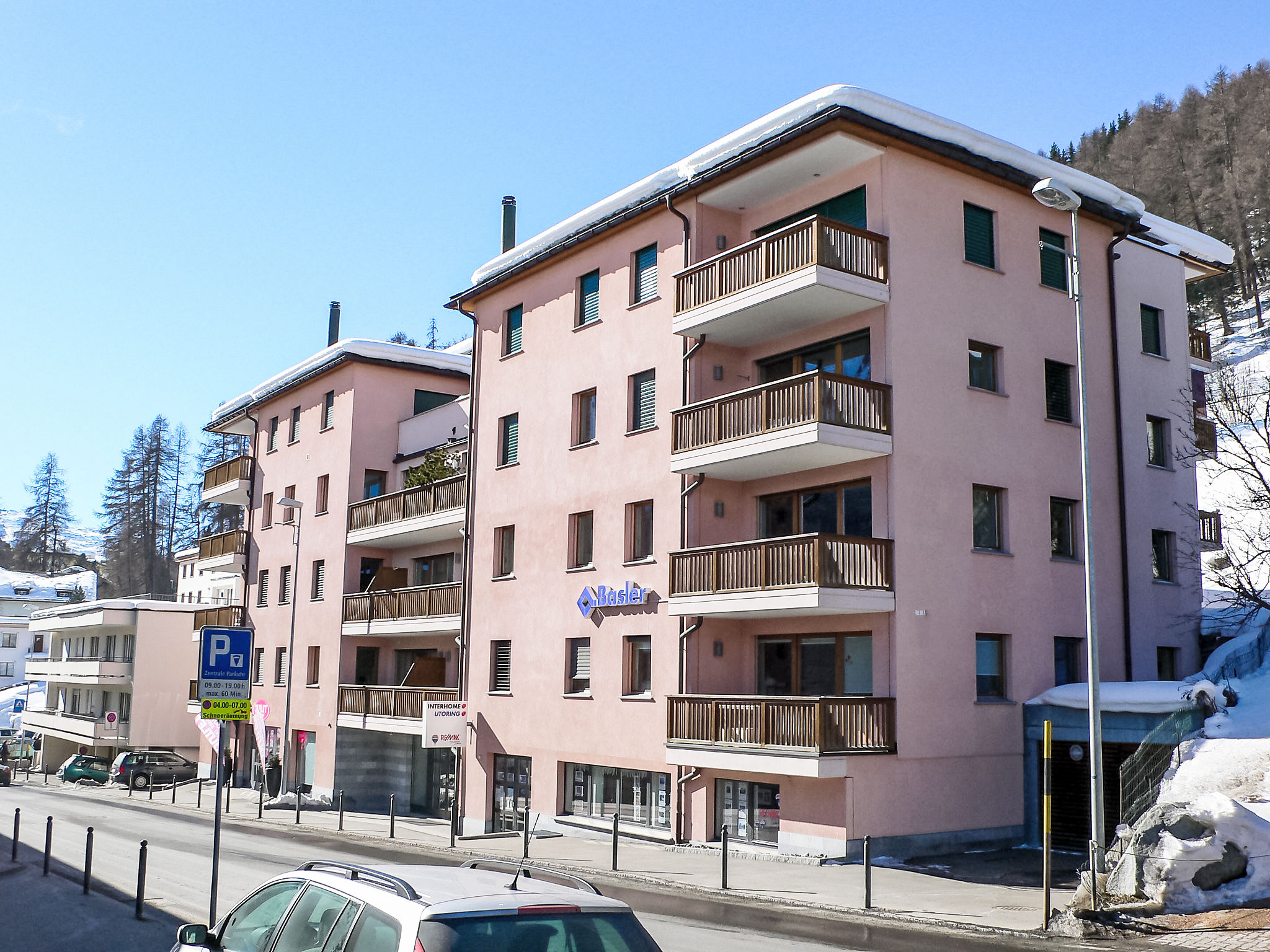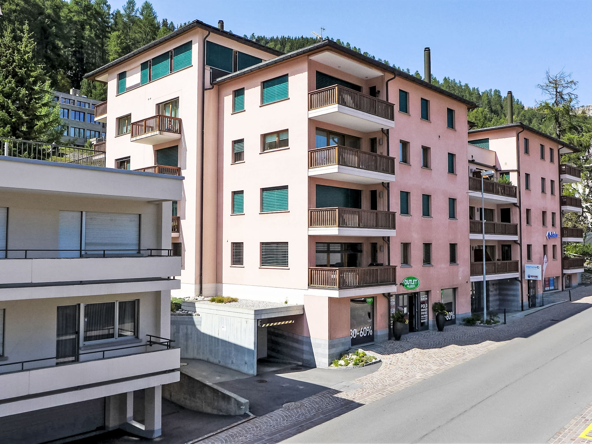 St. Moritz-Bad: Modernes Mehrfamilienhaus "Chesa Sur Ova", auf 5 Stockwerken. Im Ortszentrum von St. Moritz-Bad, 550 m vom See, 1.1 km vom Skigebiet, an einer Hauptstrasse. Im Hause: Fahrstuhl, Waschmaschine, Wäschetrockner (zur Mitbenutzung, extra). Gemeinschaftsgarage. Einkaufsgeschäft, Supermarkt 20 m, Restaurant 100 m, Bar 200 m, Bäckerei 210 m, Café 200 m, Fahrradverleih 250 m, Bushaltestelle "St. Moritz Bad, Via Salet" 210 m, Bahnstation 1.8 km, Hallenbad 750 m, Thermalbad "Heilbadzentrum St. Moritz" 950 m, See St. Moritzer See 550 m. Golfplatz (18 Loch) 7.4 km, Tennis 1.2 km, Tennishalle 1.2 km, Minigolf 750 m, Reitstall 2.5 km, Wanderwege ab Haus 600 m, Radweg 750 m, Luftseilbahn 1.1 km, Skilift 1.1 km, Skipisten 1.1 km, Skiverleih 550 m, Skibushaltestelle 210 m, Skischule 1.2 km, Kinderskischule 1.2 km, Schlittelbahn 5.4 km, Langlaufloipe 750 m, Eisfeld 550 m, Kinderspielplatz 1 km. Nahe gelegene Sehenswürdigkeiten: Segantini Museum 1.5 km, Engadiner Museum 400 m, Mili Weber-Haus 2.6 km, Olympia Bob Run mit Museum 1.8 km, Nietzsche Museum in Sils-Maria 9.8 km. Bekannte Skigebiete sind gut erreichbar: Corviglia Piz Nair 1.1 km, Corvatsch - Furtschellas 6.7 km, Diavolezza - Lagalb 19.5 km. Bekannte Seen in der Umgebung sind gut erreichbar: St. Moritzer See 550 m, Silvaplaner See 5.5 km, Silser See 9.8 km. Wandergebiete: Stazerwald & Stazersee, Corviglia Piz Nair, Muottas Muragl. Bitte beachten: Die Schlüsselübergabe findet bei der Agentur Interhome in St. Moritz Bad statt. In diesem Haus sind weitere Ferienwohnungen mietbar.