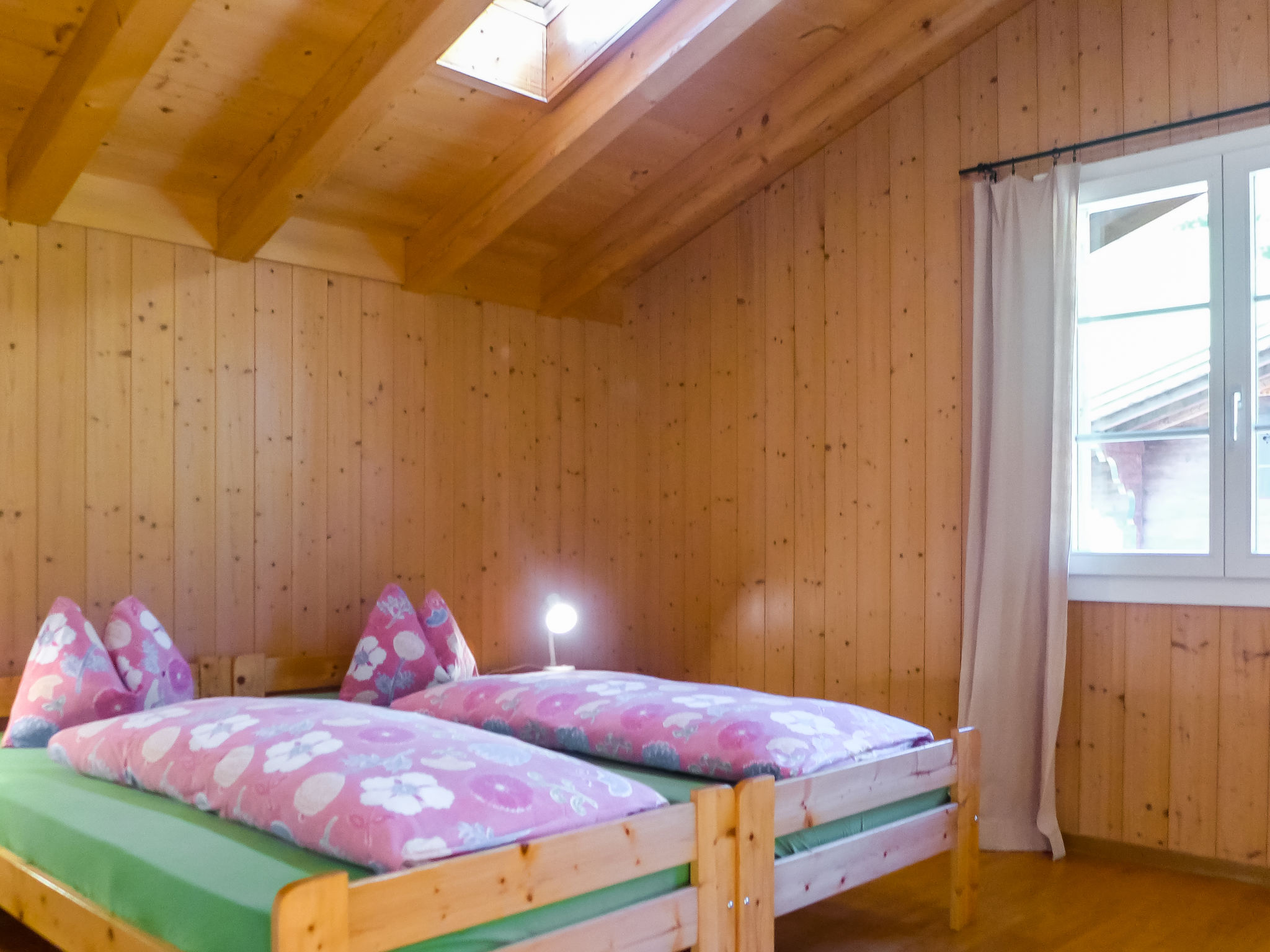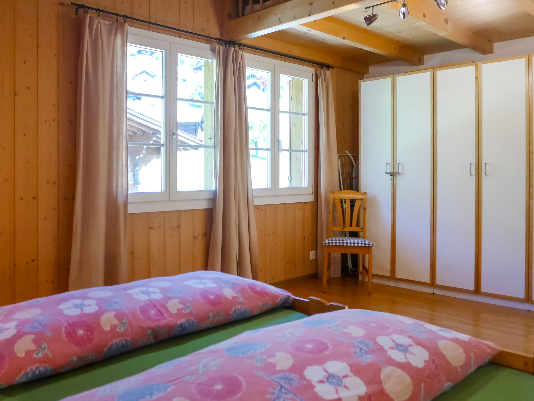 "Stähli", 3-Zimmer-Wohnung 102 m2, im erhöhten Erdgeschoss, Südwestlage. Gemütlich eingerichtet: Wohn-/Schlafzimmer mit 1 Diwanbett (140 cm, Länge 200 cm), Schwedenofen und Kabel-TV (Flachbildschirm). Ausgang zur Terrasse. Offene Küche (Backofen, Geschirrspüler, 4 Glaskeramikherd Platten, Toaster, Wasserkocher, elektrische Kaffeemaschine, Kapseln für die Kaffeemaschine (Nespresso) extra, Racletteofen, Fondue Set (Käse)). Dusche/WC. Obergeschoss: 1 Zimmer mit 2 Betten (90 cm, Länge 200 cm). 1 Zimmer mit 1 Doppelbett (2 x 90 cm, Länge 200 cm). Ausgang zum Balkon. Bad/WC. Fussbodenheizung. Holzböden, Natursteinböden. Terrasse 20 m2, Südlage und Westlage. Balkonmöbel, Gartengrill. Herrliche Sicht auf die Berge und Eigernordwand. Zur Verfügung: Bügeleisen, Haartrockner, Holz (extra). Internet (Wireless LAN, gratis). Garage (1 Auto) beim Haus, Höhe 210 cm, Breite 245 cm. Bitte beachten: Nichtraucher-Unterkunft. Eigener Eingang, Feuerlöscher.