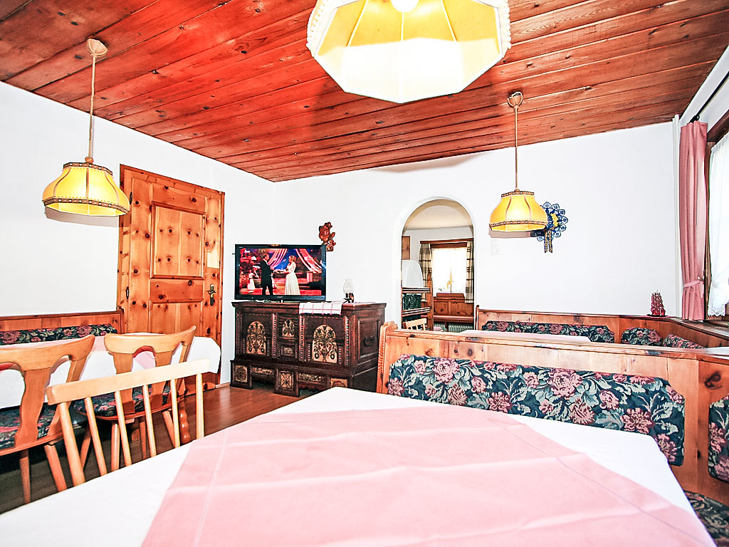 8-Zimmer-Haus 200 m2. Geräumig, rustikal und gemütlich eingerichtet: Eingang. Wohn-/Esszimmer mit Sat-TV (Flachbildschirm). Offenes Esszimmer. 1 Zimmer mit 1 Bett und 1 Doppelbett. Wohnküche (Backofen, Geschirrspüler, 4 Glaskeramikherd Platten, Mikrowelle, Tiefkühler, elektrische Kaffeemaschine). Dusche, Dusche/WC, sep. WC. Obergeschoss: 2 Doppelzimmer. Ausgang zum Balkon. 1 Zimmer mit 1 Diwanbett und 1 Doppelbett. Ausgang zum Balkon. 1 Zimmer mit 2 Betten. 1 Zimmer mit 1 Diwanbett, 1 Doppelbett und Dusche. Dusche, sep. WC. Balkon 18 m2. Schöne Sicht auf die Landschaft und die Ortschaft. Zur Verfügung: Internet (Wireless LAN, extra). Bitte beachten: Nichtraucher-Unterkunft. Rauchmelder, Feuerlöscher. Bestes, trinkbares Gebirgsquellwasser vom Wasserhahn. Im Dachgeschoss befindet sich eine kleine Einliegerwohnung, die nur durch ein Nebenhaus begehbar ist.