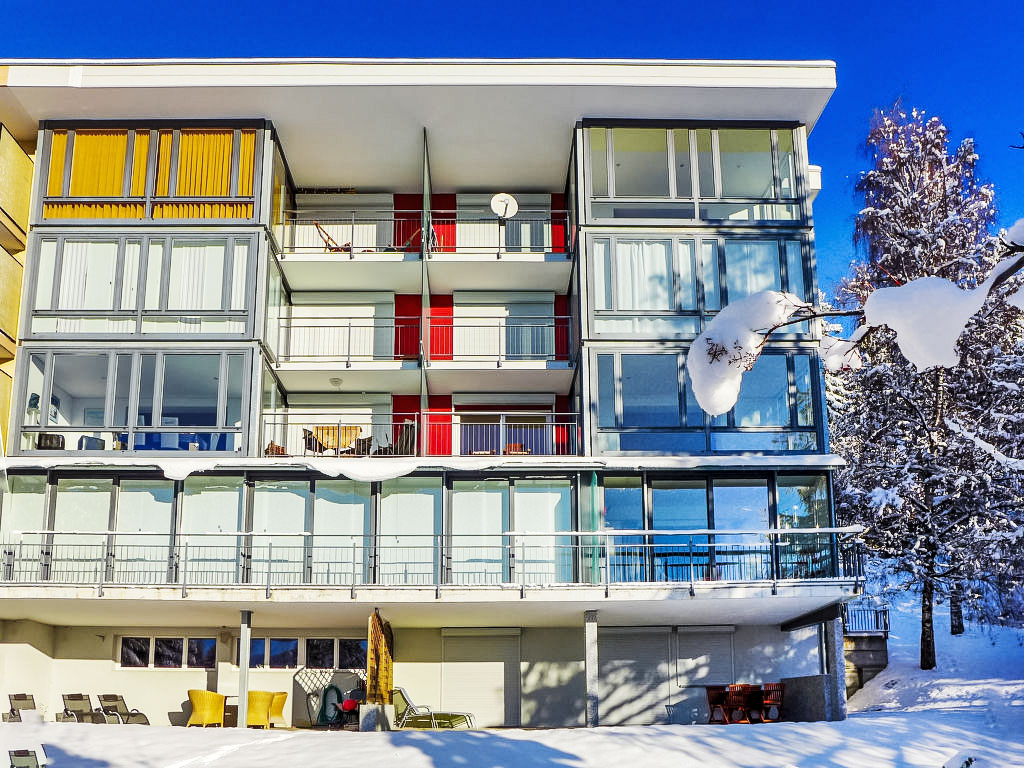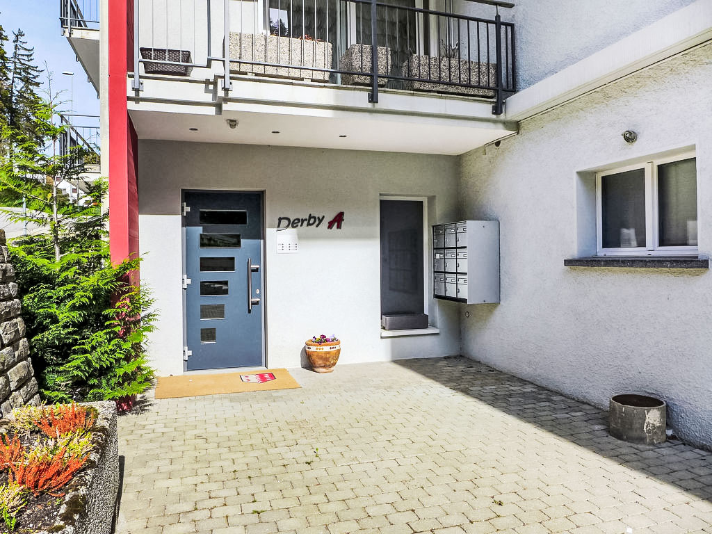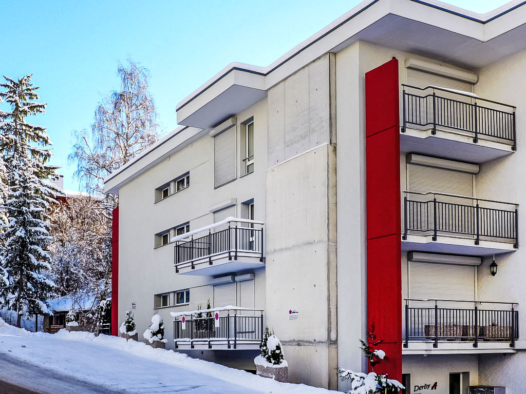 Gemütliches Mehrfamilienhaus "Derby", auf 4 Stockwerken, Baujahr 1990, renoviert im Jahre 2006. Oberhalb von Montana, am Ortsrand, 2.1 km vom Zentrum von Montana. Im Hause: Fahrstuhl, Einstellraum für Fahrräder, Skiraum. Parkplatz (beschränkte Anzahl). Bäckerei 30 m, Bushaltestelle "Clinique Lucernoise" 50 m. Skisportanlagen 370 m, Skibushaltestelle 50 m.