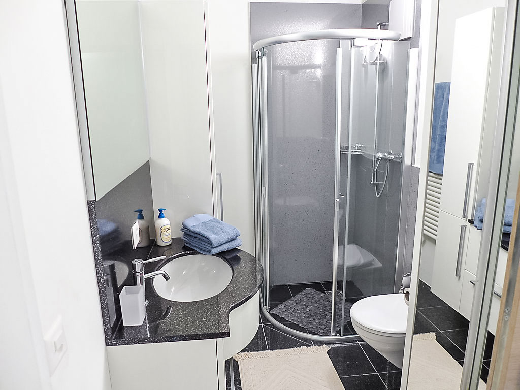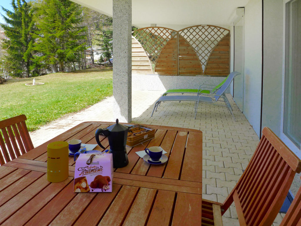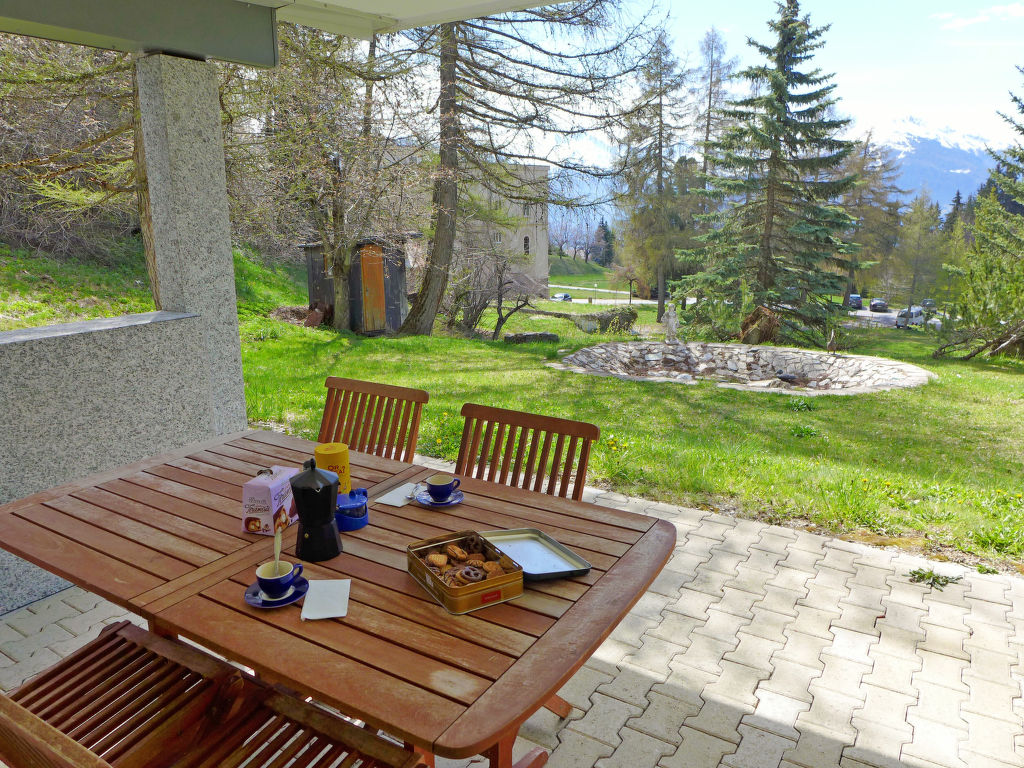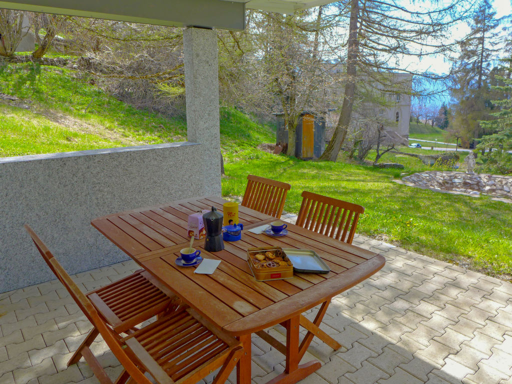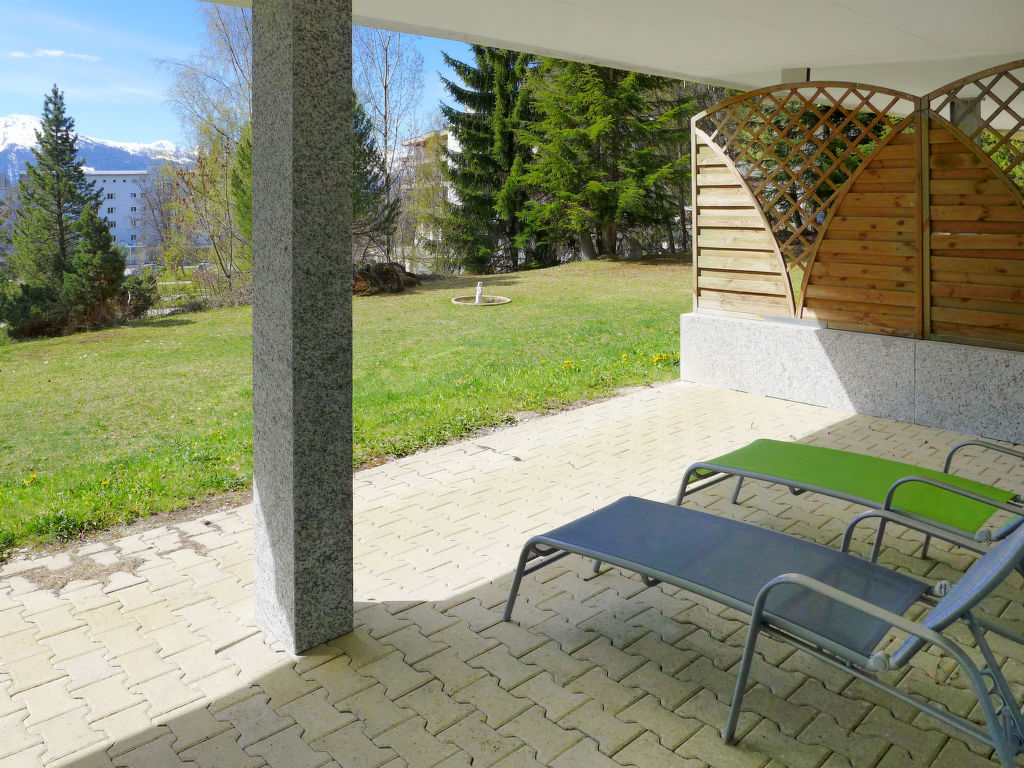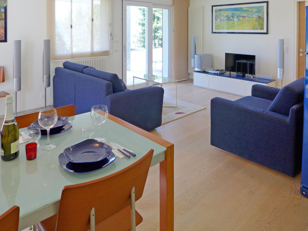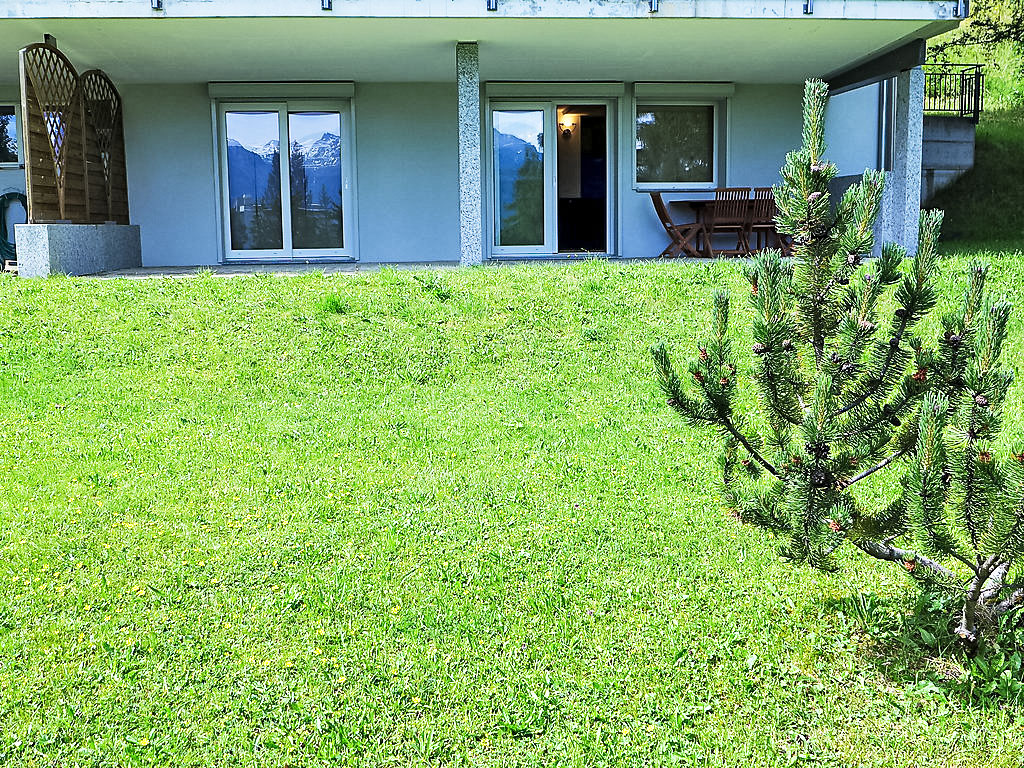 2-Zimmer-Wohnung 54 m2, im Erdgeschoss. Komfortabel und schön eingerichtet: Wohn-/Esszimmer mit Kabel-TV, DVD und elektrischem Rollladen. Ausgang zum Garten, zur Terrasse, Richtung Süden. 1 Zimmer mit 1 franz. Bett (160 cm, Länge 200 cm). Offene Küche (Backofen, 4 Glaskeramikherd Platten, Toaster, Wasserkocher, Mikrowelle, Tiefkühler, elektrische Kaffeemaschine, Kapseln für die Kaffeemaschine (NESPRESSO) extra, Racletteofen, Fondue Set (Chinoise, Käse)). Dusche/WC. Parkettböden. Grosse Terrasse. Terrassenmöbel, Liegestühle (2). Schöne Sicht auf die Berge und den Garten. Zur Verfügung: Waschmaschine, Haartrockner. Internet (Wireless LAN, gratis). Bitte beachten: Nichtraucher-Unterkunft.
