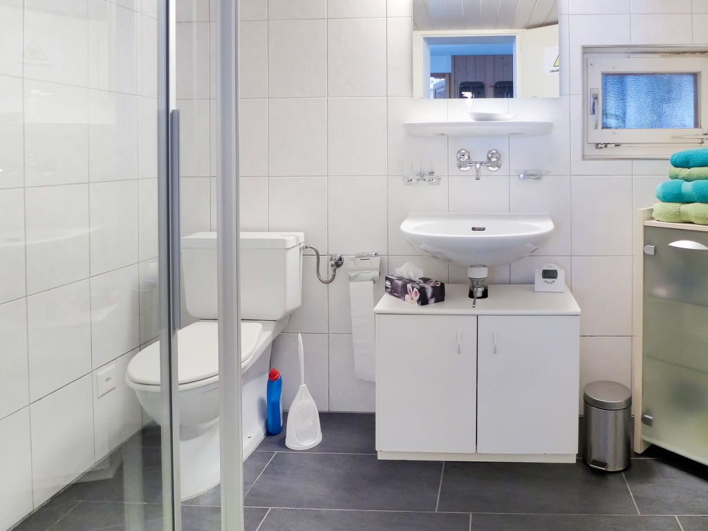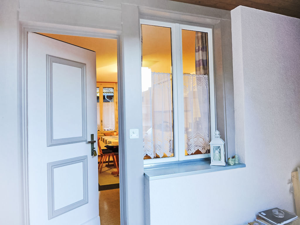 1-Zimmer-Wohnung 40 m2, im Erdgeschoss. Geräumig, komfortabel und gemütlich eingerichtet: Wohn-/Schlafzimmer 20 m2 mit 2 Betten und Kabel-TV (Flachbildschirm), Radio und CD. Grosse Wohnküche (3 Kochplatten, Backofen, Toaster, Wasserkocher, elektrische Kaffeemaschine, Racletteofen, Fondue Set (Käse)) mit Esstisch. Dusche/WC. E-Heizung, Boiler (150 Liter). Gartensitzplatz. Terrassenmöbel, Liegestühle. Schöne Sicht auf die Berge und die Landschaft. Zur Verfügung: Haartrockner. Internet (Wireless LAN, gratis). Parkplatz. Bitte beachten: Nichtraucher-Unterkunft. Feuerlöscher.