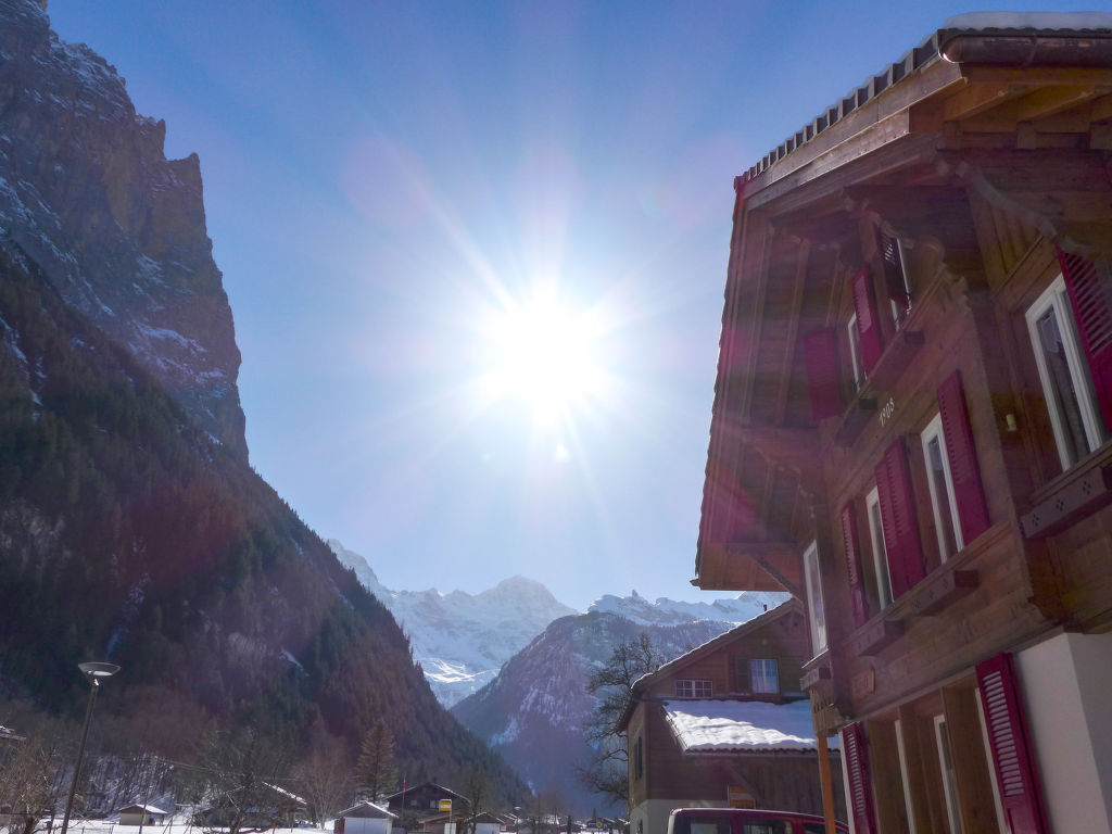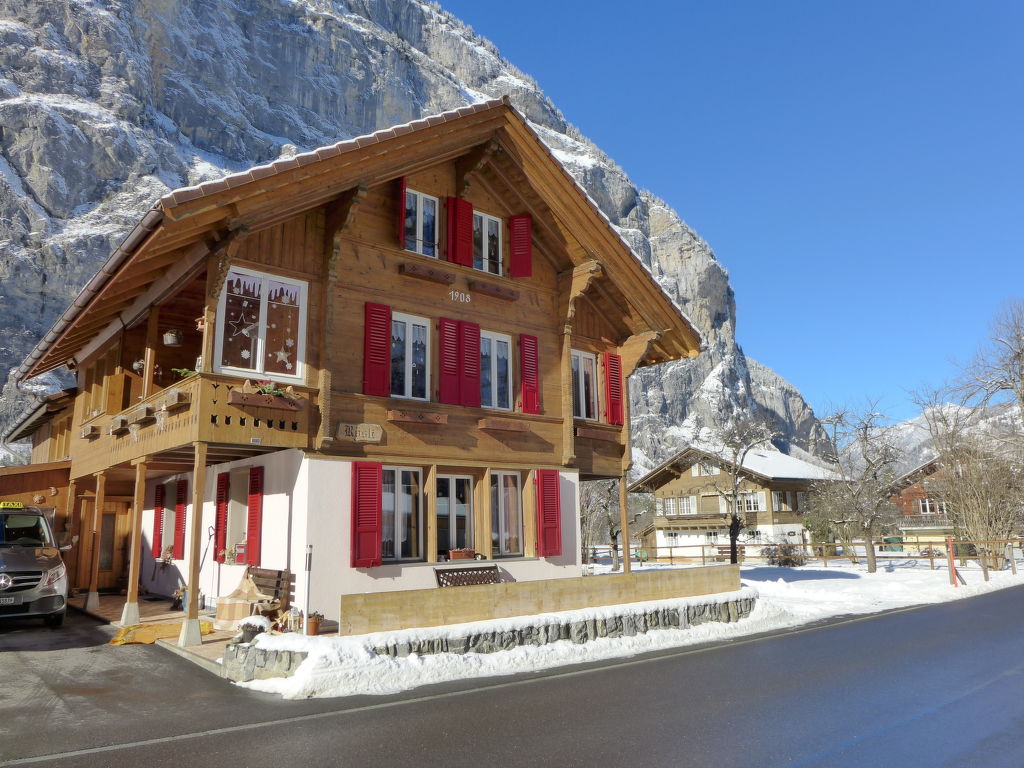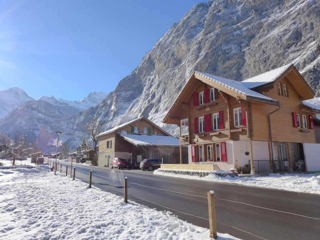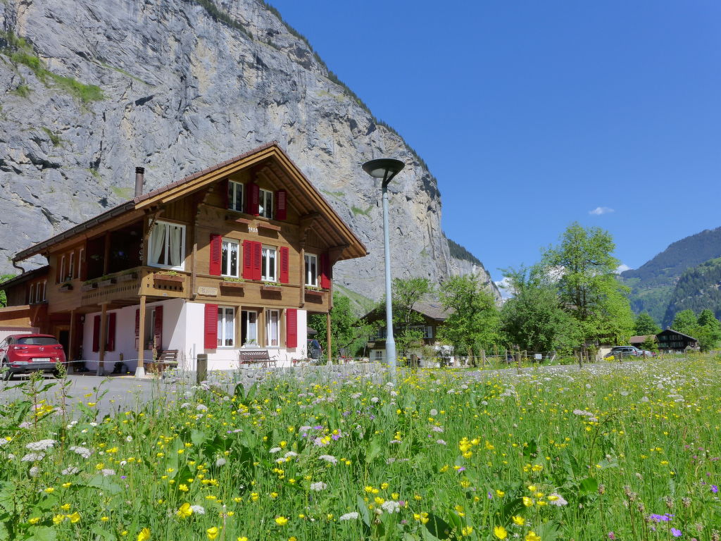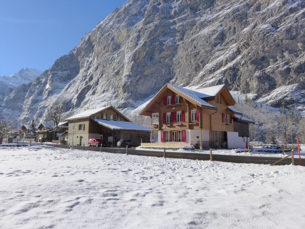 Stechelberg 4 km von Lauterbrunnen: Schönes, rustikales Chalet "Rösli". Im Ortsteil Sandbach, alleinstehende, sonnige Lage, an einer Strasse. Zur Mitbenutzung: Garten mit Rasen. Sitzplatz, Gartenmöbel, Parkplatz beim Haus. Supermarkt 3.7 km, Restaurant 3 km, Bushaltestelle "Sandbach" 5 m, Bahnstation "Lauterbrunnen" 3.7 km, Freibad 3.7 km, Hallenbad 3.7 km. Tennis 2 km, Minigolf 3 km, Wanderwege ab Haus 5 m, Luftseilbahn 1.8 km, Skisportanlagen 2 km, Skibushaltestelle 5 m, Langlaufloipe 50 m, Eisfeld 3 km. Nahe gelegene Sehenswürdigkeiten: Trümmelbachfälle. Bekannte Skigebiete sind gut erreichbar: Mürren - Schilthorn, Wengen - Kleine Scheidegg. Wandergebiete: Mürren, Hinteres Lauterbrunnental. Bitte beachten: Ab Hof Verkauf von bäuerlichen Produkten. Gratis Skibus. Der Besitzer wohnt im selben Haus. Hauptstrasse in der Nähe.