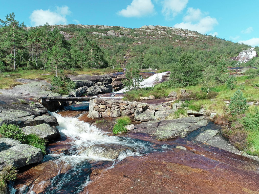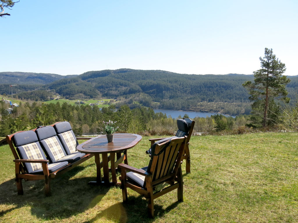 Das gut eingerichtete, grasgedeckte Ferienhaus steht im aufgelockerten Ferienhausgebiet Eikerapen, ca. 20 m von einem kleinen Wasserfall, mit Blick auf den ca. 600 m unterhalb gelegenen See Øre. Kaufmann 12 km in Kyrkjebygd. Mandal liegt 79 km südlich, Kristiansand 84 km südöstlich. Guter Ausgangspunkt für Wanderungen in die malerische Fjell-Landschaft oder einen Tagesausflug in den Elchpark bei Bygland (60 km). Baden am Wasserfall oder am See, dort auch gute Angelmöglichkeiten. Am Ort Minigolf und Kinderspielplatz. Lage auf einem offenen, 750 m² großen Naturgrundstück. Überdachte Terrasse und Freisitz mit Gartenmöbeln und transportablem Außengrill. Parken am Haus (Zufahrt per Code).